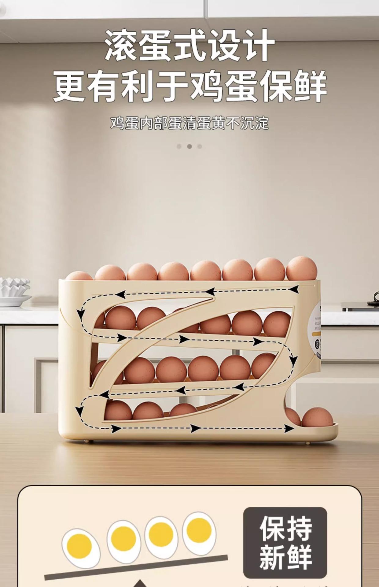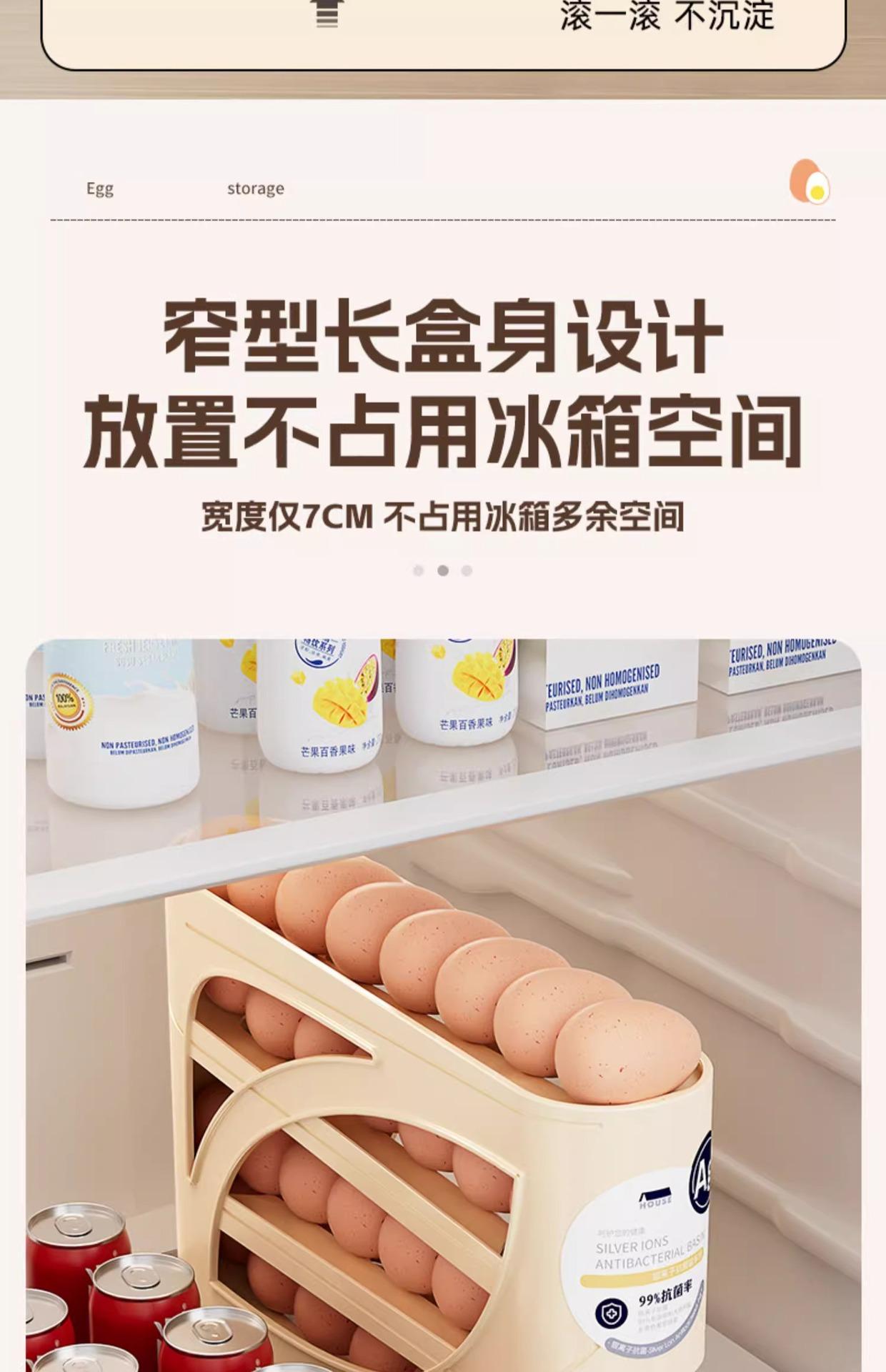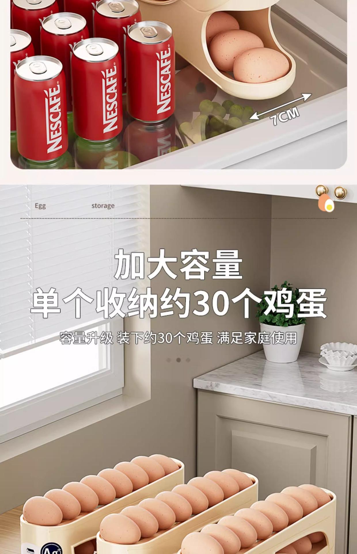 Caja de Almacenamiento de Huevos con Deslizamiento Rodante Grado Alimenticio Lado de la Puerta del Refrigerador Soporte para Huevos Caja Organizadora Dedicada para Conservación