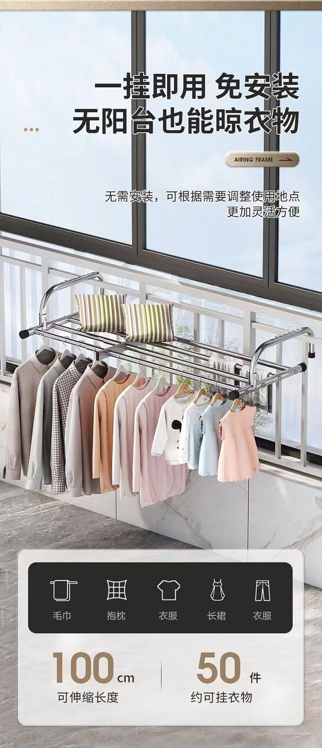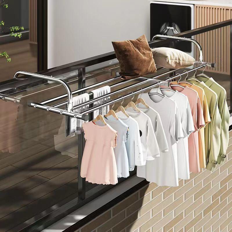 Tendedero de Ropa para Ventana Balcón, Tendedero de Zapatos, Barra Colgante para Secado de Ropa para Ventana, Balcón Exterior, Tendedero Telescópico para Colchas