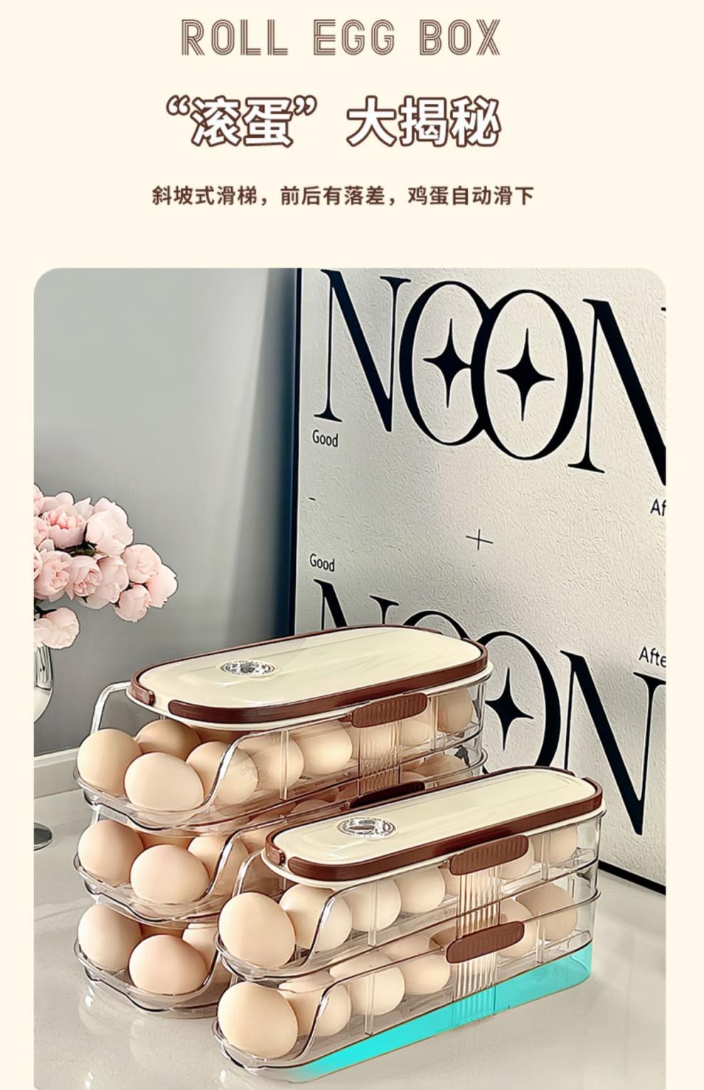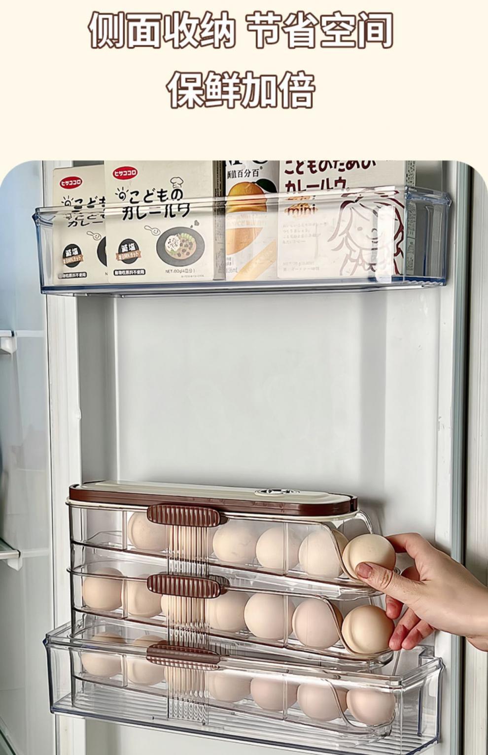 Caja de Almacenamiento de Huevos Almacenamiento y Organización de Puerta Lateral Especial para Refrigerador Grado Alimenticio Rodante Soporte Estante Almacenador de Huevos