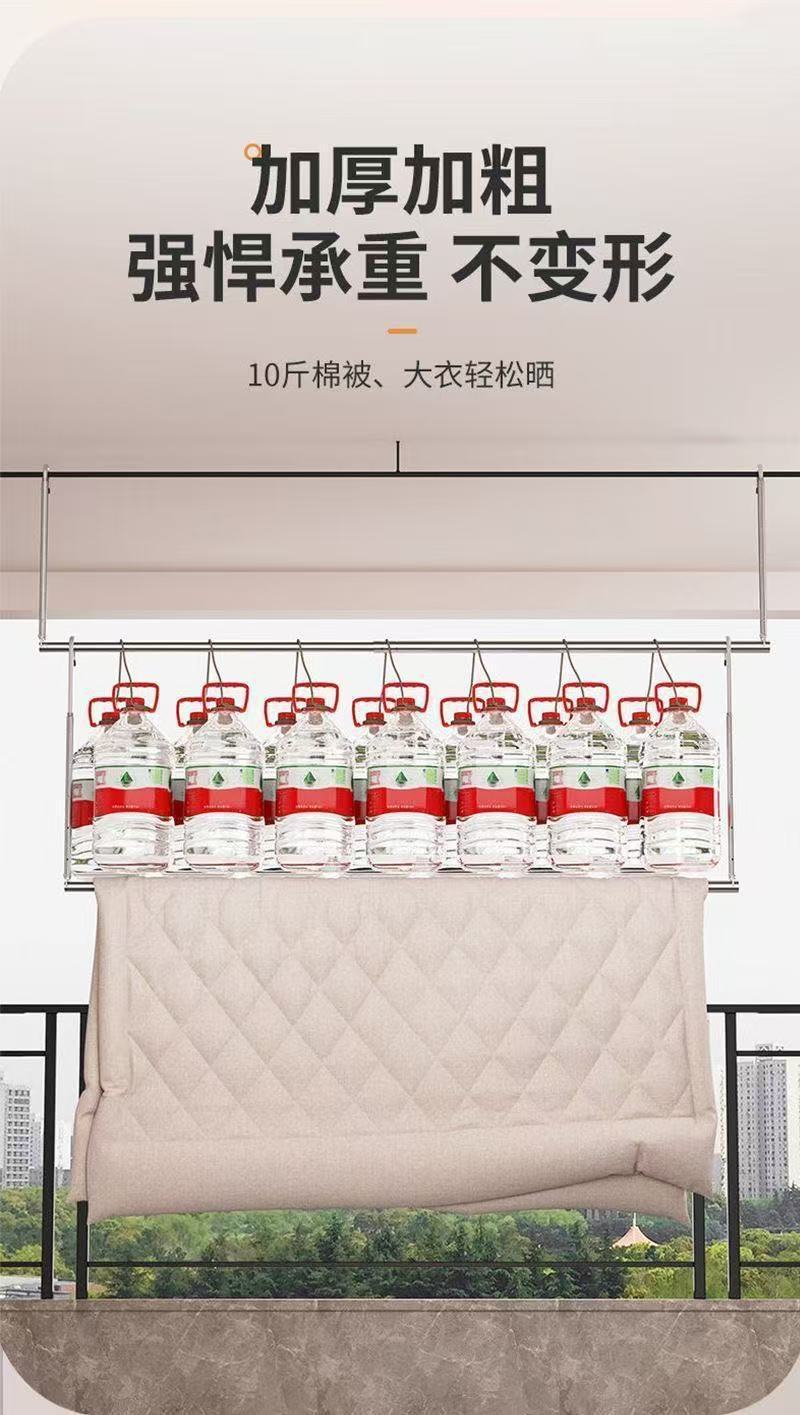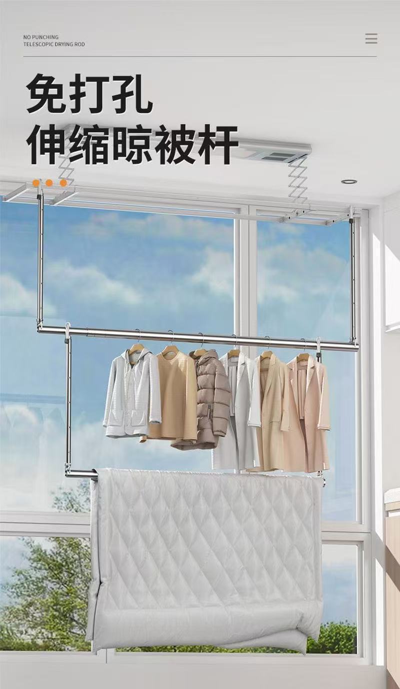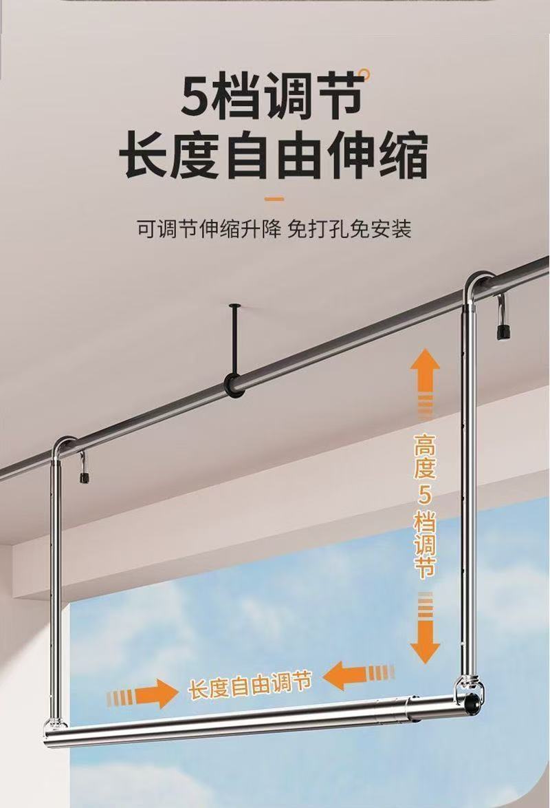 Tendedero Telescópico para Balcón, Barra de Acero Inoxidable, Tipo Colgante, Engrosado, Sin Perforación, Tendedero Invisible para Edredones y Ropa