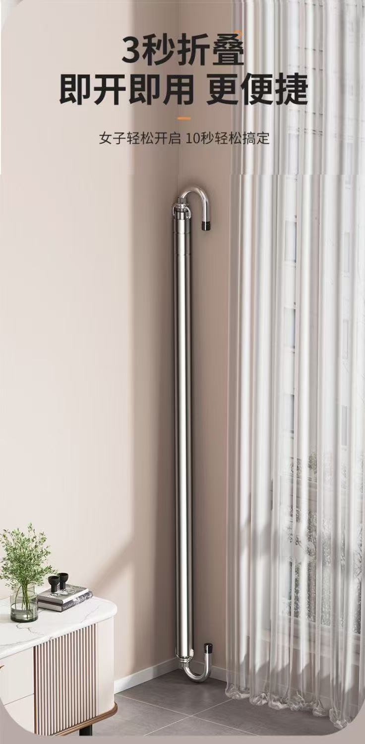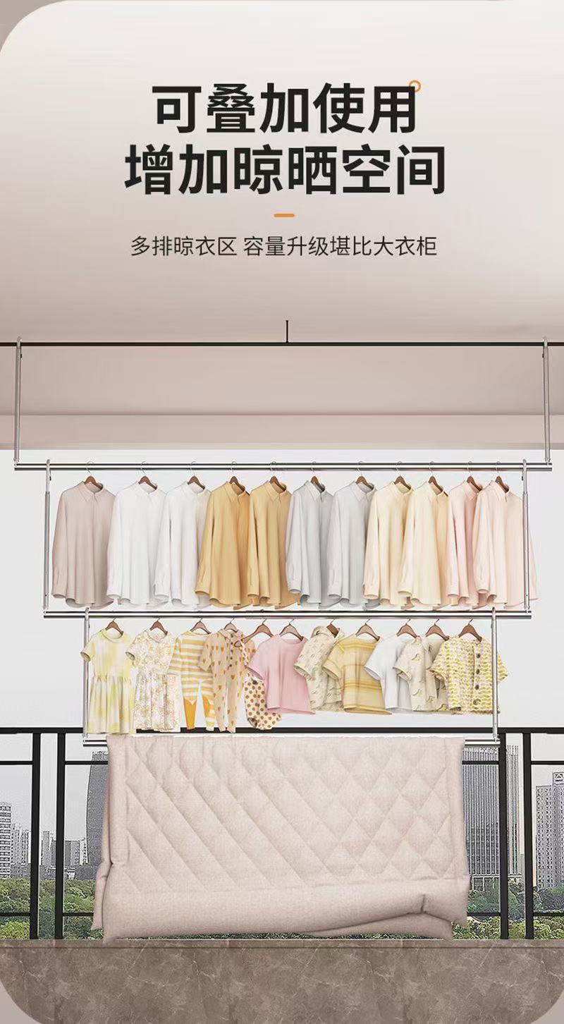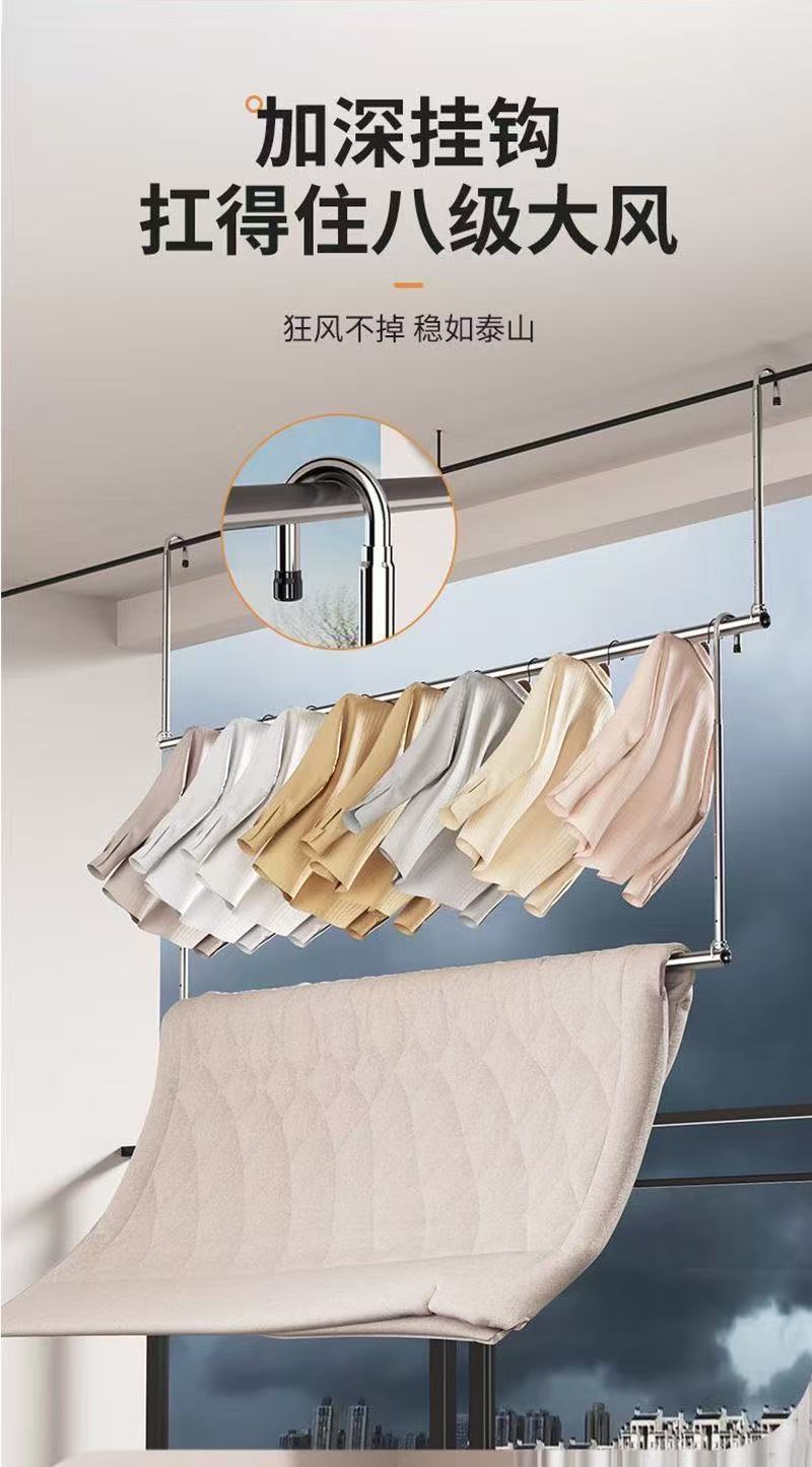 Tendedero Telescópico para Balcón, Barra de Acero Inoxidable, Tipo Colgante, Engrosado, Sin Perforación, Tendedero Invisible para Edredones y Ropa