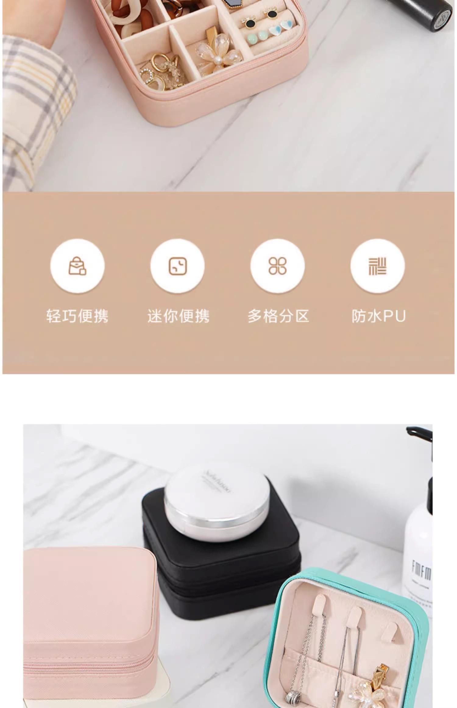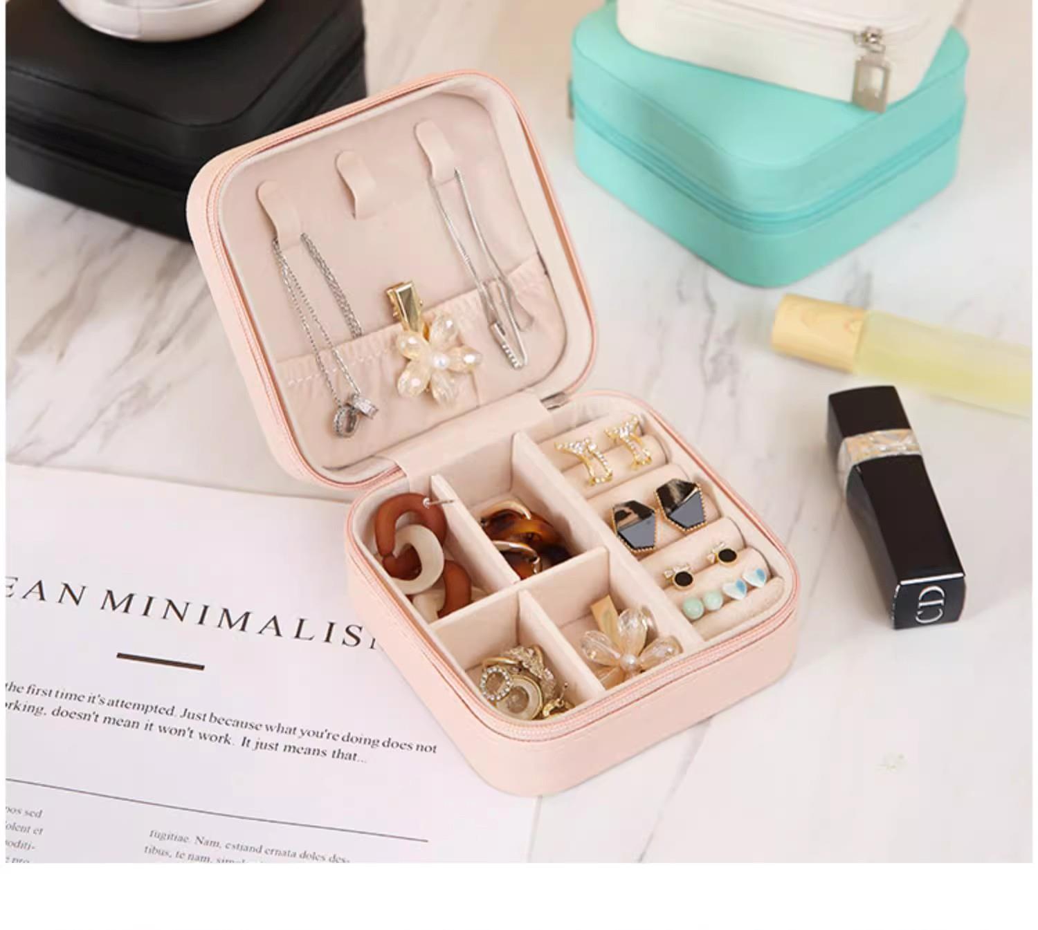 Caja de Almacenamiento de Joyas Portátil Viaje de Alta Gama Exquisita Compacta Aretes Anillo Collar Aretes Joyería de Mano Mini Caja