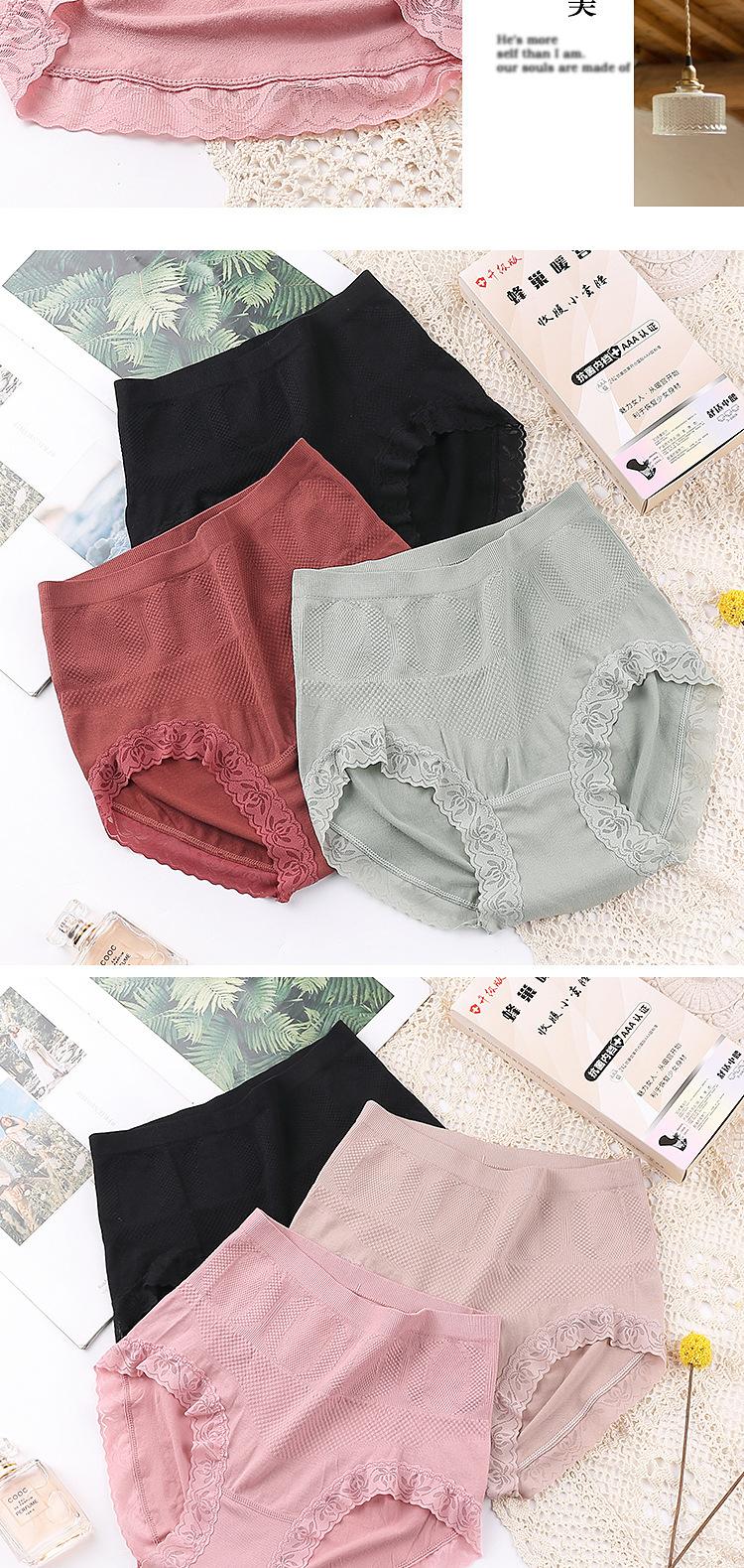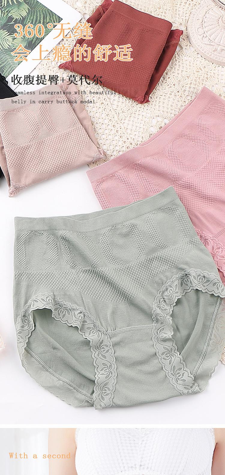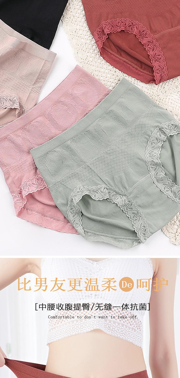 Ropa interior de mujer de color sólido de cintura alta nueva encaje sin costuras panal talla grande ropa interior entrepierna de grafeno calzones reductores de abdomen