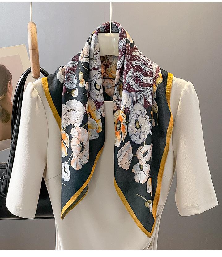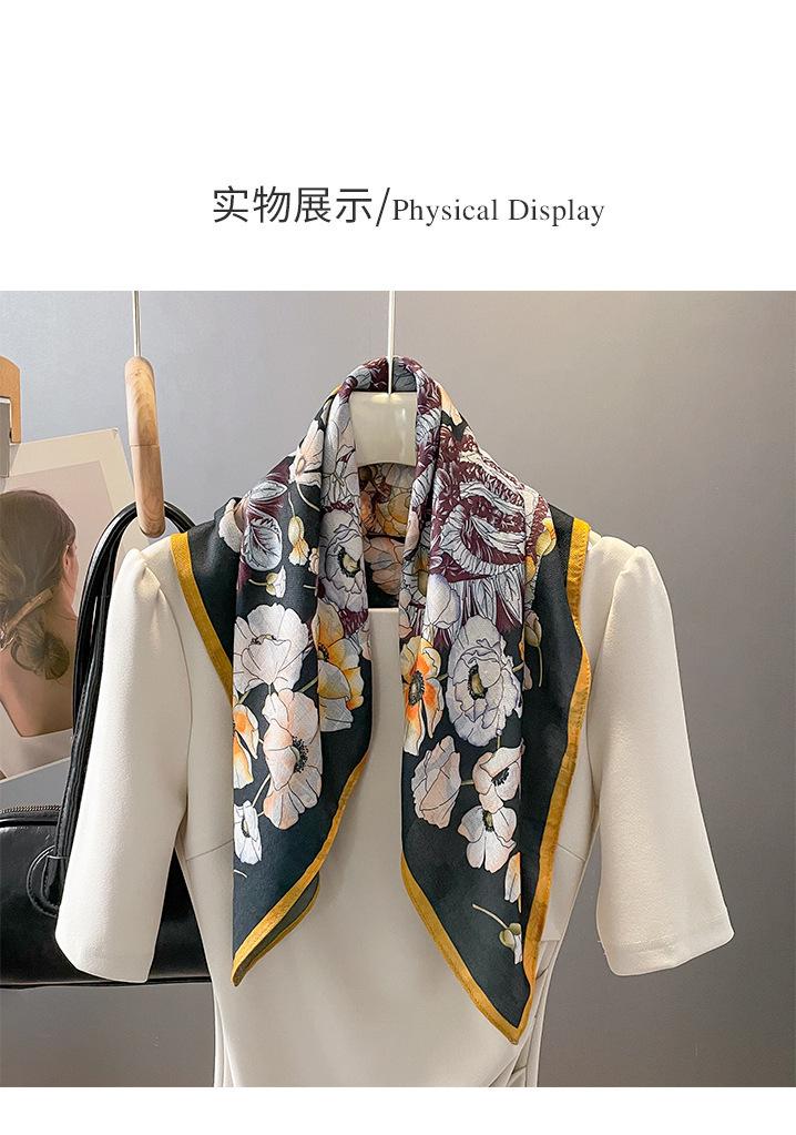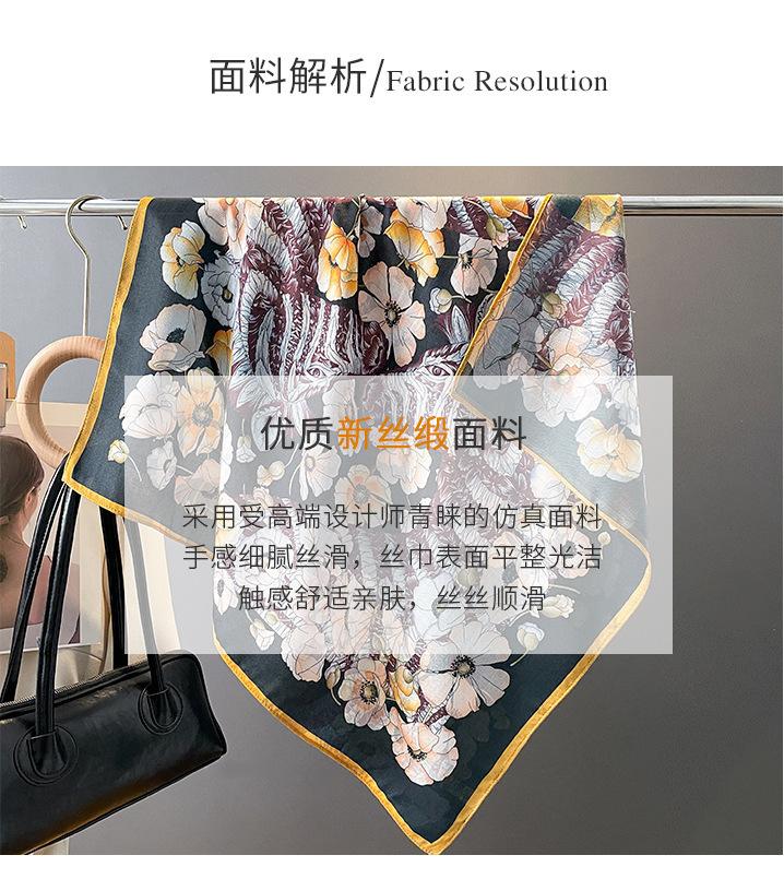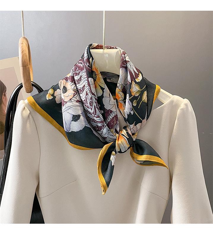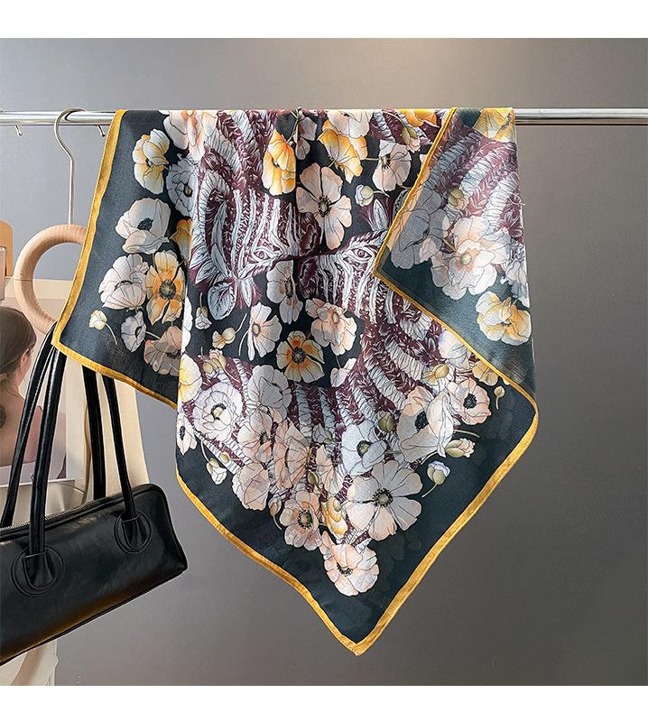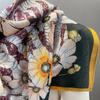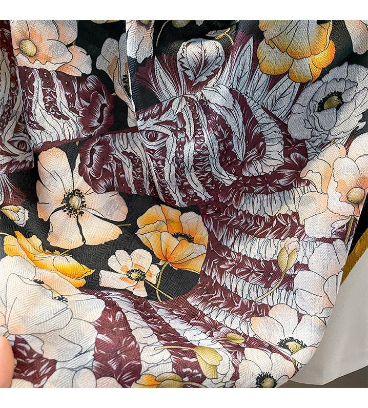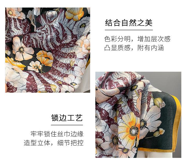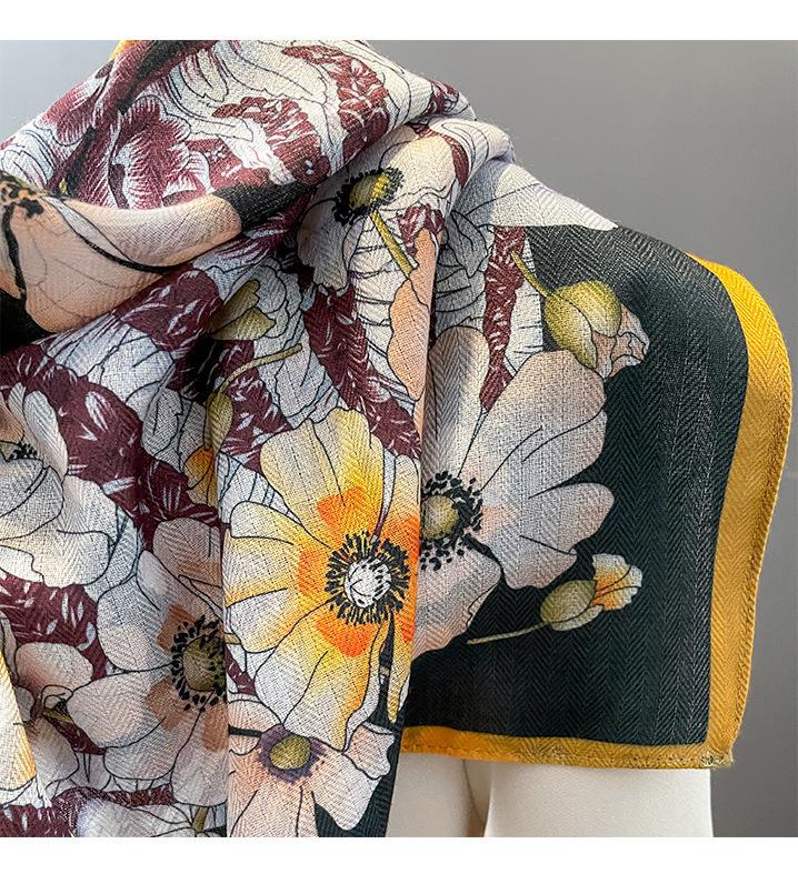 Bufanda cuadrada elegante con rayas florales, ligera, de lana sintética, para mujer, de invierno, de seda, cálida, para primavera y otoño.