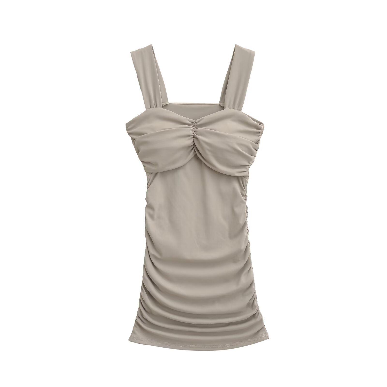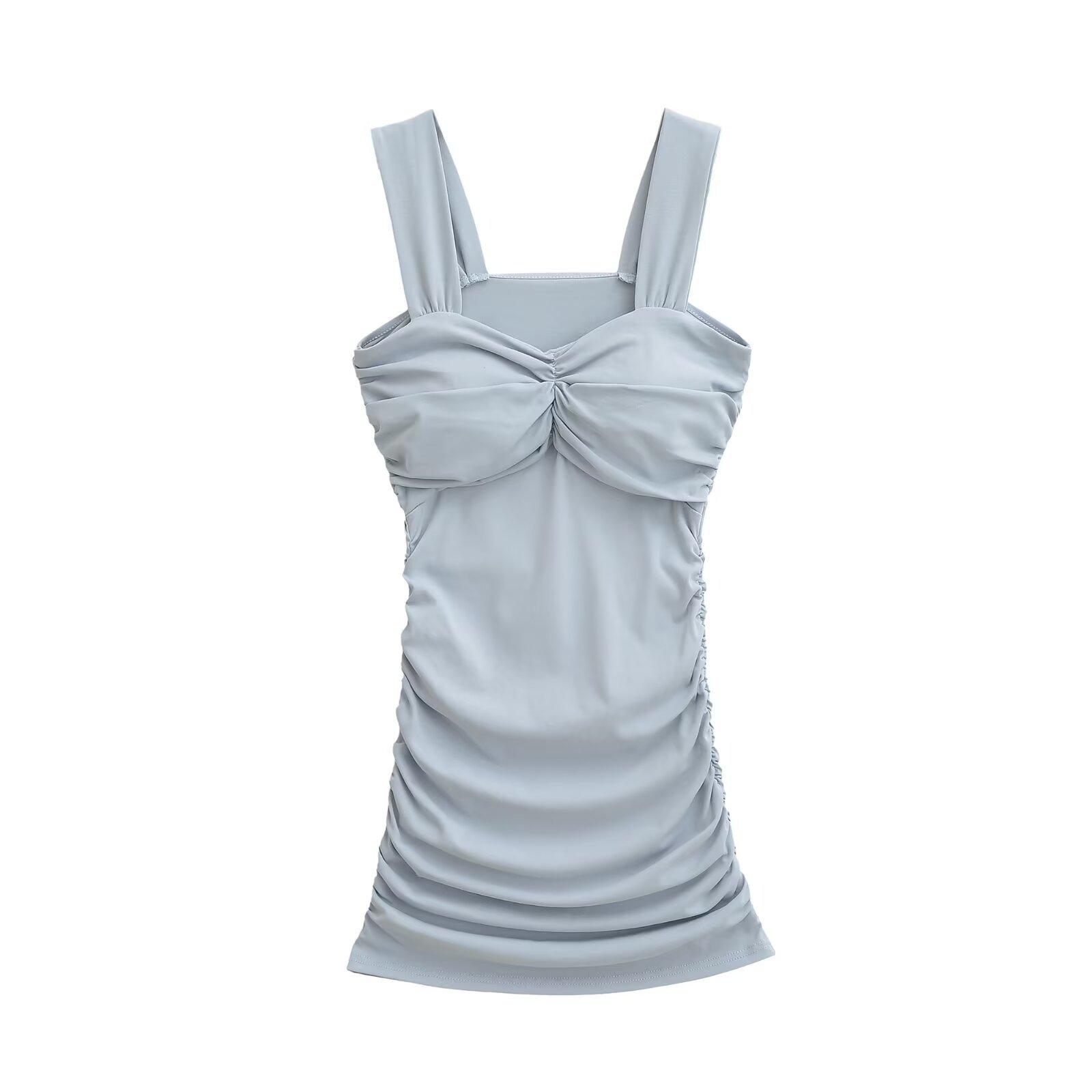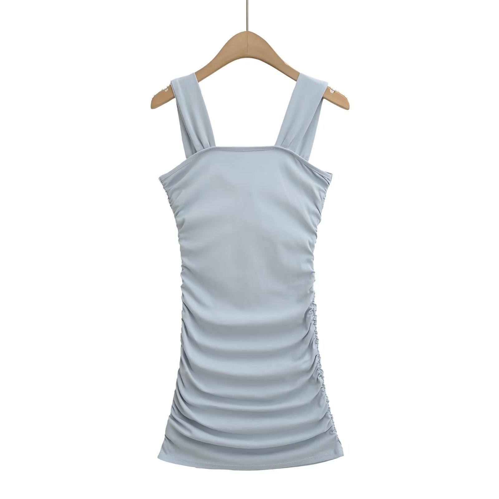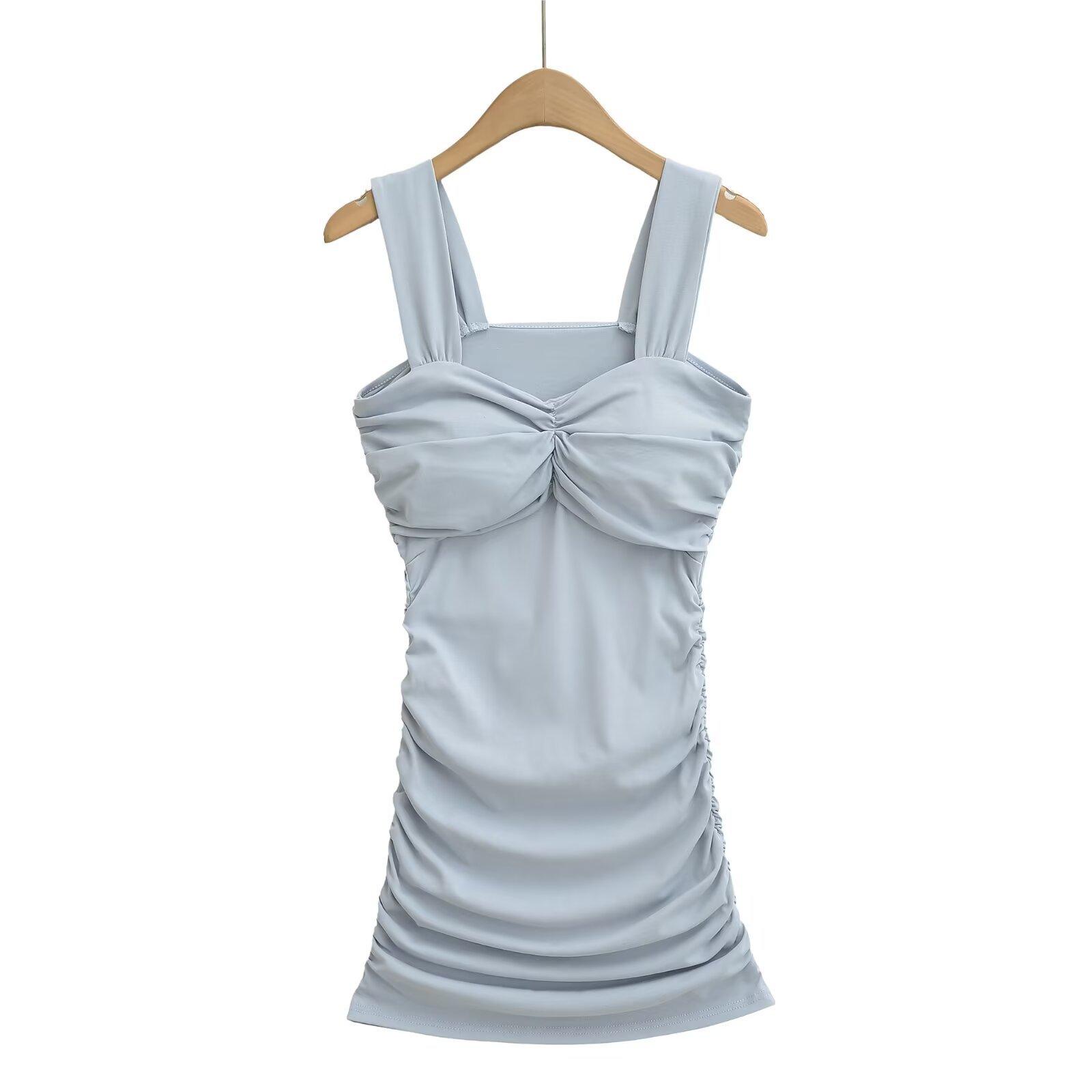 Vestido Camisola Fruncido Puro y Sexy para Mujer sin Mangas Adelgazante para la Cintura Bodycon Mini Vestido Temperamental Chica Caliente Adelgazante Verano Nuevo