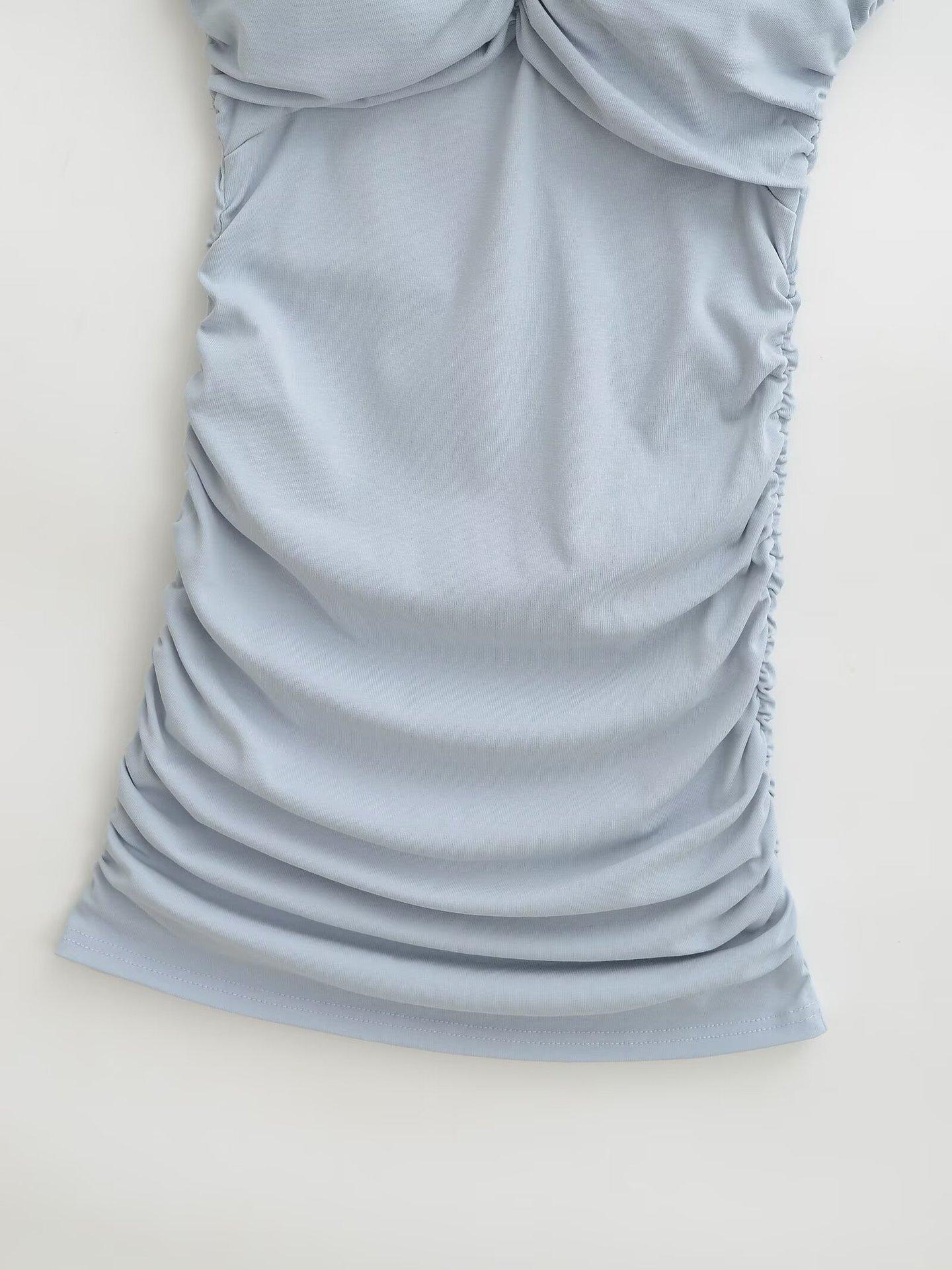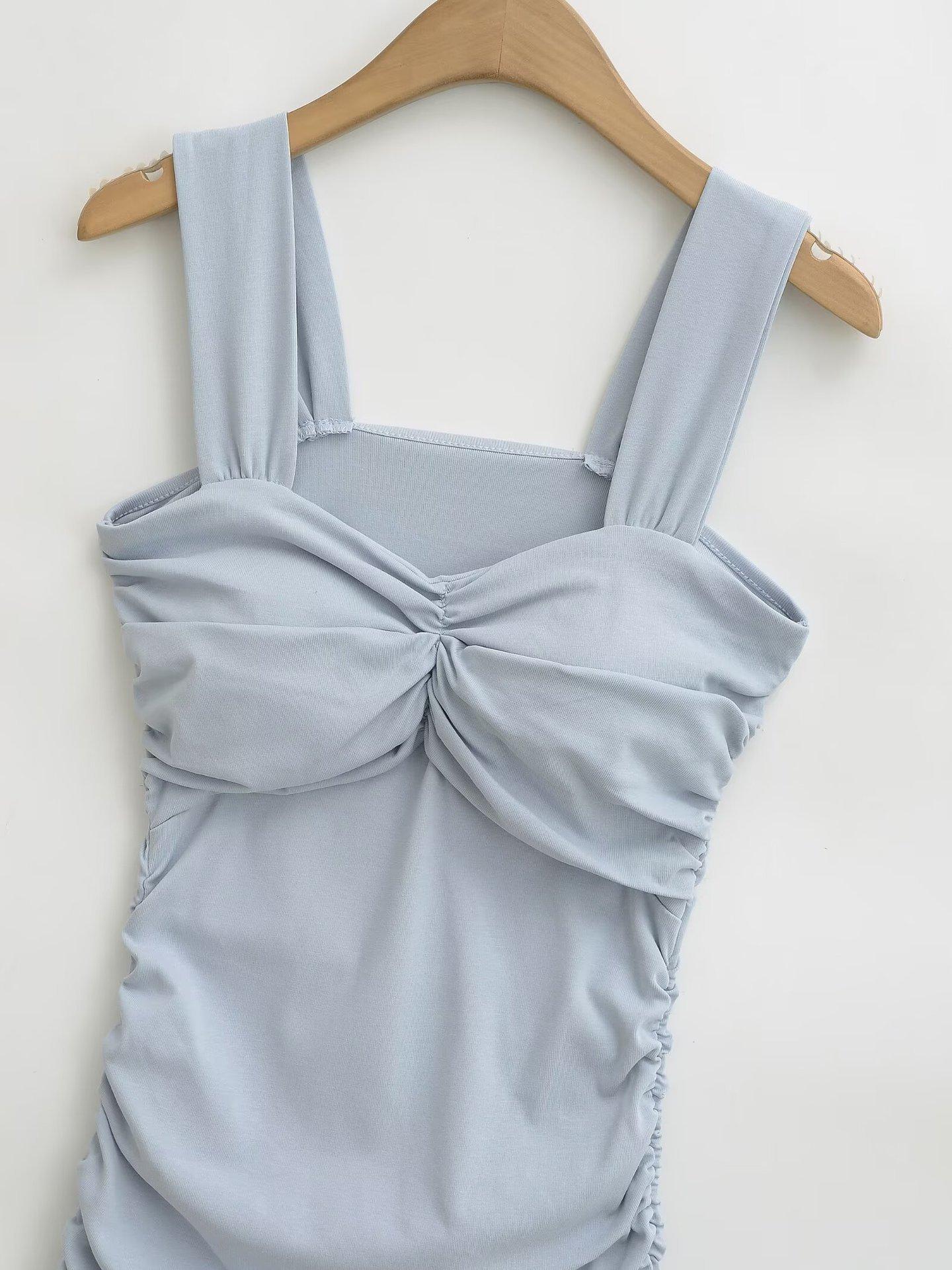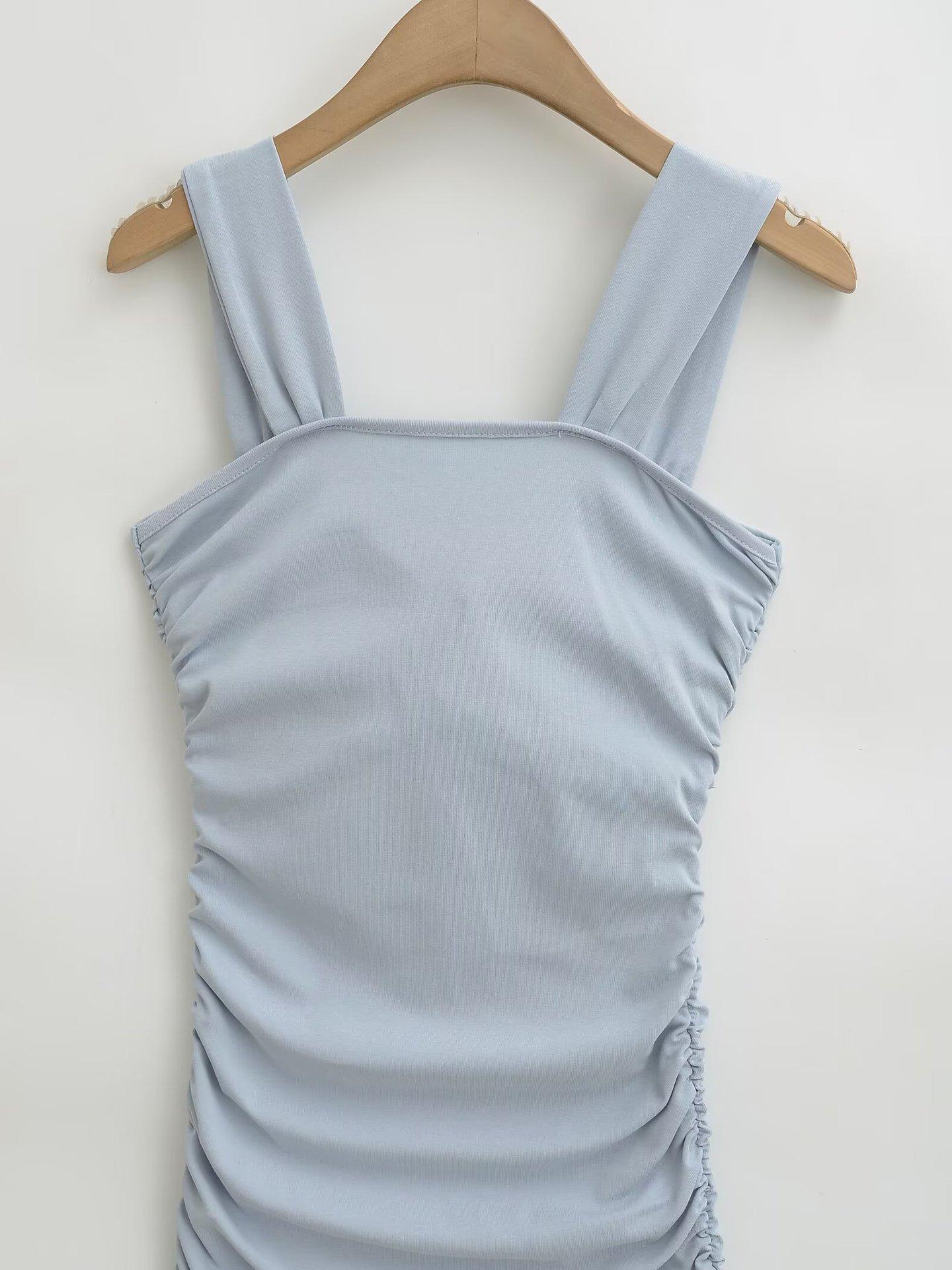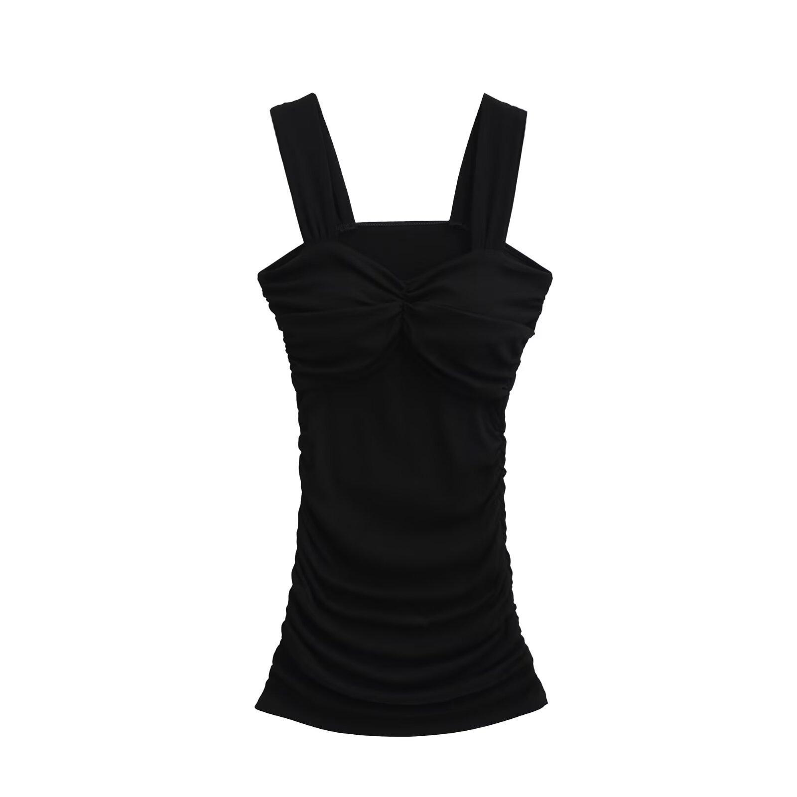 Vestido Camisola Fruncido Puro y Sexy para Mujer sin Mangas Adelgazante para la Cintura Bodycon Mini Vestido Temperamental Chica Caliente Adelgazante Verano Nuevo