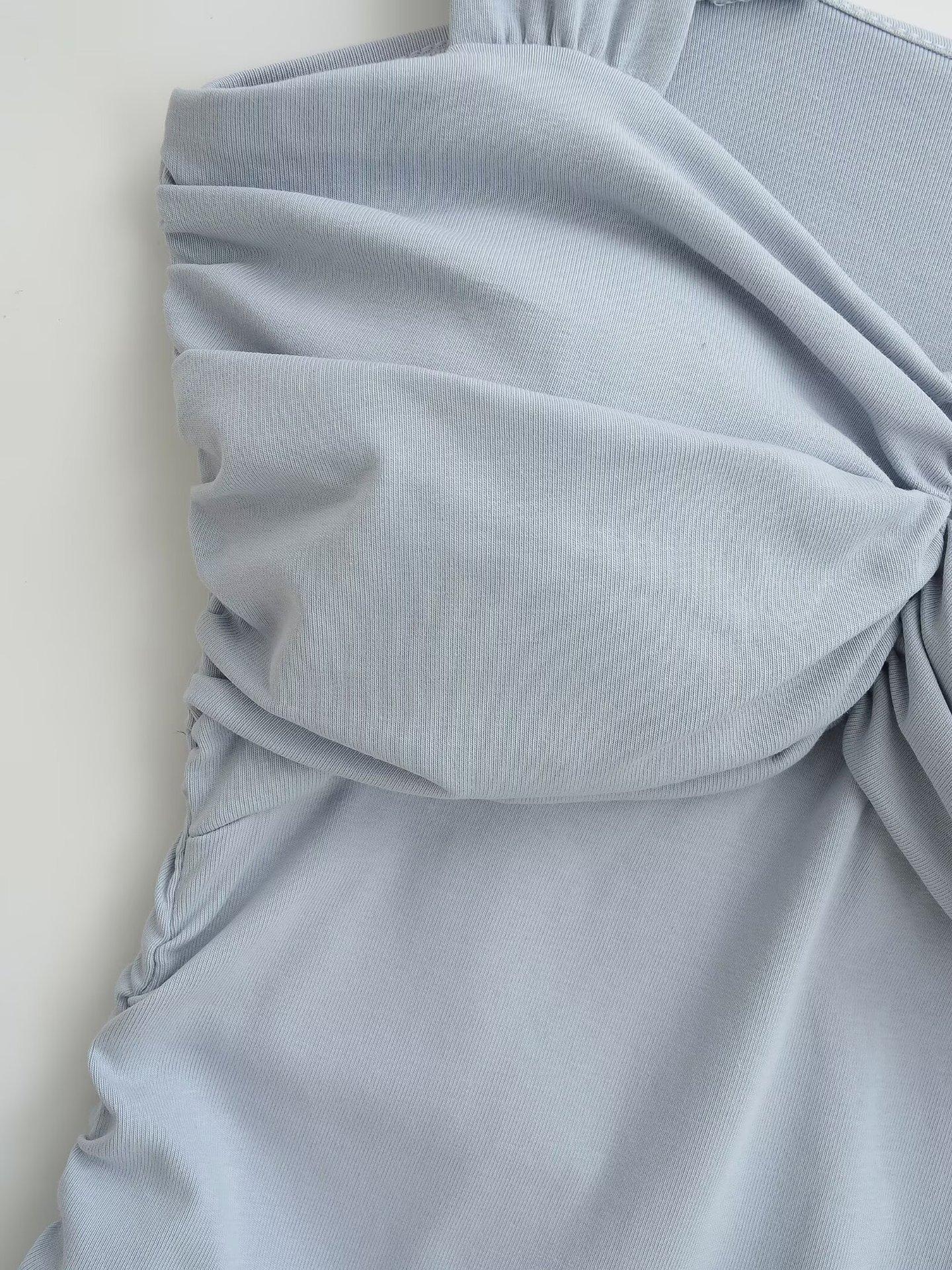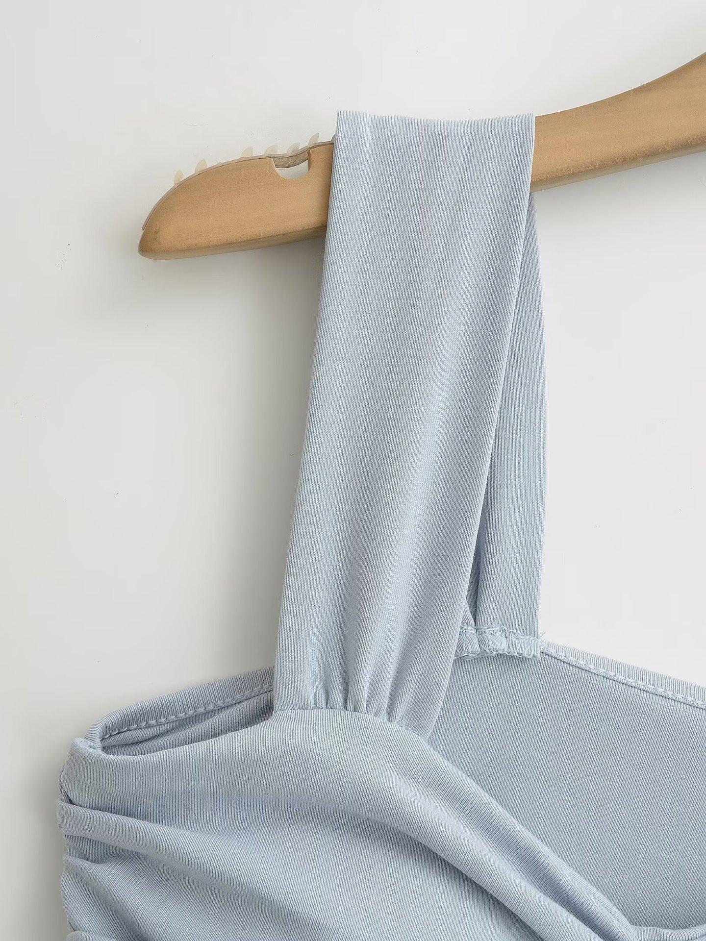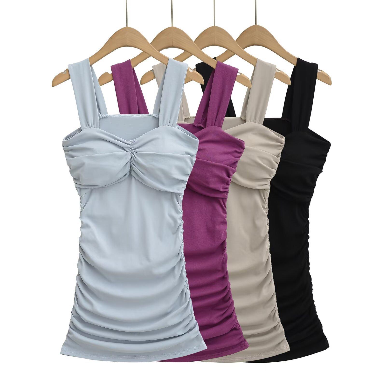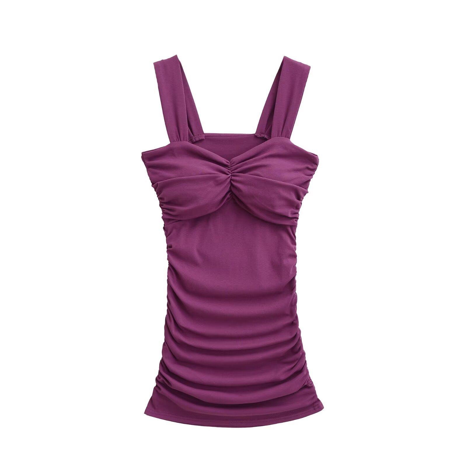 Vestido Camisola Fruncido Puro y Sexy para Mujer sin Mangas Adelgazante para la Cintura Bodycon Mini Vestido Temperamental Chica Caliente Adelgazante Verano Nuevo