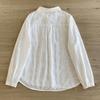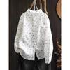 2024 Otoño Nuevo Camisa Blanca de Solapa de Manga Larga para Mujer Holgada Versátil con Flores Bordadas Camisa Base de Algodón