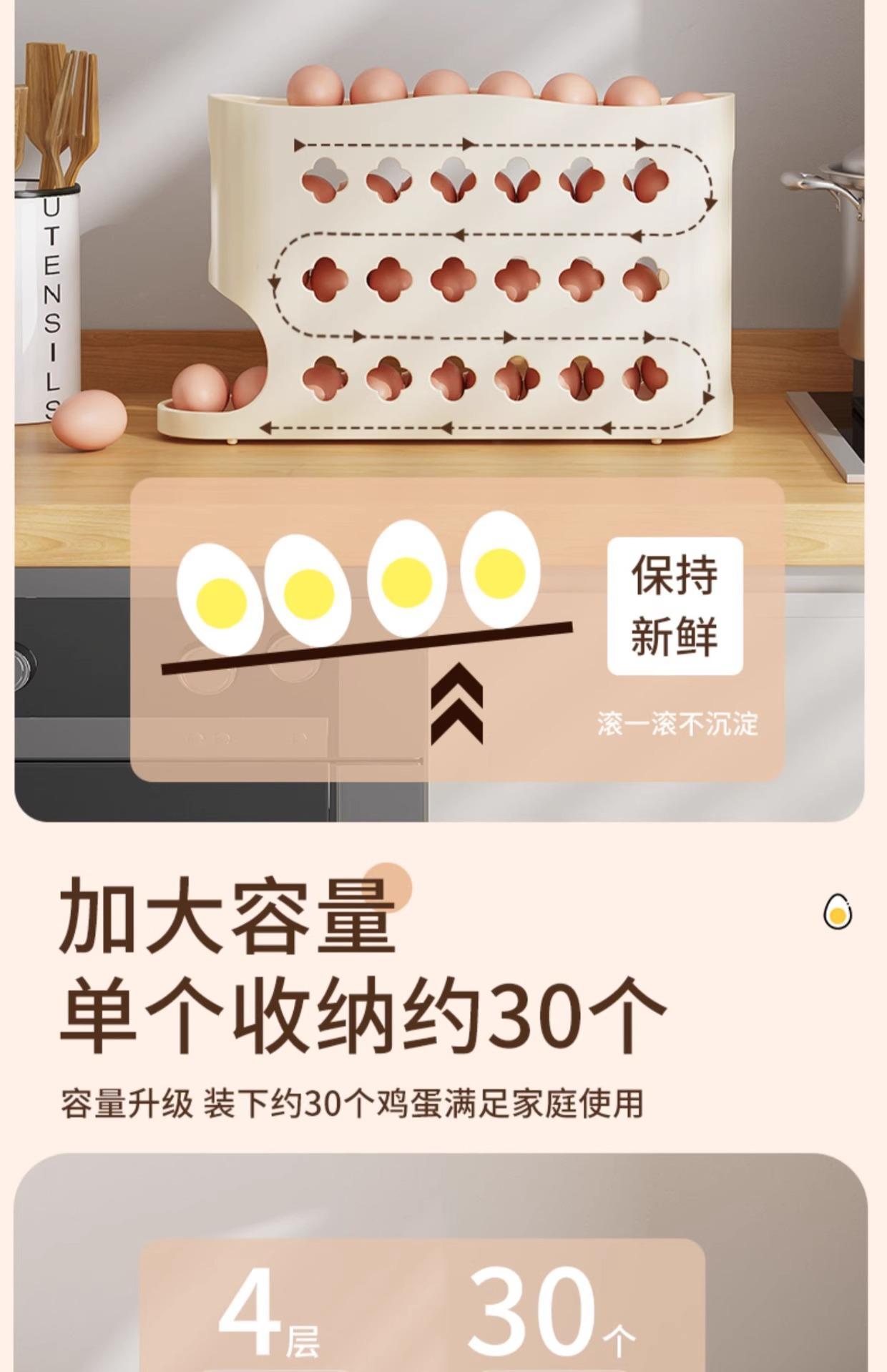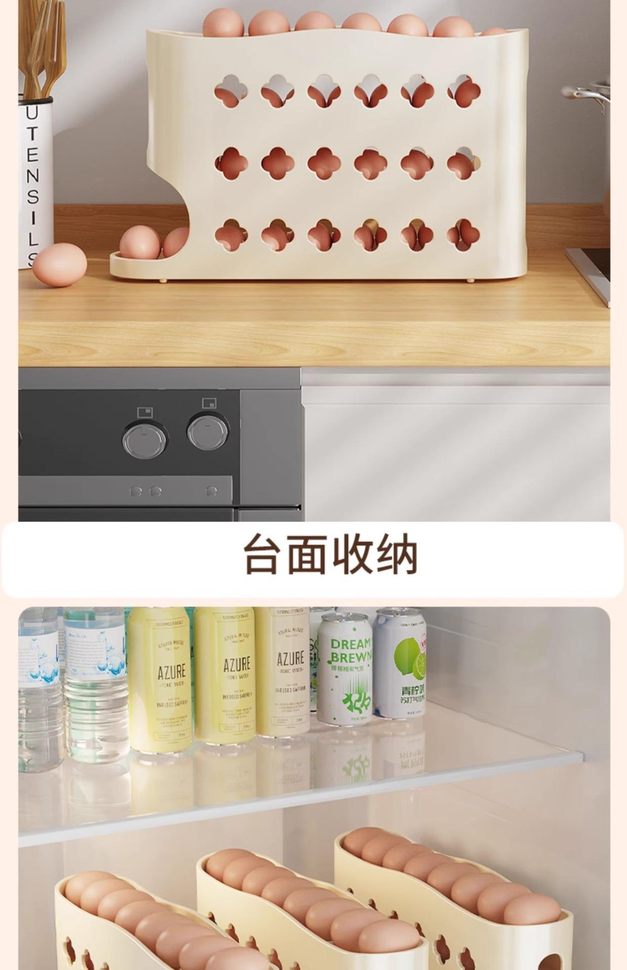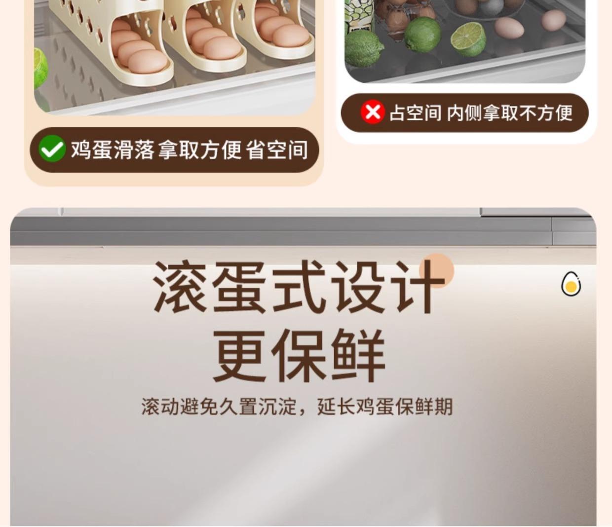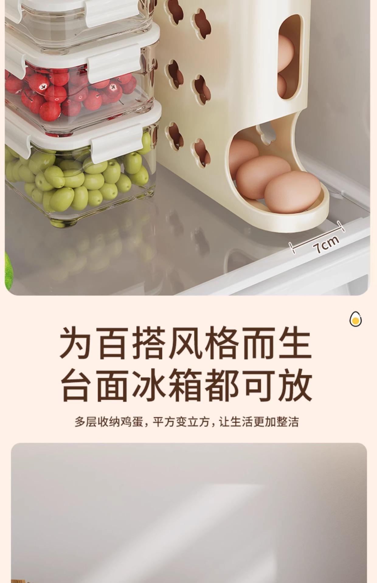 Caja rodante para guardar huevos, cocina multicapa diagonal, rodillo automático para huevos, soporte para huevos para puerta lateral de refrigerador, caja especial para mantener la frescura