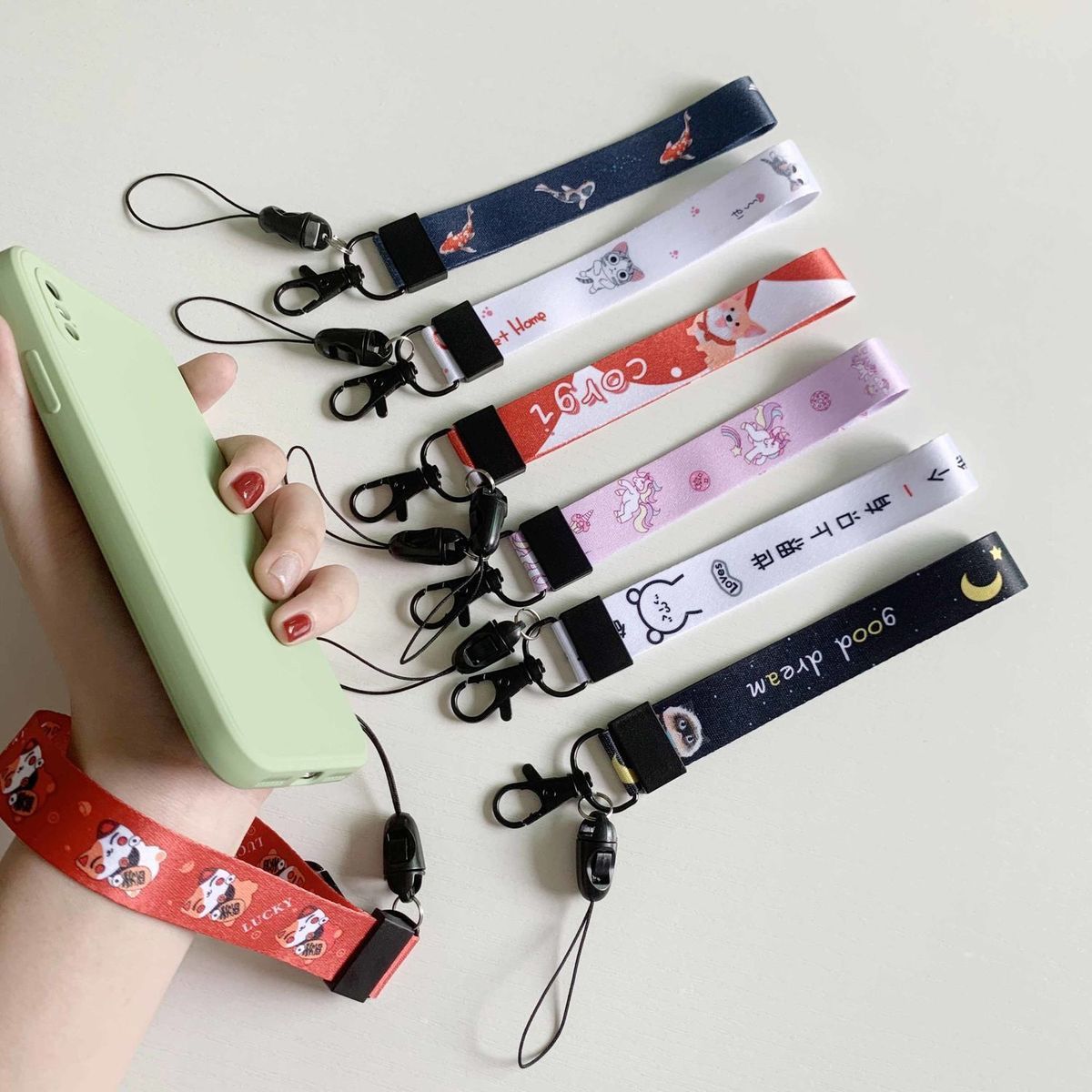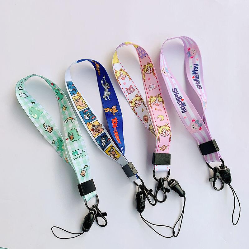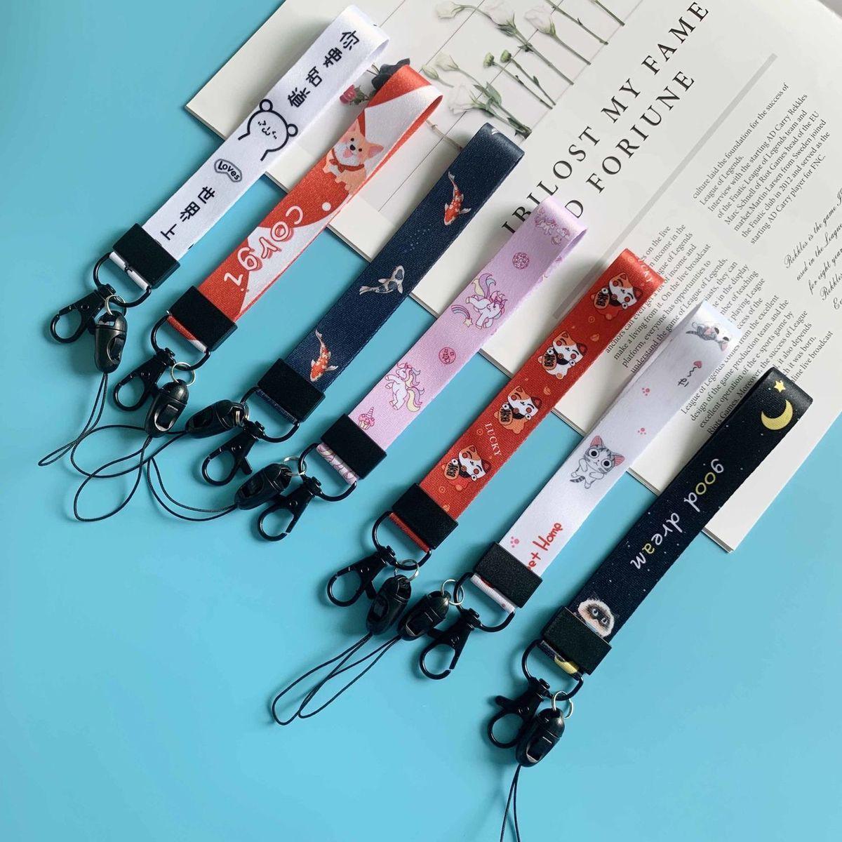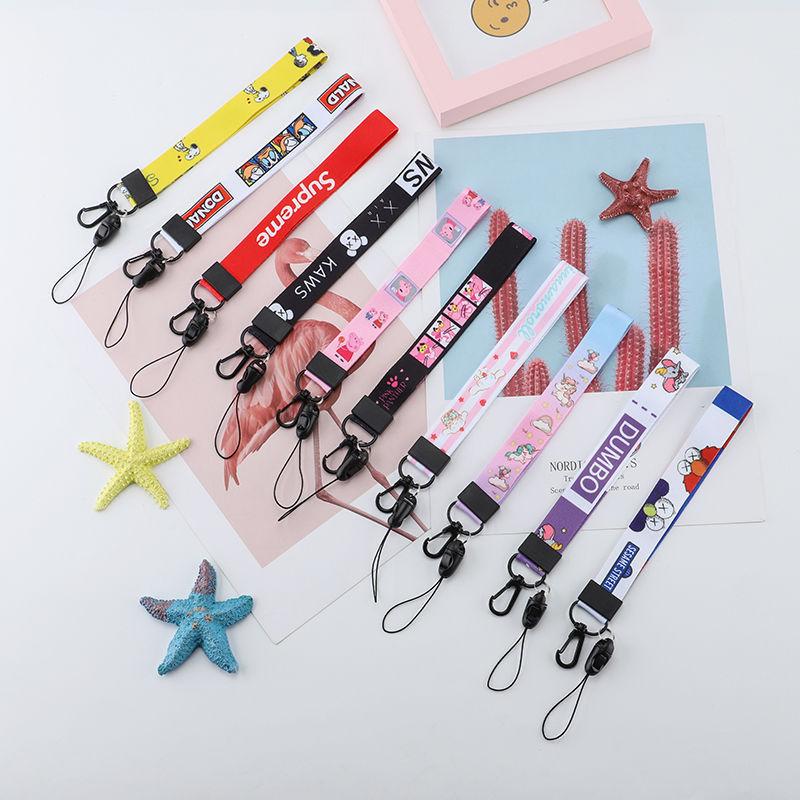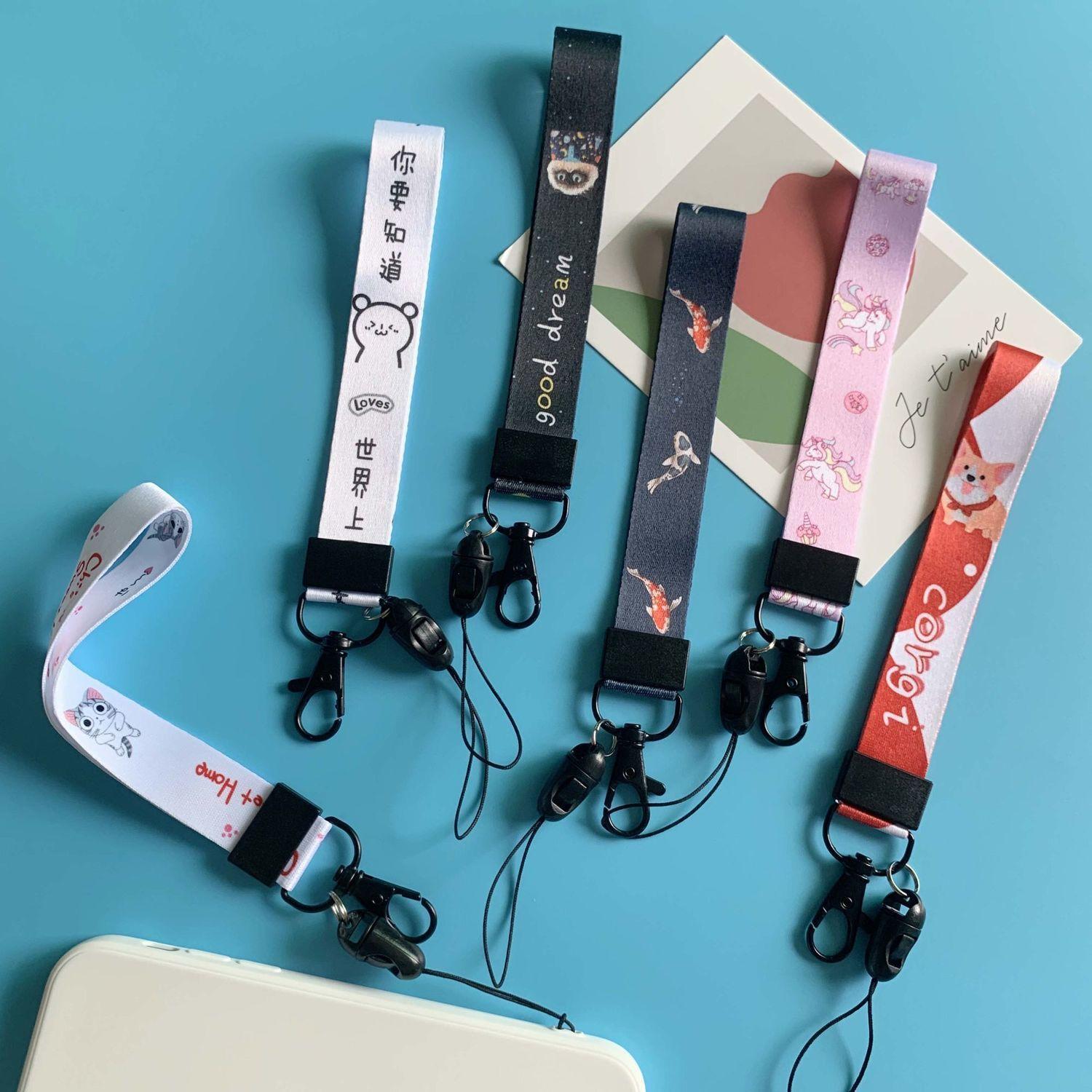 Suministro de fábrica transferencia térmica dibujos animados cordón para teléfono móvil hebilla mina desmontable universal corto funda para tarjeta muñeca cuerda ancha