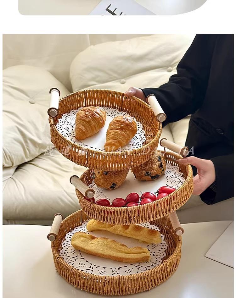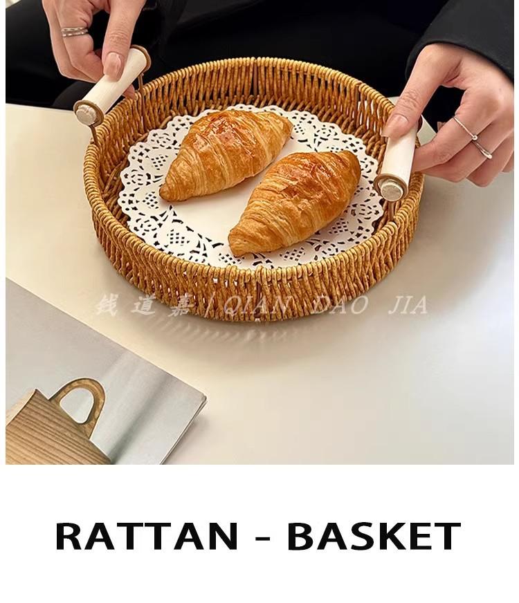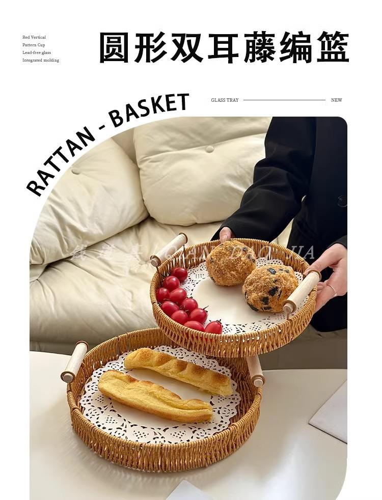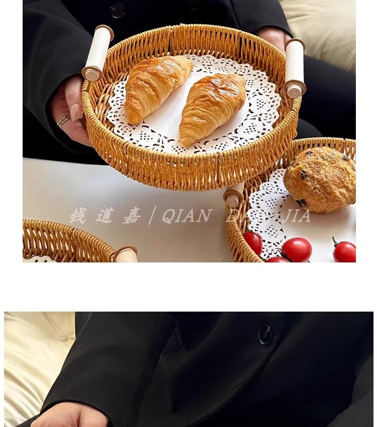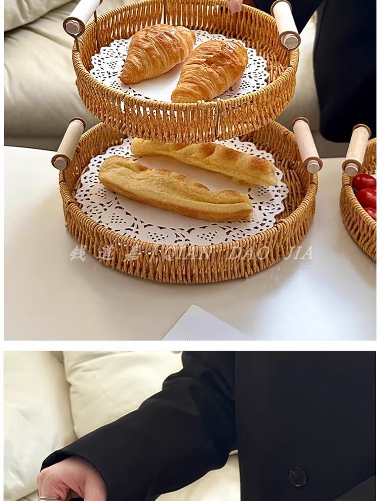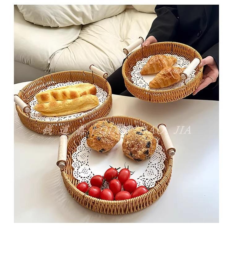 Cesta de Frutas de Ratán Imitación Cesta de Almacenamiento Tejida a Mano Cesta para Snacks y Pan de Estilo Japonés Bandeja Binaural Tejida en Ratán para el Hogar Sala de Estar