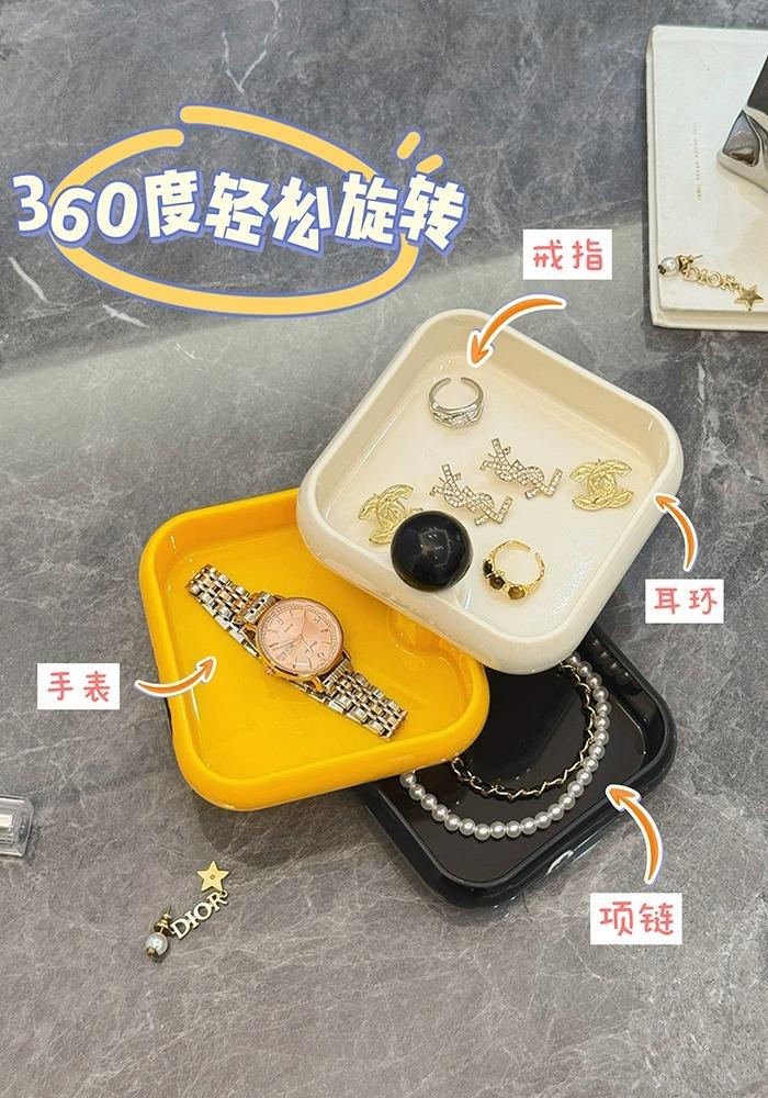Caja de Almacenamiento de Joyas Caja de Almacenamiento de Aretes Lujo Ligero de Alta Gama Exquisito Soporte para Joyas Giratorio Caja de Joyas Multicapa 2025