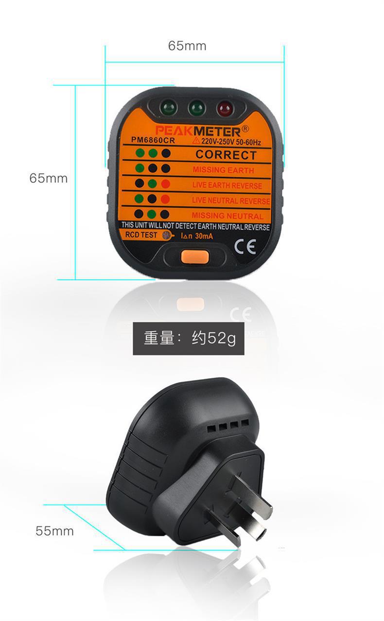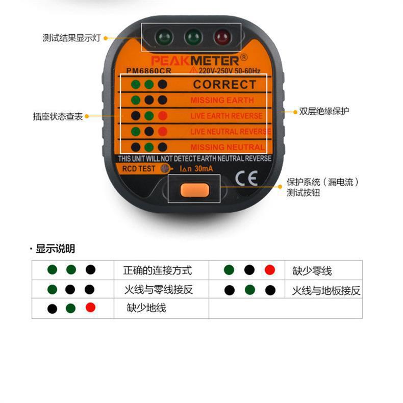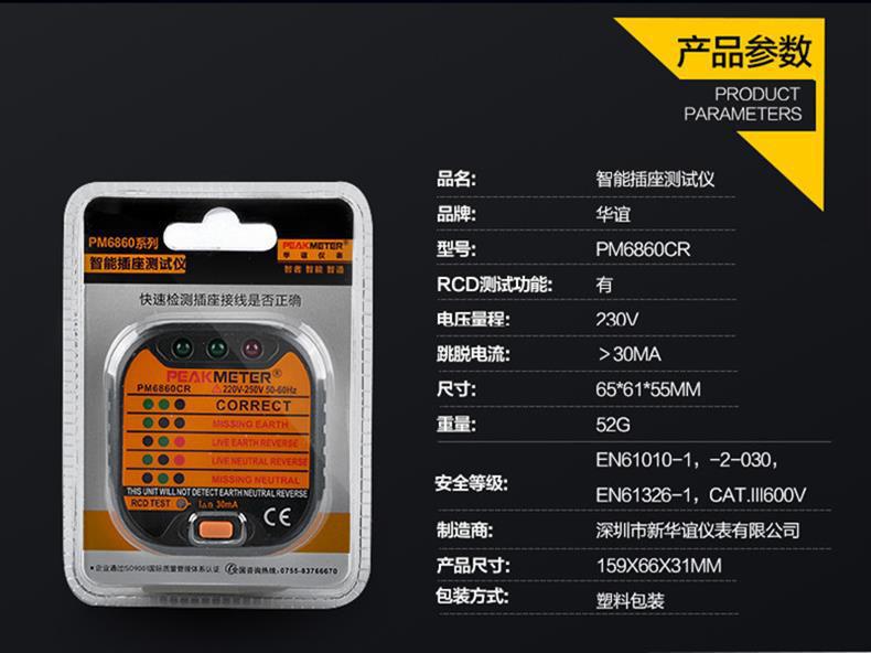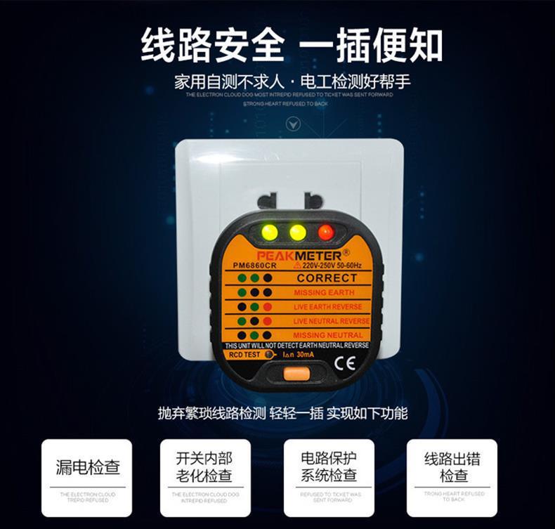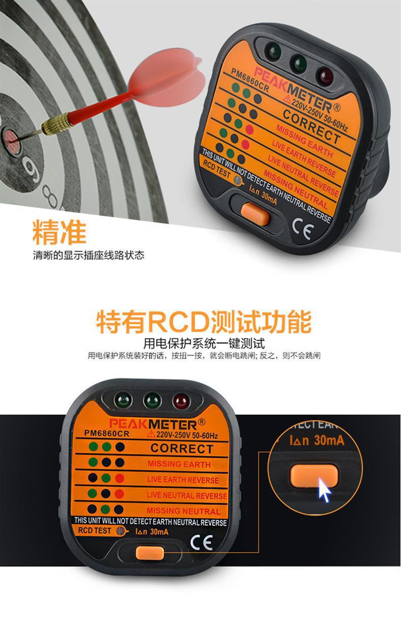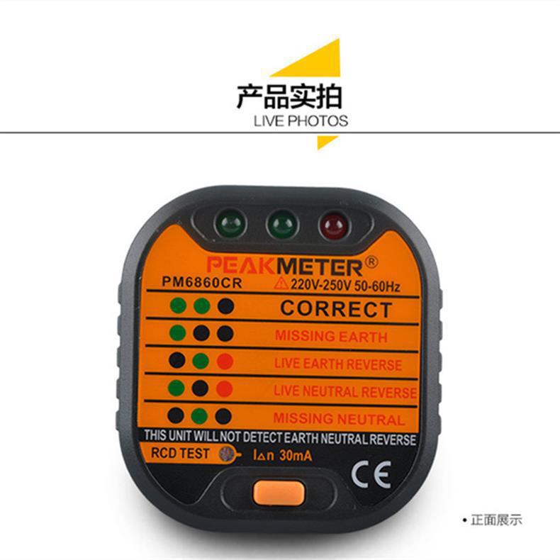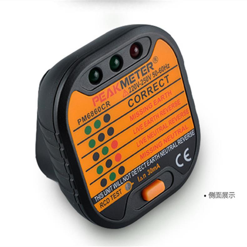 PEAKMETER Huayi PM6860C/CR Probador de Circuitos de Enchufe Detector RCD Portátil
