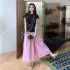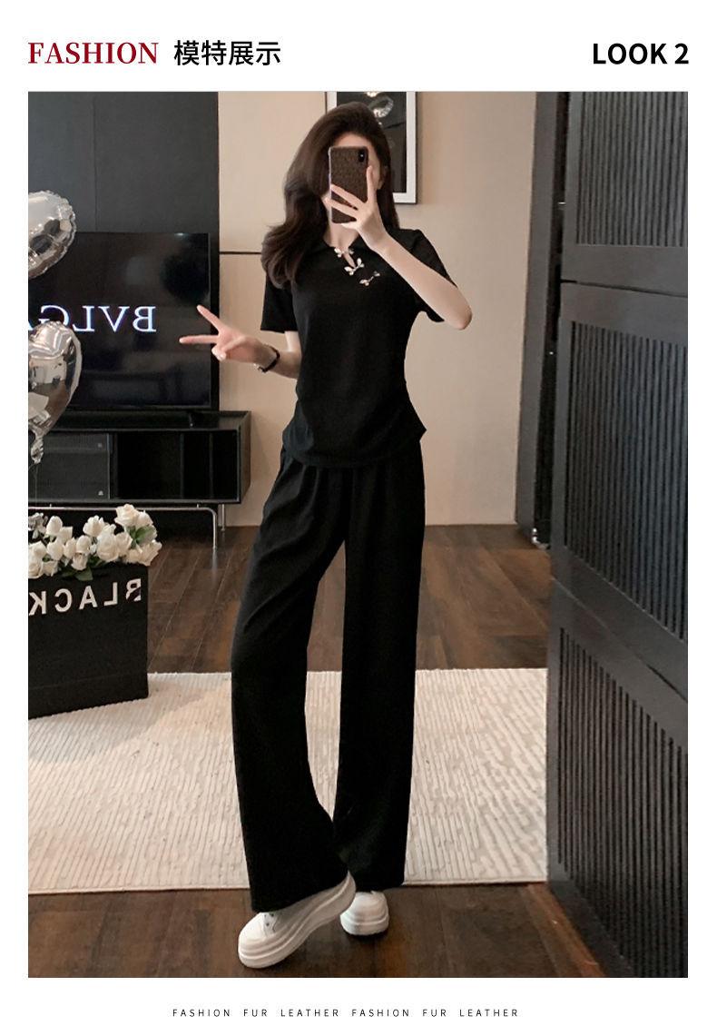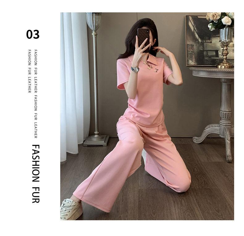Traje de Pantalón Ancho Casual Nuevo 2025 Estilo Diosa Moda de Verano Nuevo Estilo Chino Estilo Nacional Adelgazante Conjunto de Dos Piezas # 911