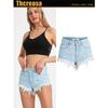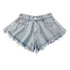 Europeo y Americano Transfronterizo Amazon Moda para Mujer Calle Rotos Shorts de Mezclilla Estilo Caliente Ajustado Ceñido Borde Crudo