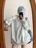 Sudadera con capucha gris de peso pesado estilo americano para mujer, con capucha, estilo perezoso de otoño e invierno, forro polar, manga larga gruesa, chaqueta holgada para pareja, moderna