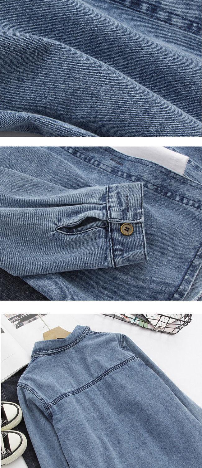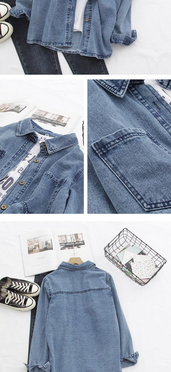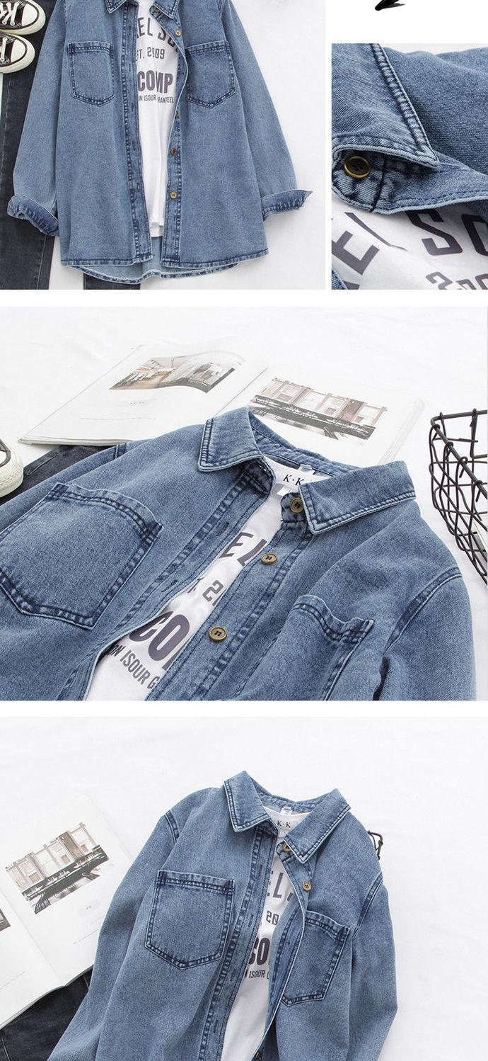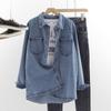 Camisa de Mezclilla para Mujer Primavera y Otoño 2023 Nuevo Estudiante Retro Estilo Hong Kong Suelta BF Combinable Manga Larga Chaqueta Camisera Apilada