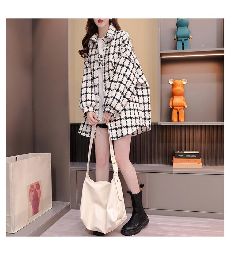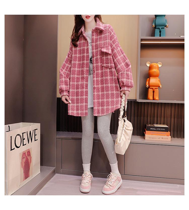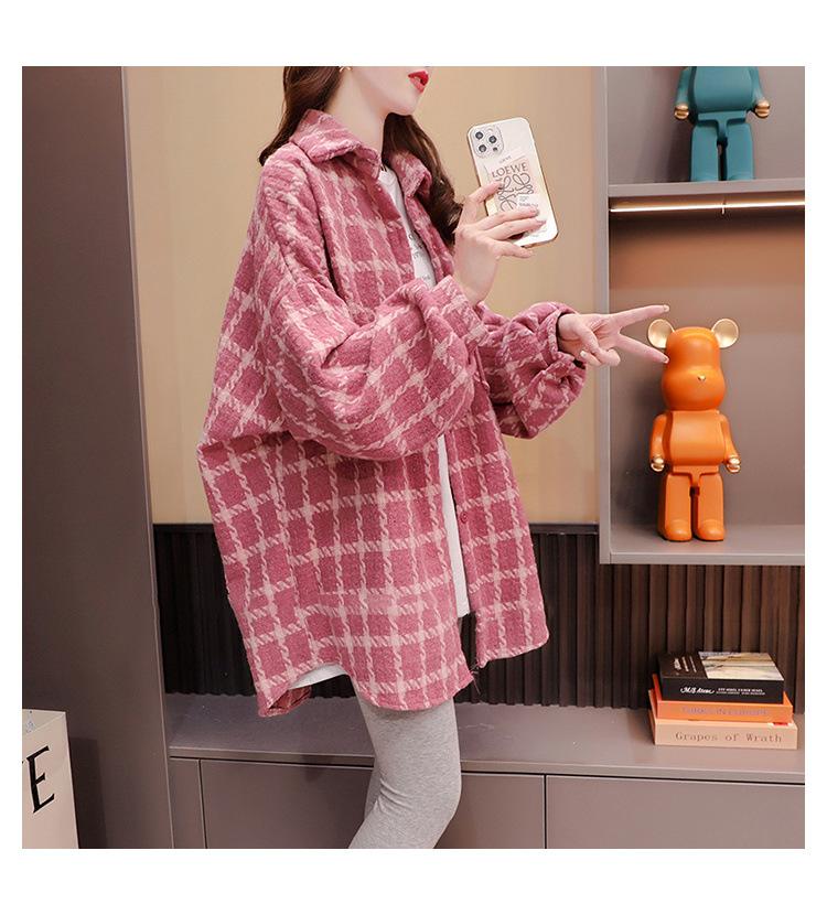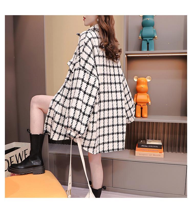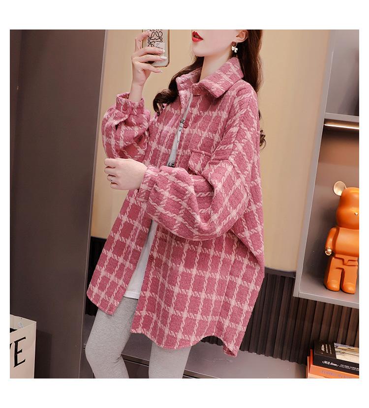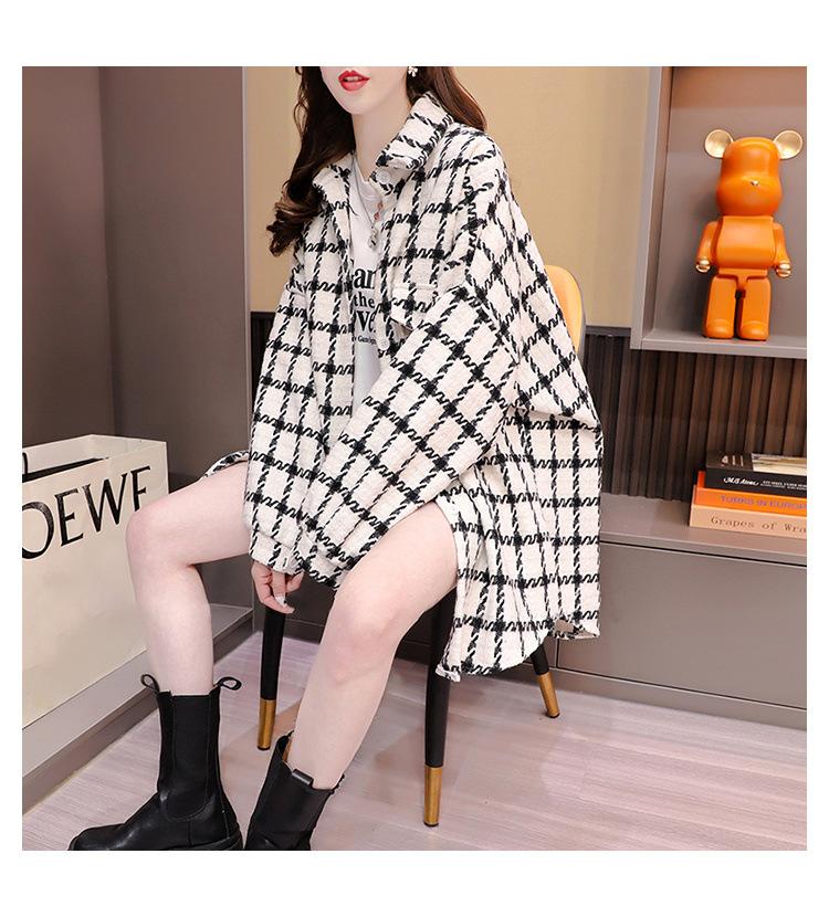 Camisa Holgada de Estilo Perezoso con Lijado Grueso para Mujer, Chaqueta a Cuadros 2023 Nueva Otoño e Invierno, Diseño Casual Holgado, Top