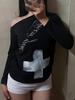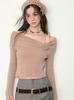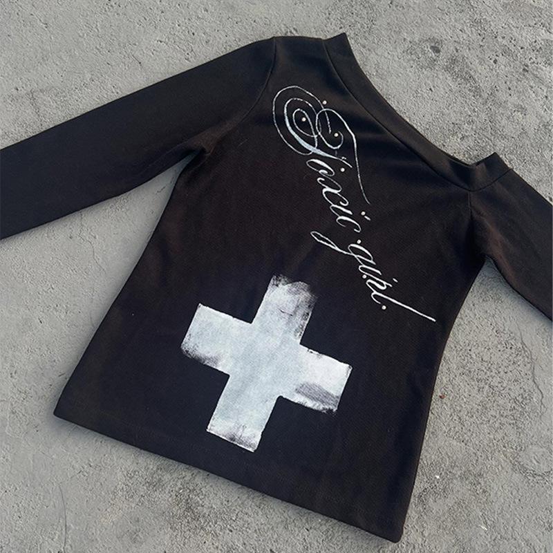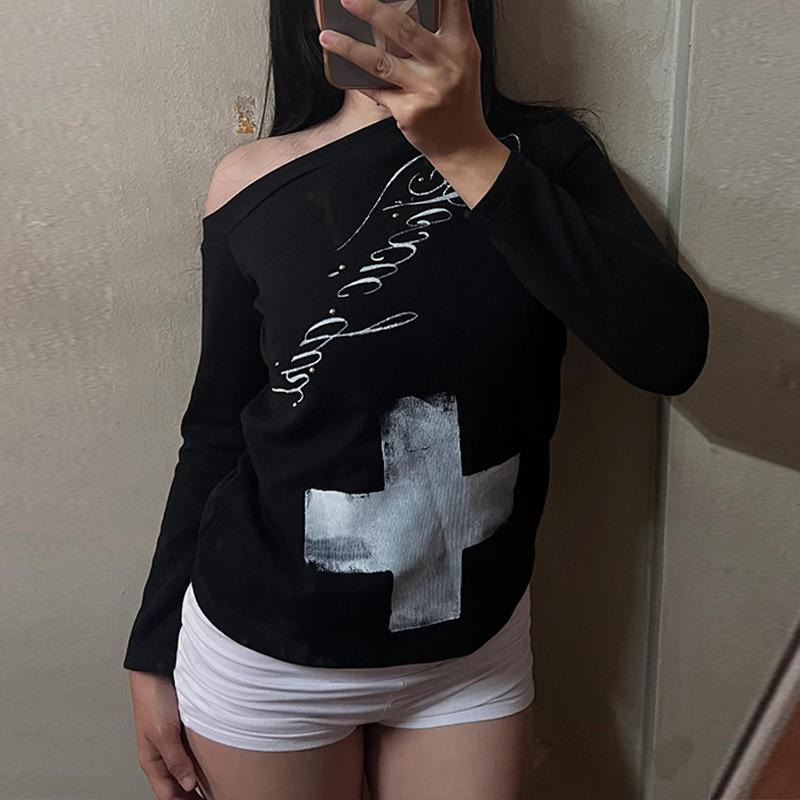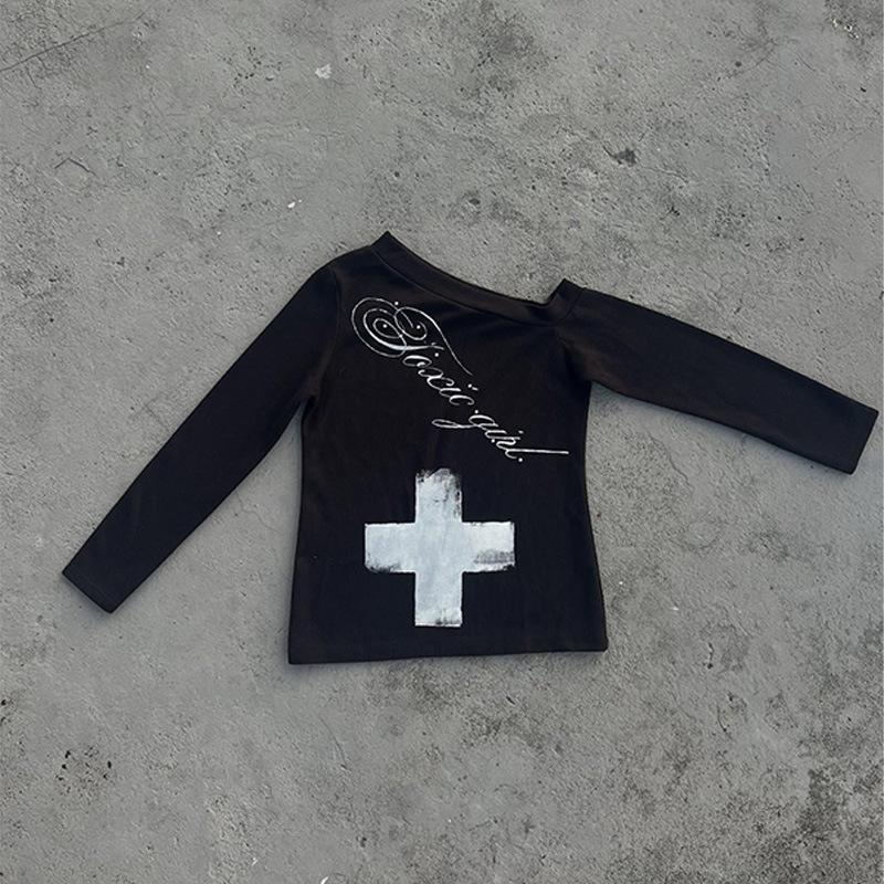 2025 Europeo y Americano Transfronterizo Estilo Sexy Dulce y Picante Moda Adelgazante Cuello Inclinado Hombro Descubierto Estampado Novedoso Nicho Manga Larga Top Mujer