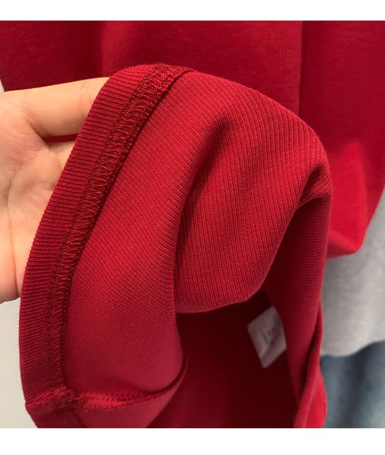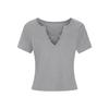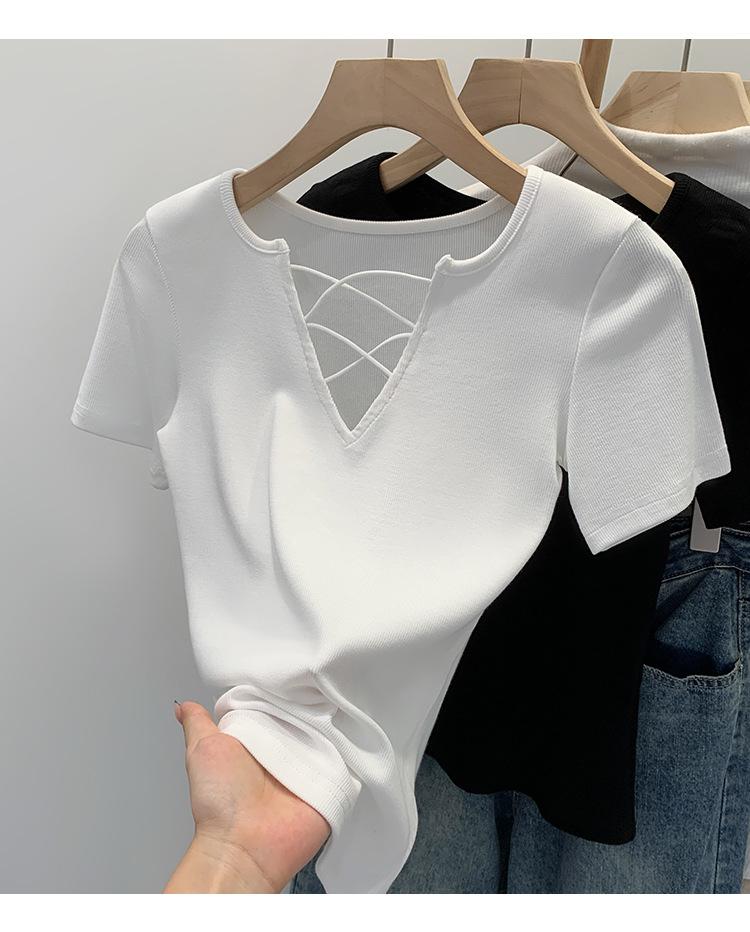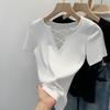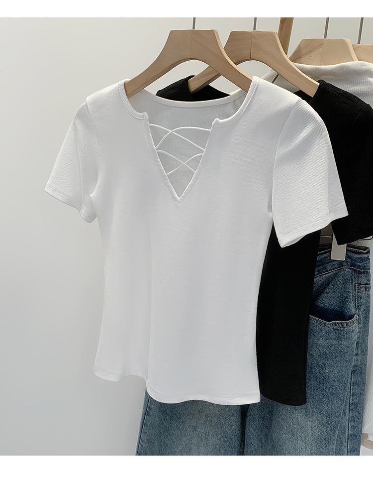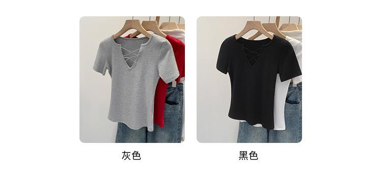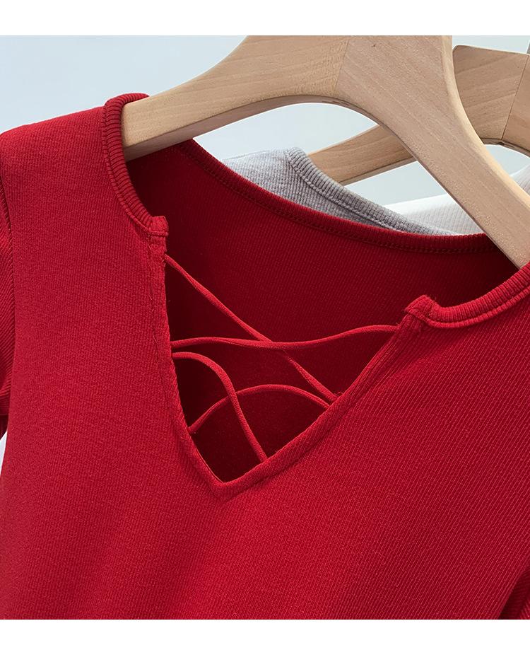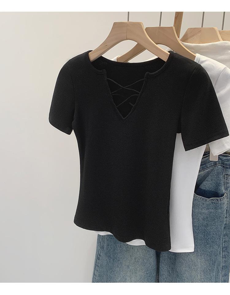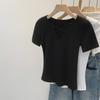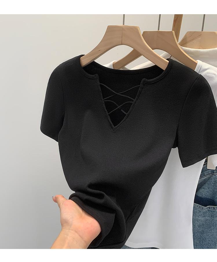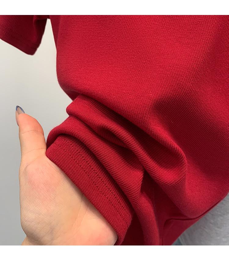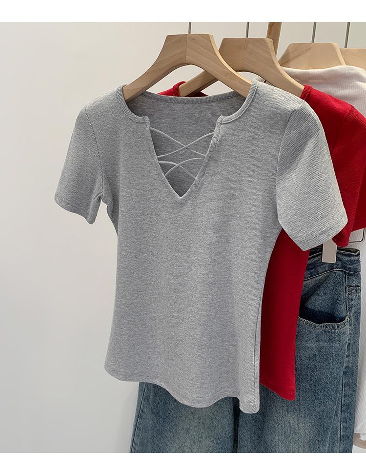 Playera Roja Caliente de Cuello en V con Manga Corta al Hombro Derecho para Mujer Verano 2025 Nuevo Diseño Nicho Estilo Coreano Top Interior
