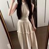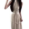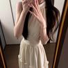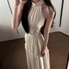 Diseño de Verano 2025 Adelgazante de Cintura Falda Larga Elegante Estilo Resort de Playa Vestido Blanco sin Mangas con Cuello Halter para Mujer