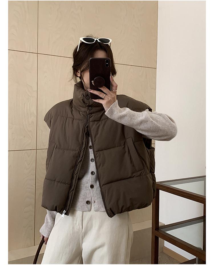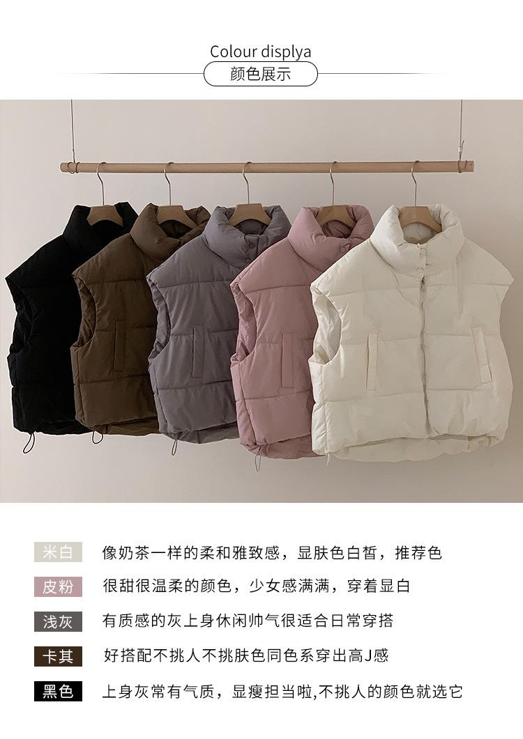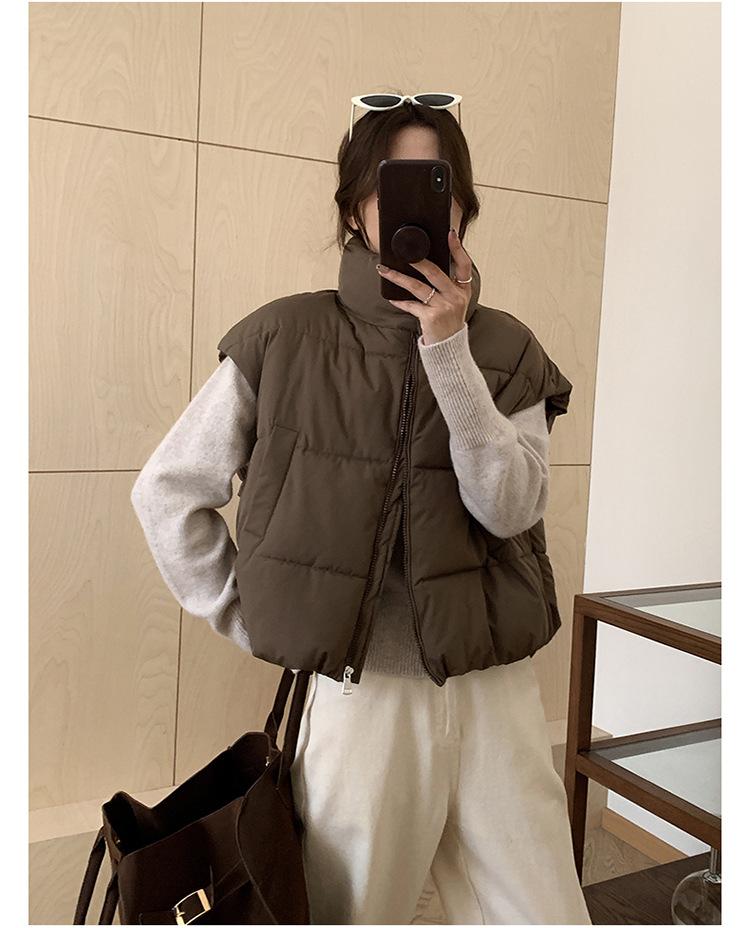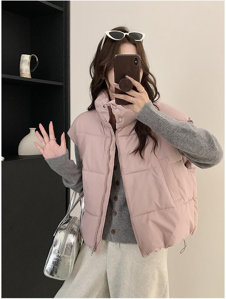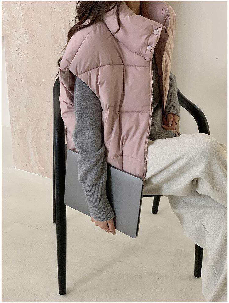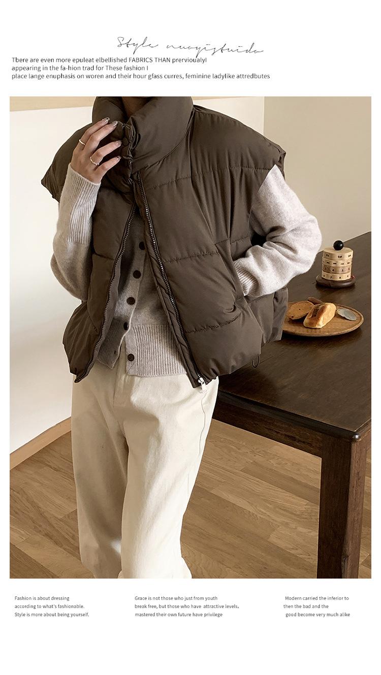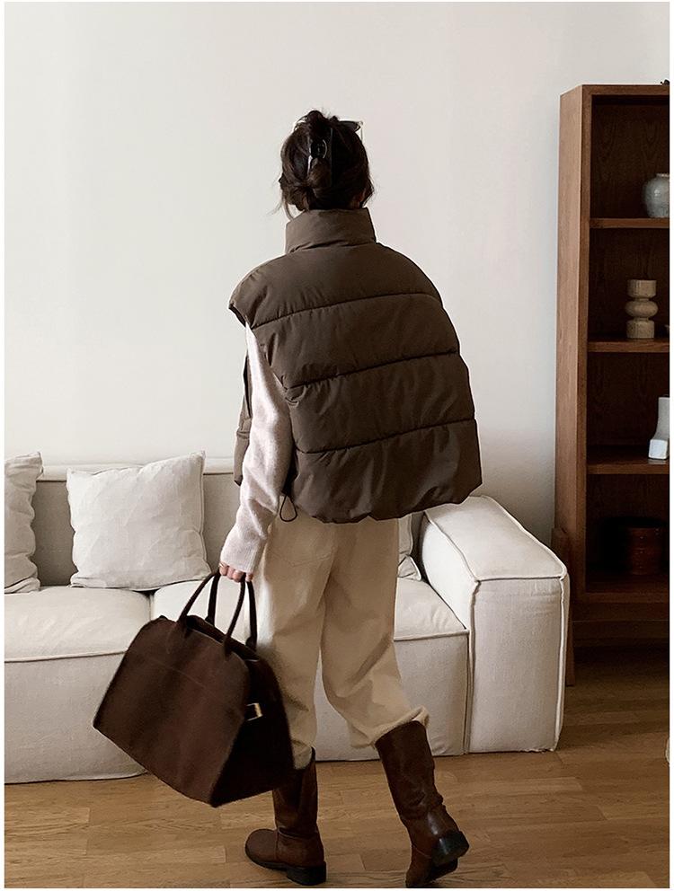 Chaleco de algodón acolchado grueso con cuello alto estilo coreano para mujer, corto, holgado, casual, para exterior