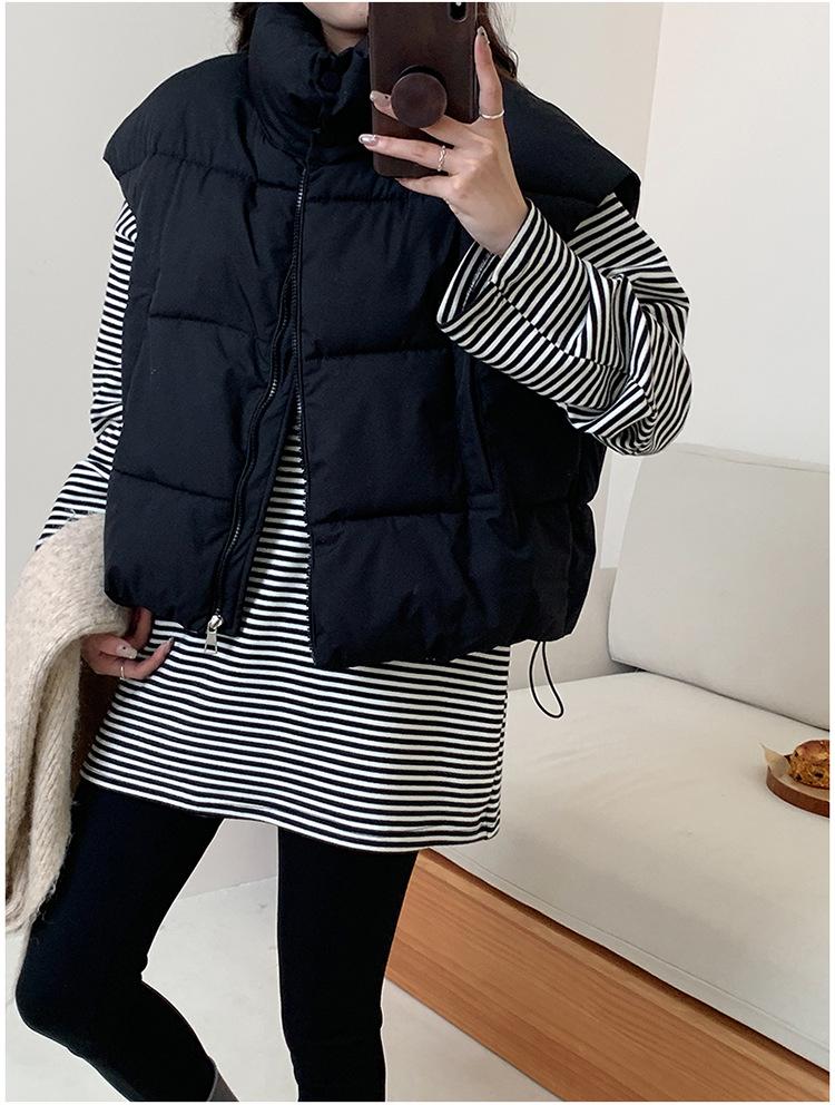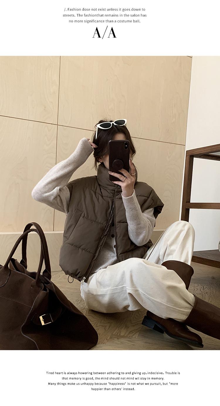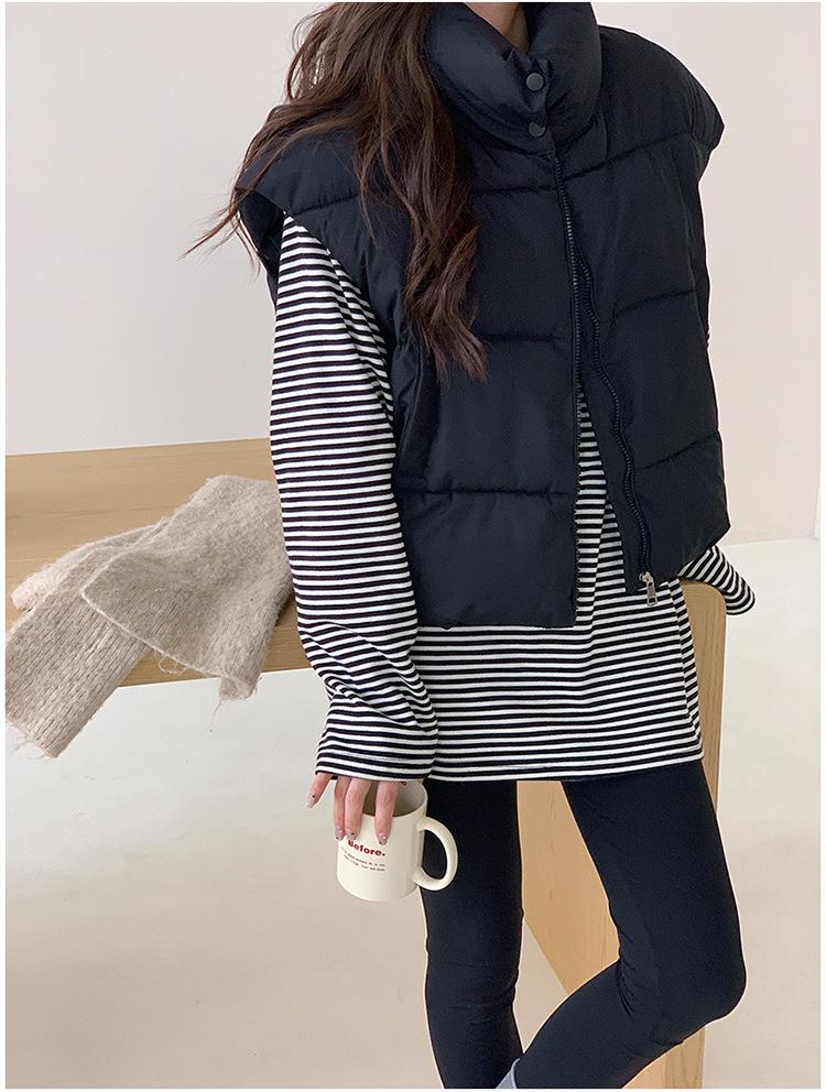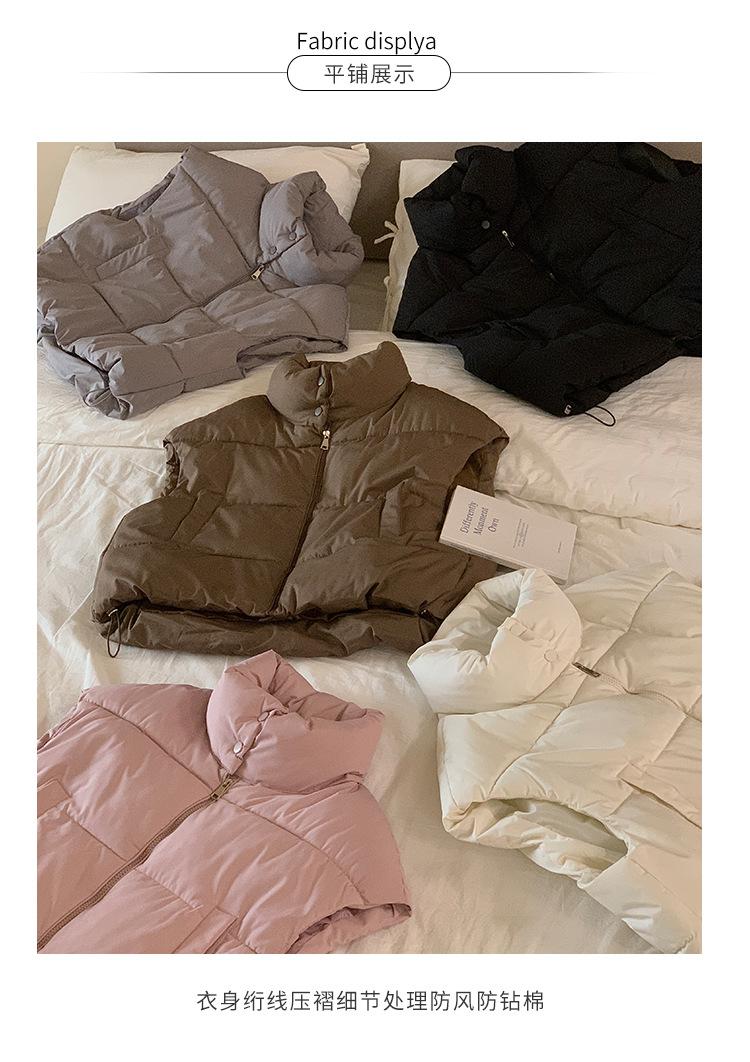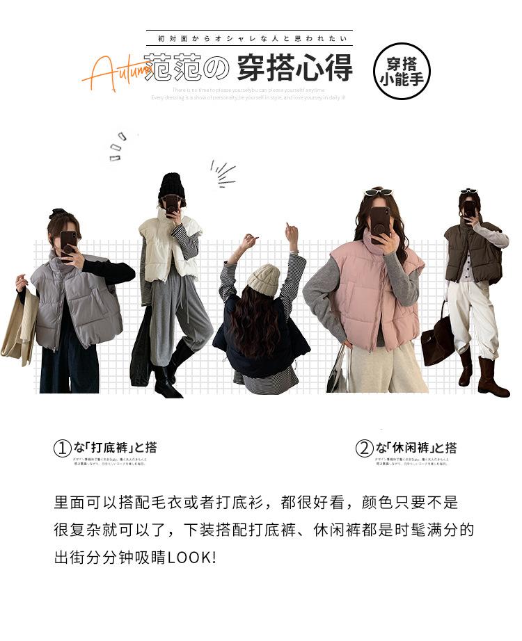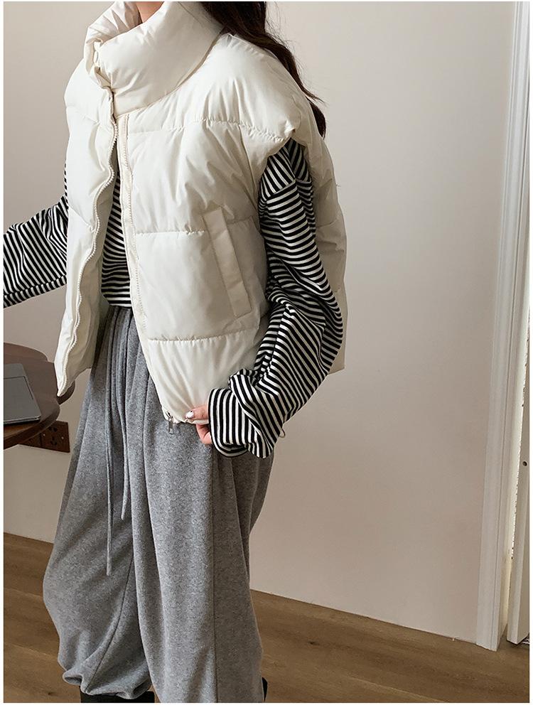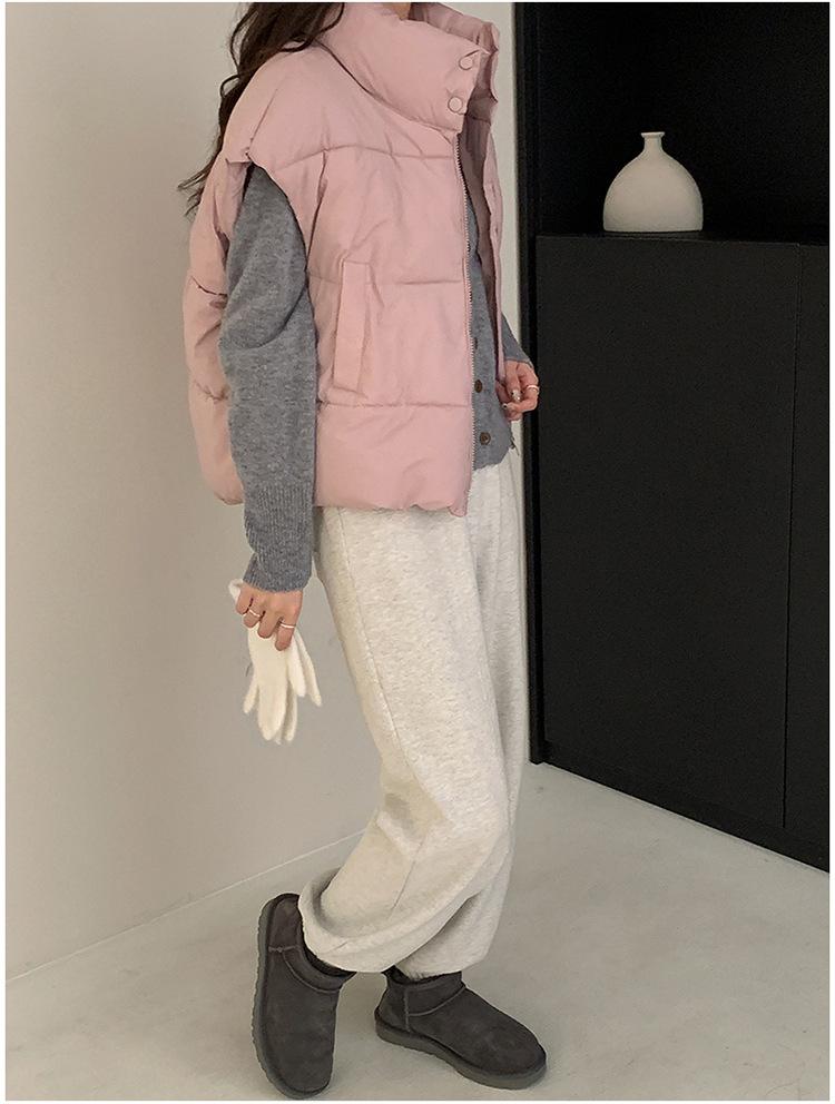 Chaleco de algodón acolchado grueso con cuello alto estilo coreano para mujer, corto, holgado, casual, para exterior