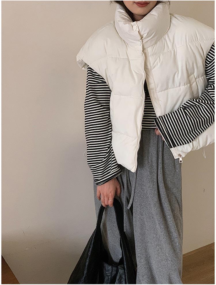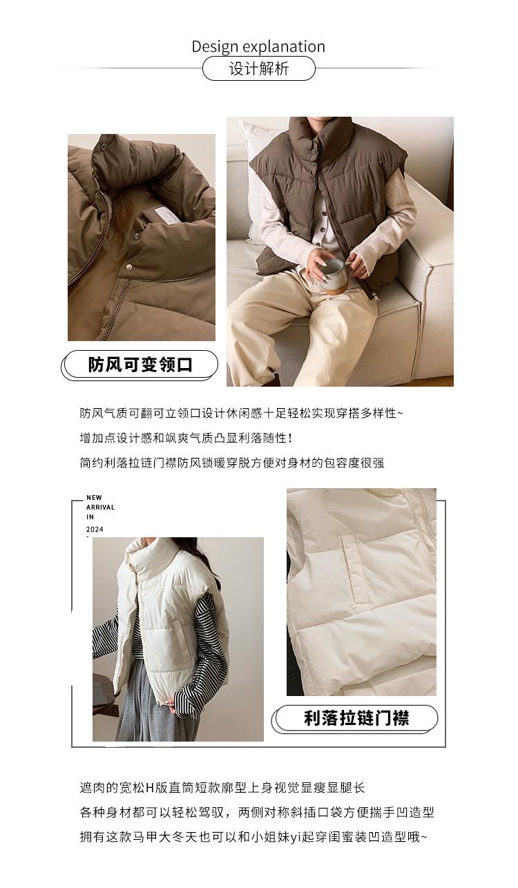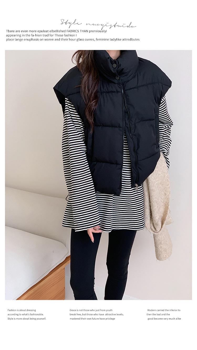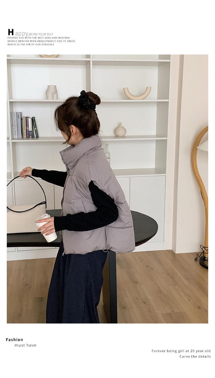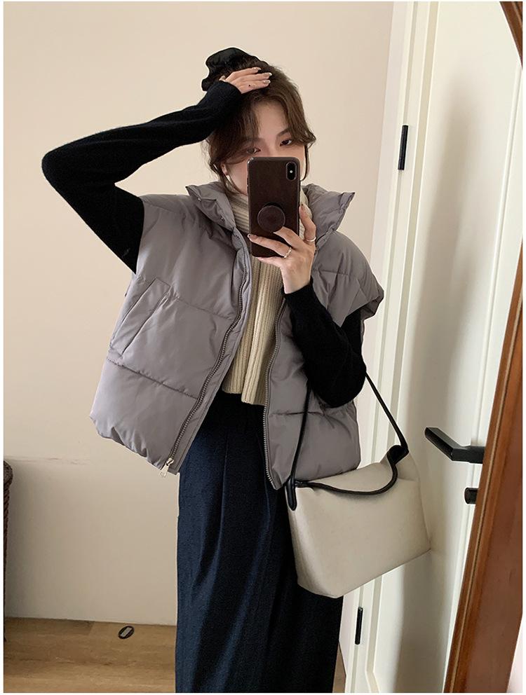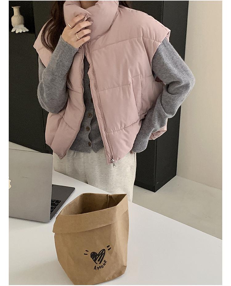Chaleco de algodón acolchado grueso con cuello alto estilo coreano para mujer, corto, holgado, casual, para exterior