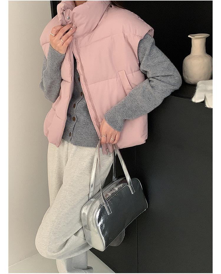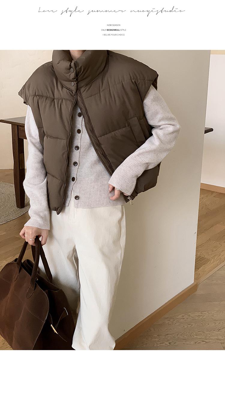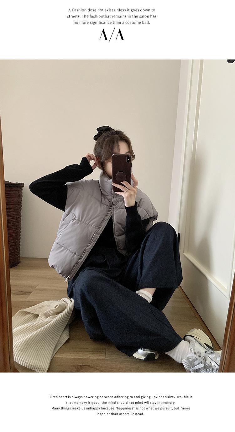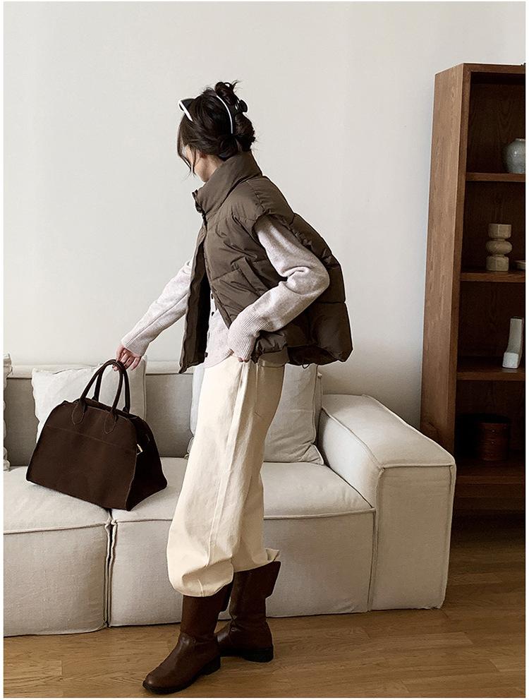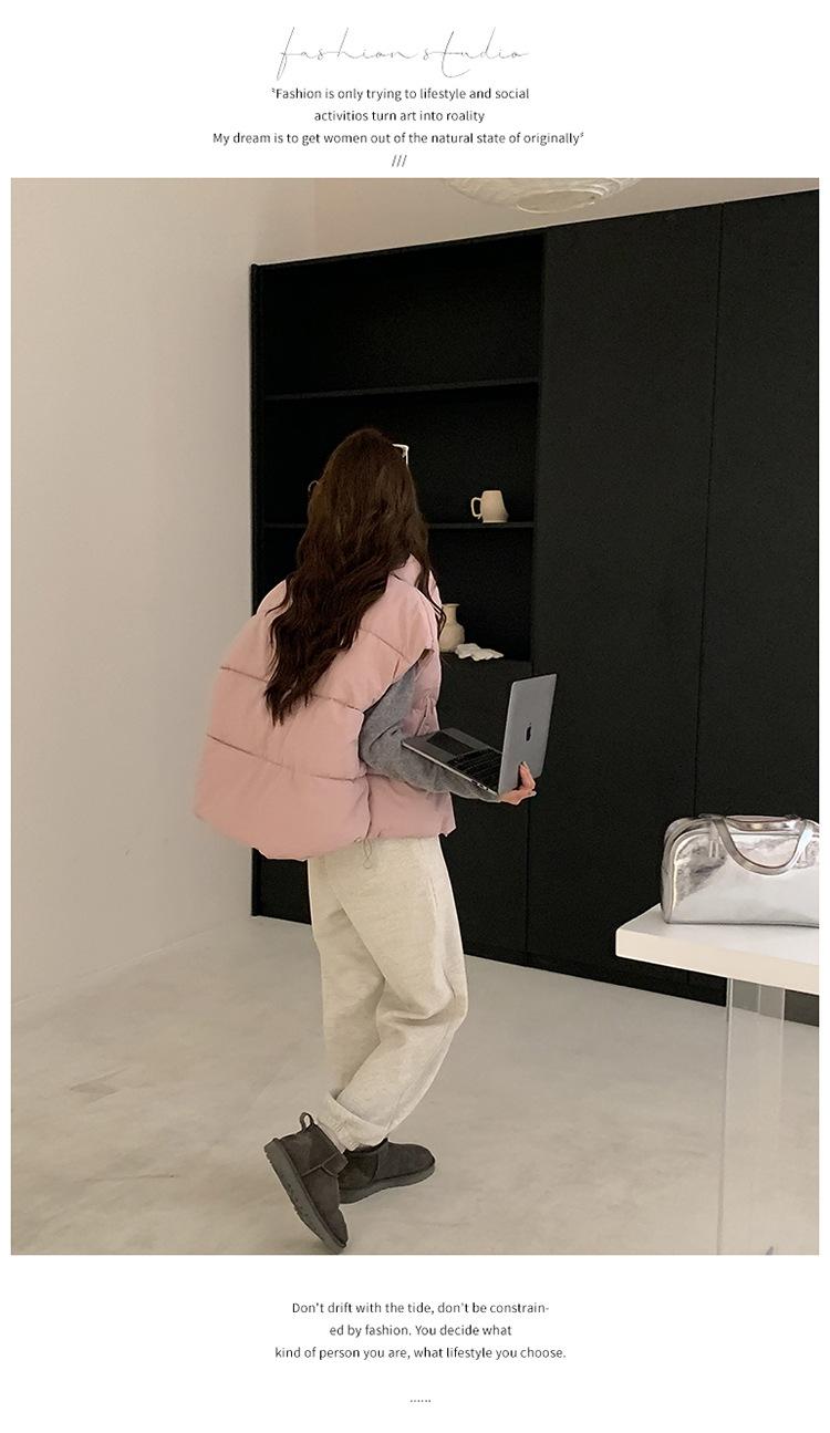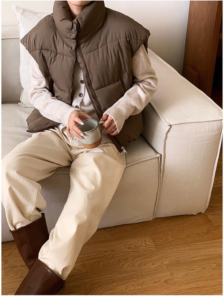 Chaleco de algodón acolchado grueso con cuello alto estilo coreano para mujer, corto, holgado, casual, para exterior