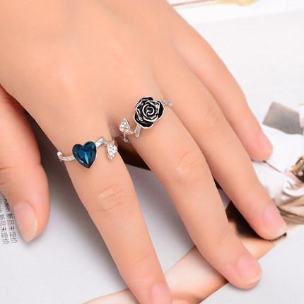 Anillo Femenino Japonés y Coreano Trendy Europeo y Americano Retro Anillo de Rosa Mejor Amigo de Pareja Separable Flor Amor Color Anillo de Diamantes