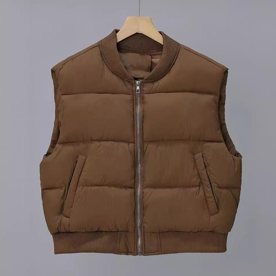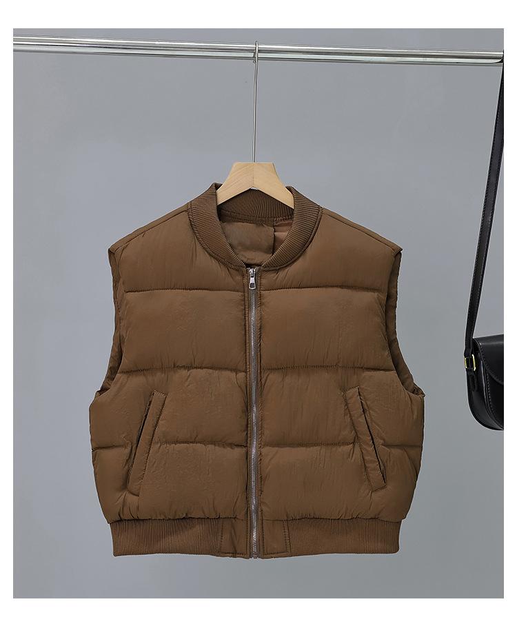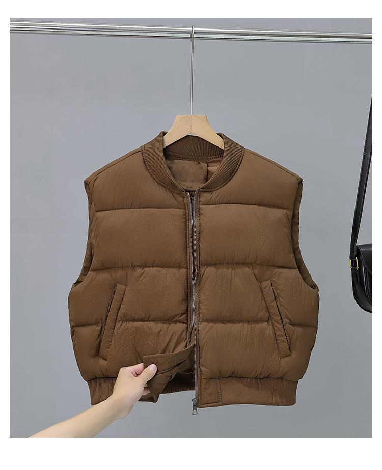 Chaleco de Algodón para Mujer 2025 Otoño e Invierno Nuevo Estilo Coreano Cuello Alto Corto Acolchado Chaqueta Chaleco de Algodón para Mujeres Petite