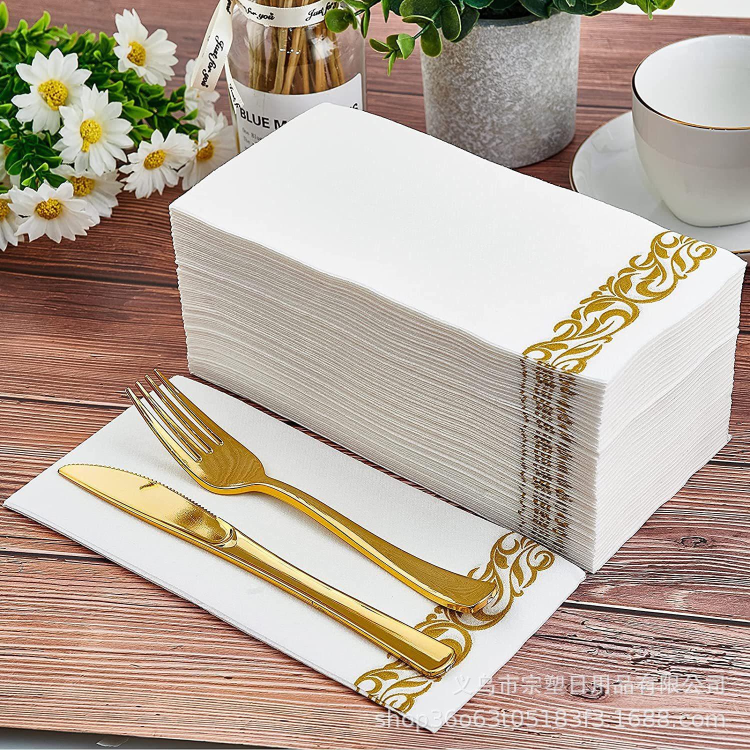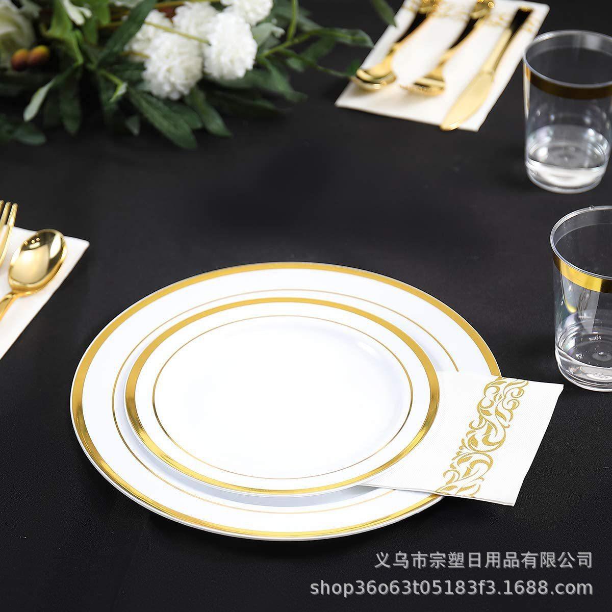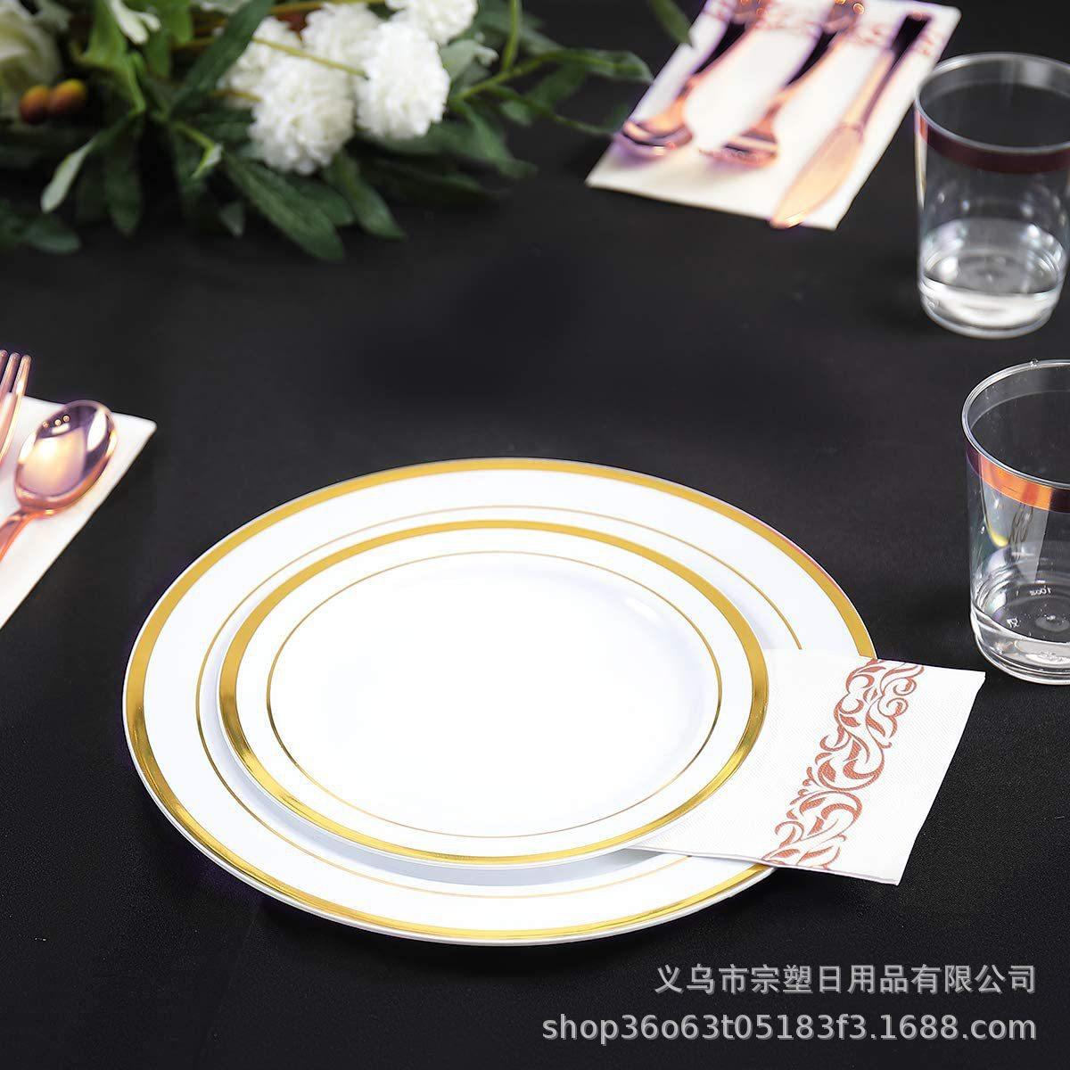 Juego de tres piezas de cuchillo, tenedor y cuchara desechables chapados en oro retro de plástico con relieve dorado y oro rosa estilo occidental, venta al por mayor transfronteriza |