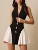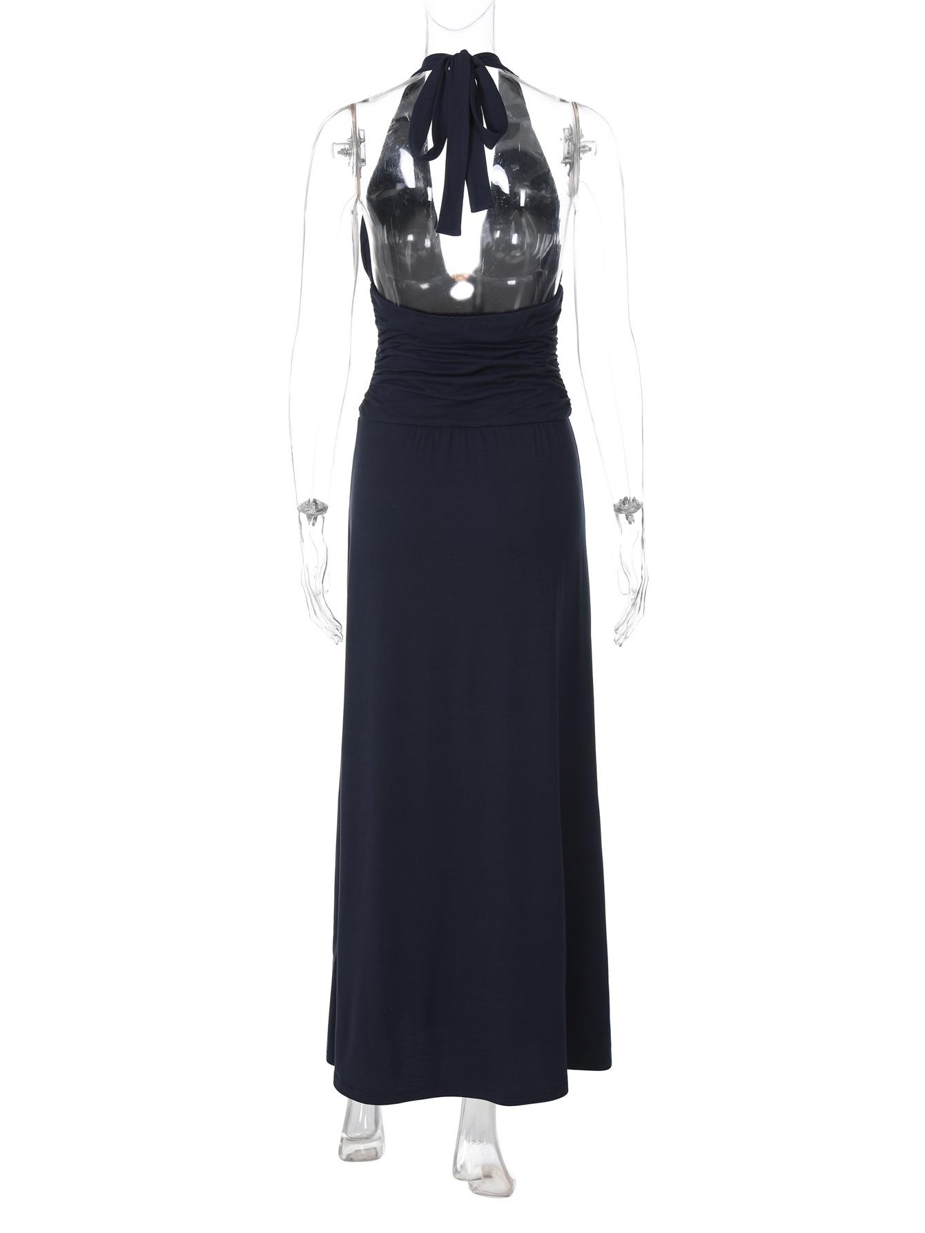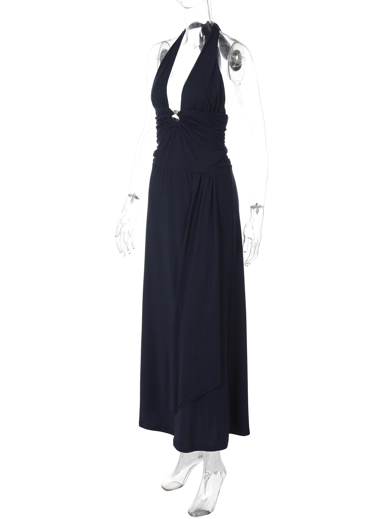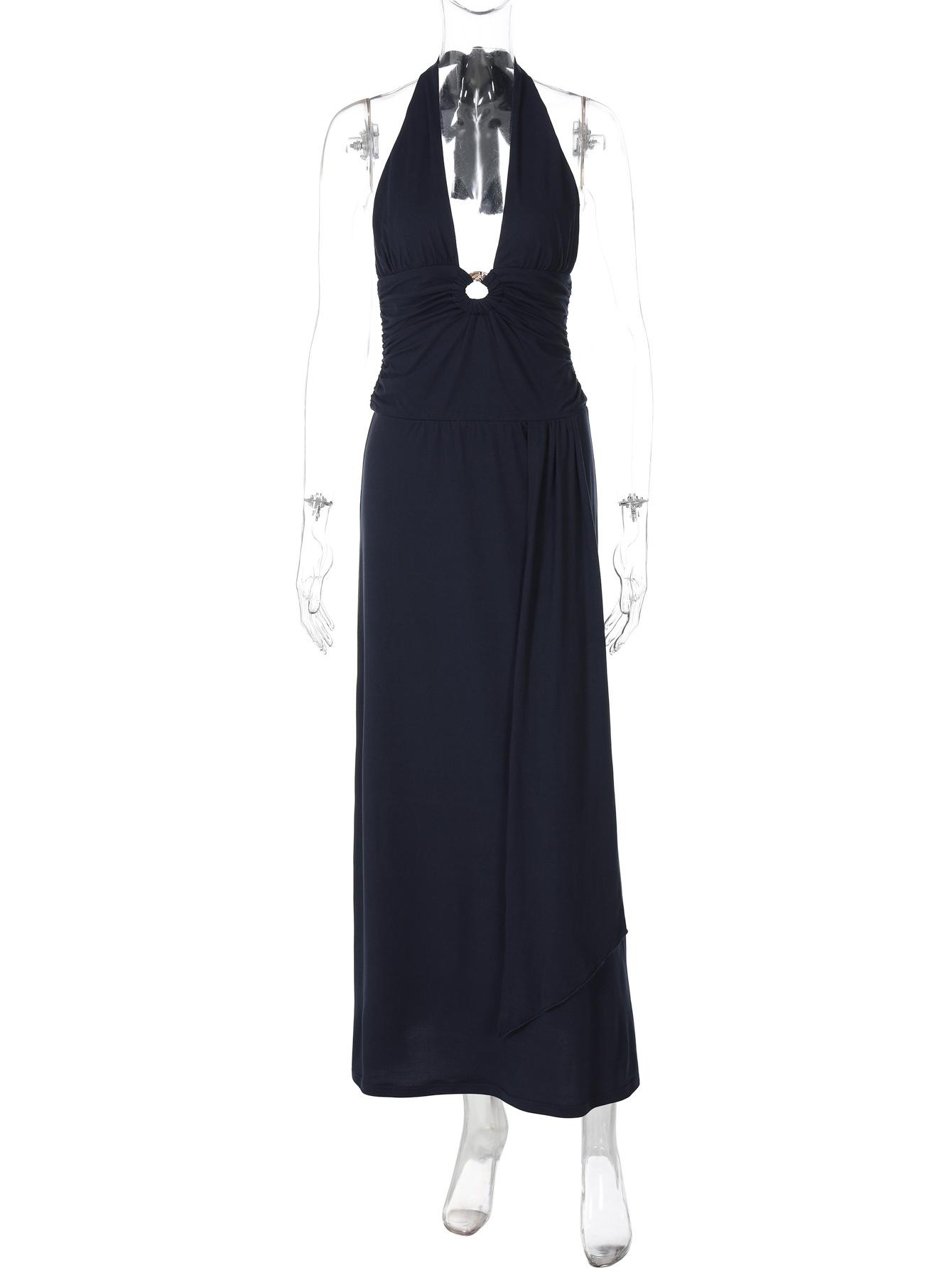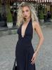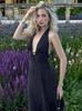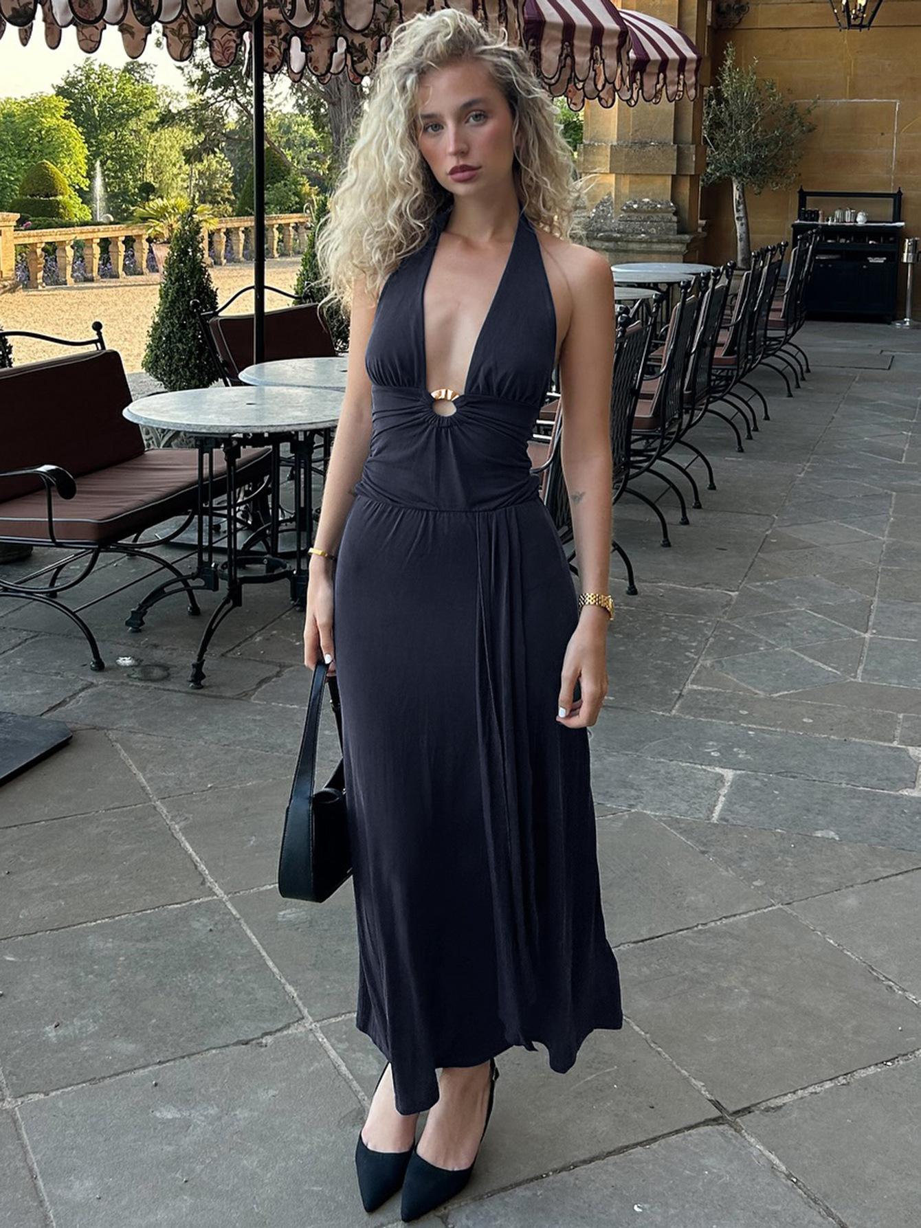 Ropa de Mujer Europea y Americana 2025 Verano Nueva Moda Sencillo Sexy Escote en V Profundo Cintura Adelgazante Temperamento Vestido sin Mangas Mujeres