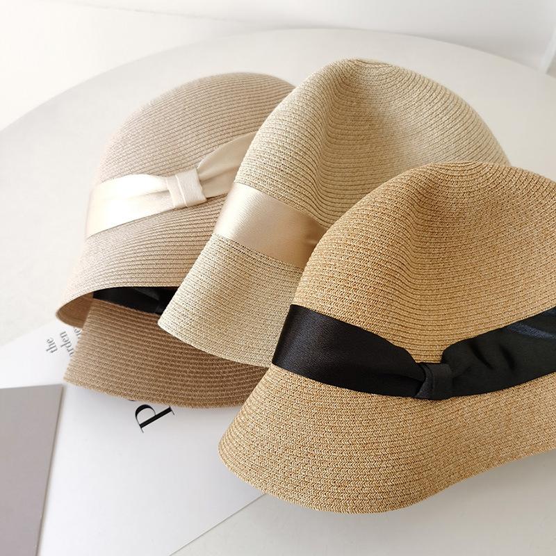 Sombrero de Paja Pequeño Casual para Mostrar la Cara Sombrero de Sol de Verano para Mujer Nuevo Sombrero de Pescador para Vacaciones en la Playa Junto al Mar Sombrero de Protección Solar Moderno
