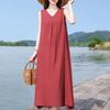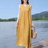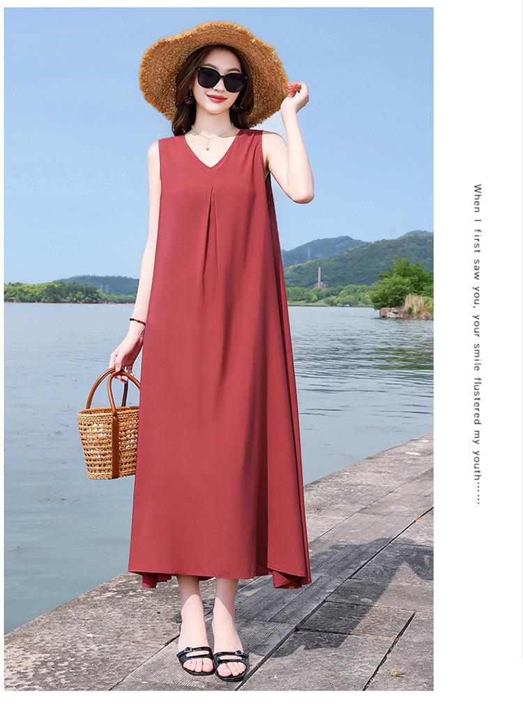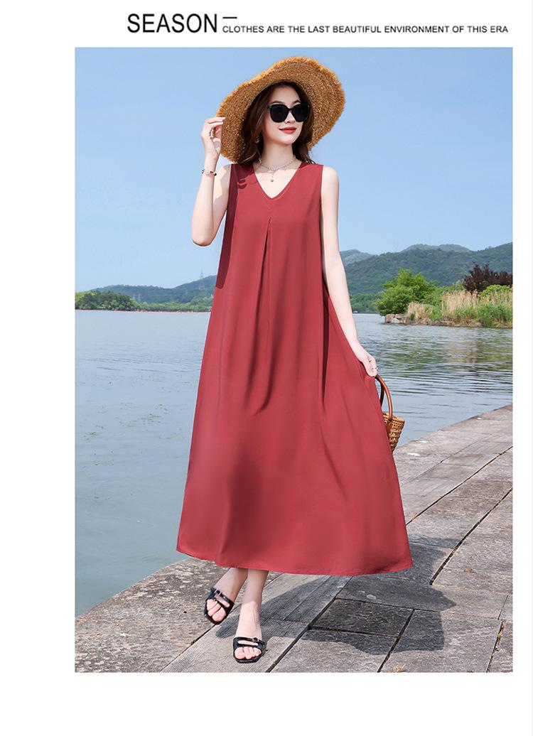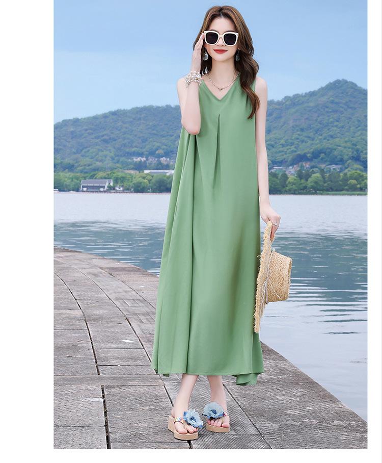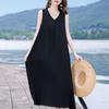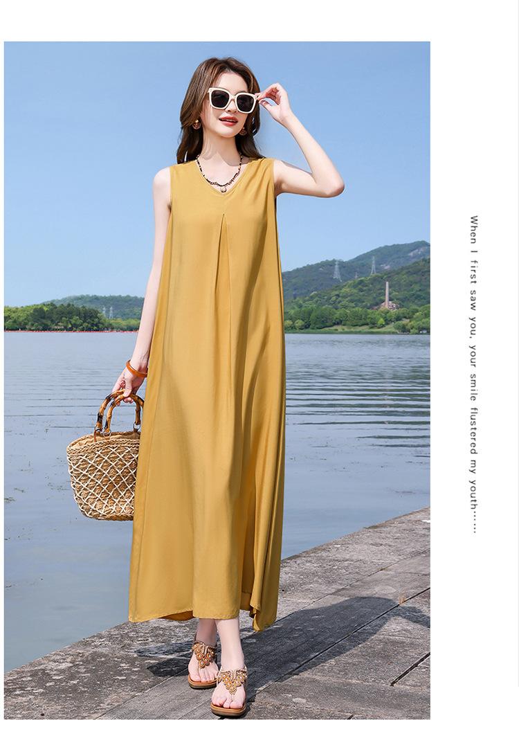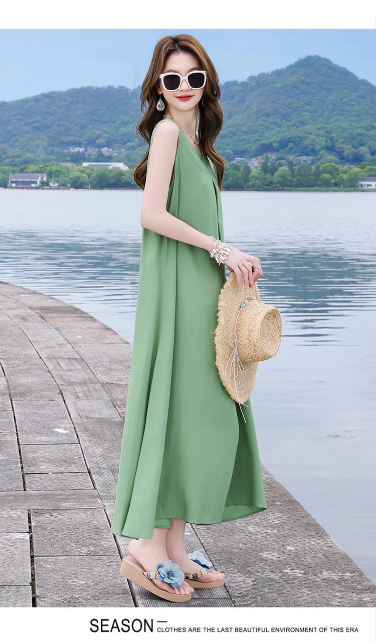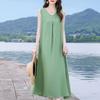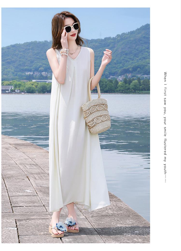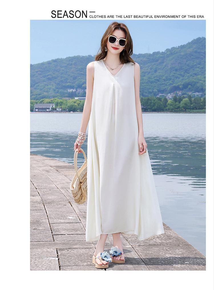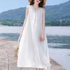 Vestido Chaleco de Algodón Seda de Alta Gama Francés para Mujer Verano Nuevo Temperamento Resort Costero Color Sin Mangas Falda de Playa