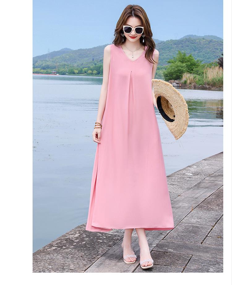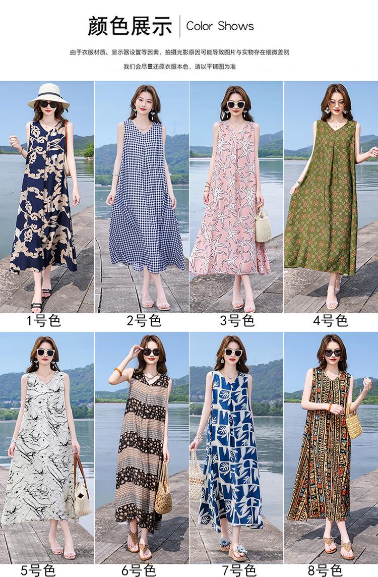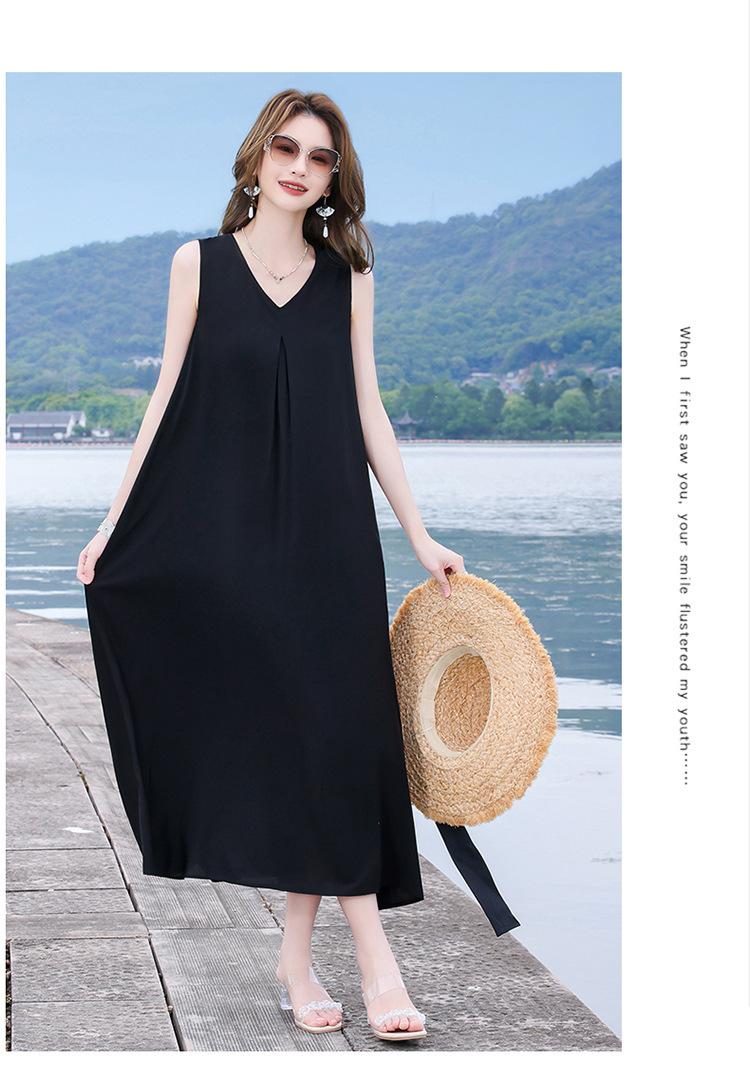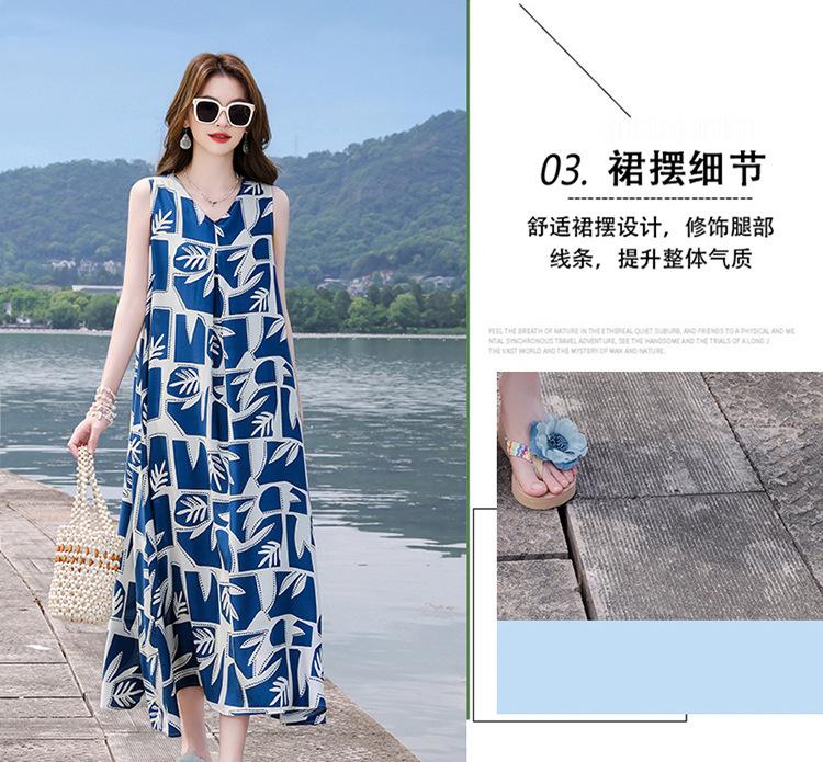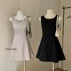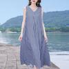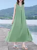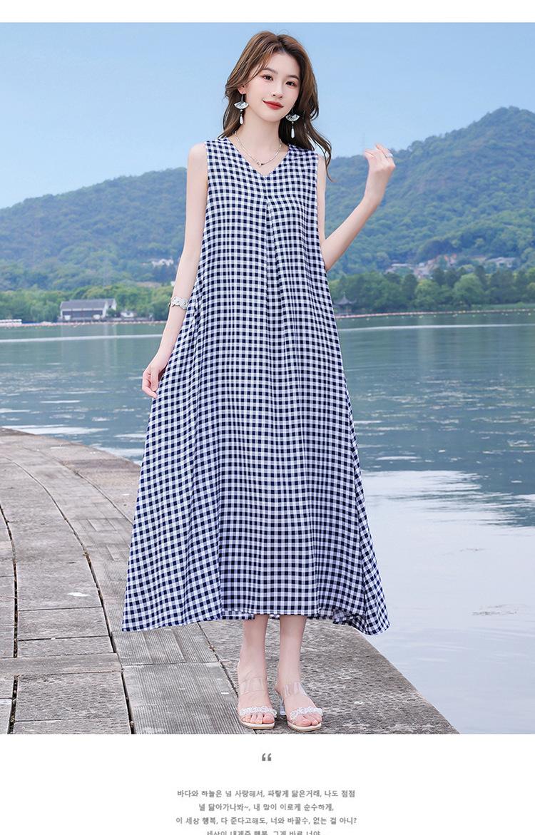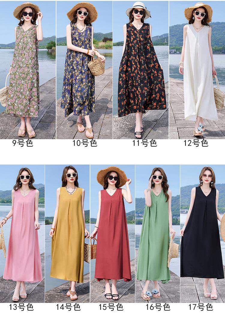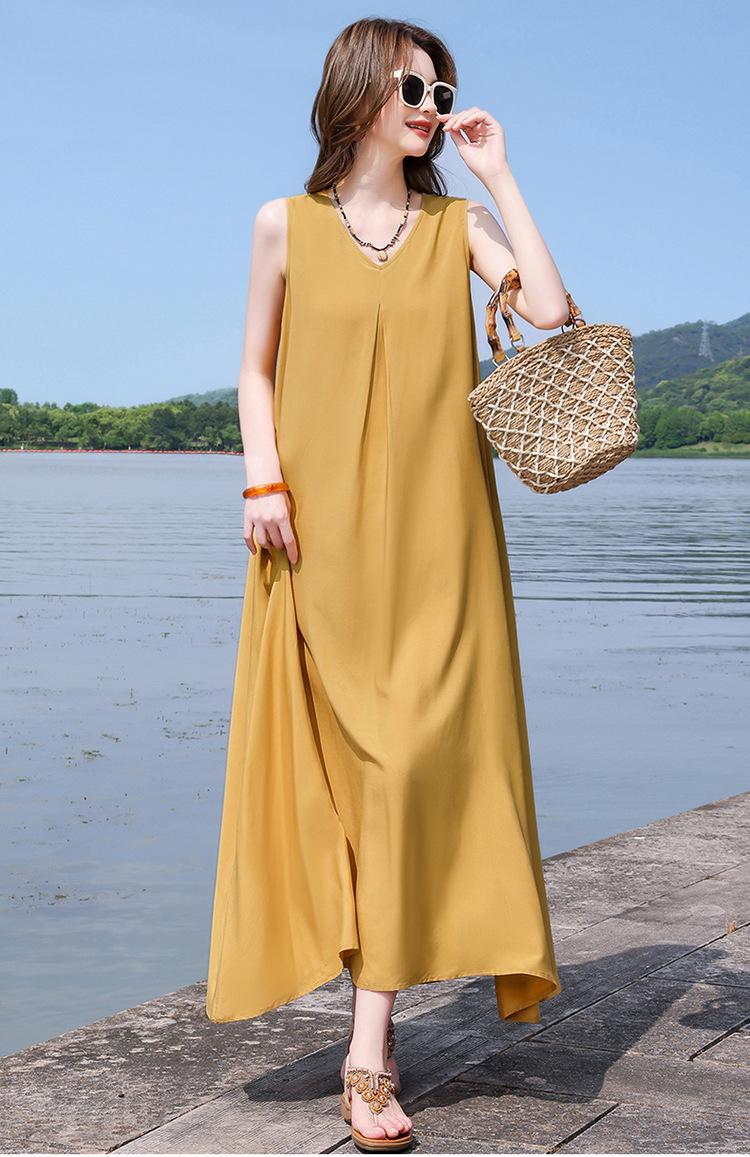 Vestido Chaleco de Algodón Seda de Alta Gama Francés para Mujer Verano Nuevo Temperamento Resort Costero Color Sin Mangas Falda de Playa