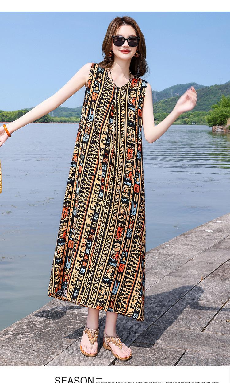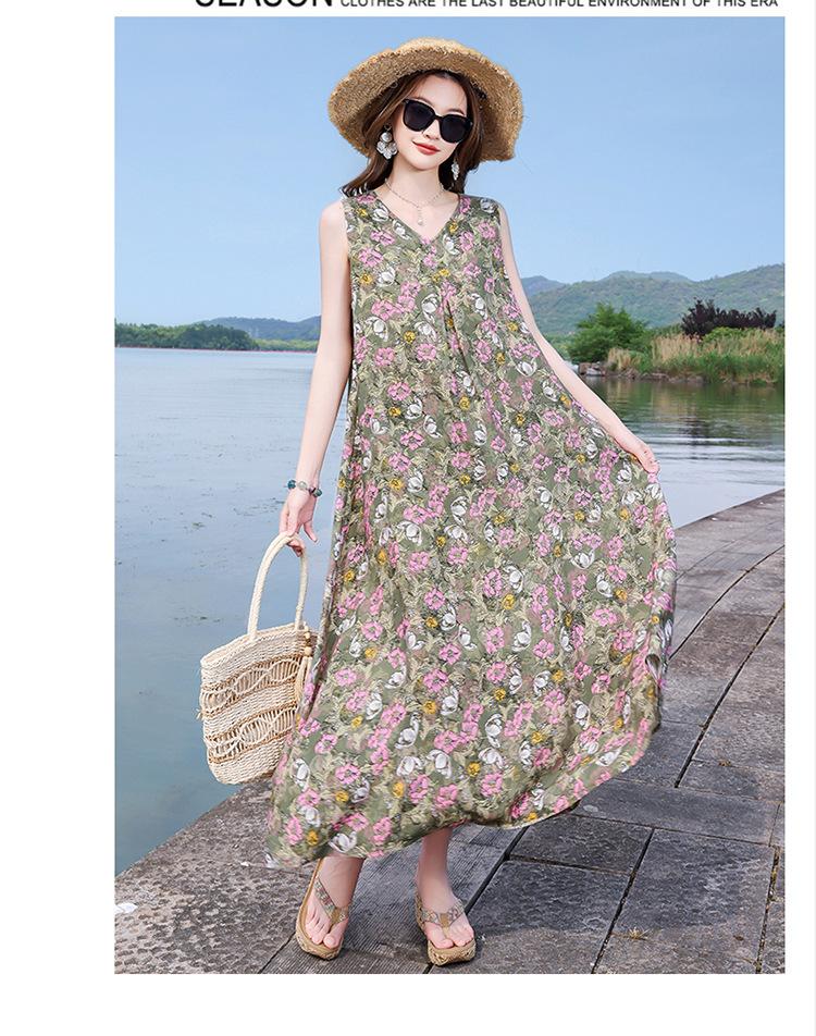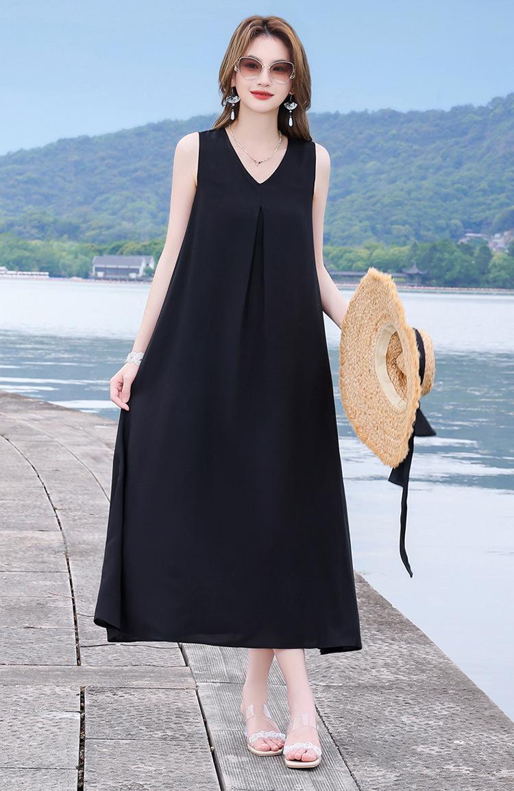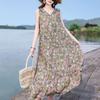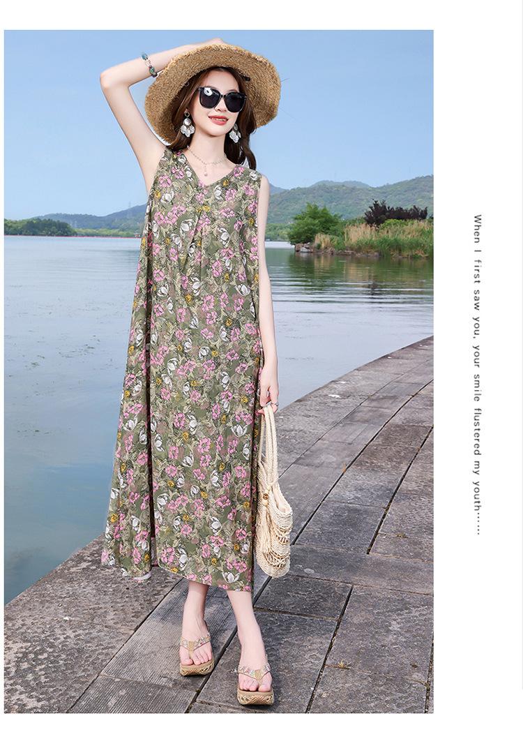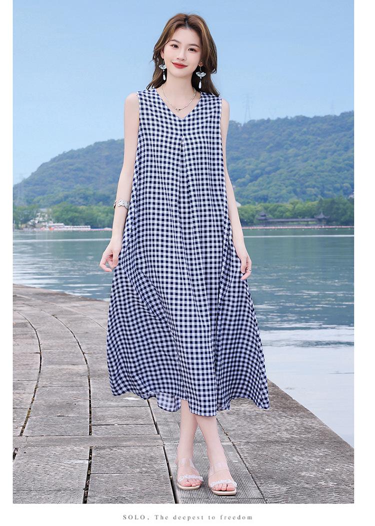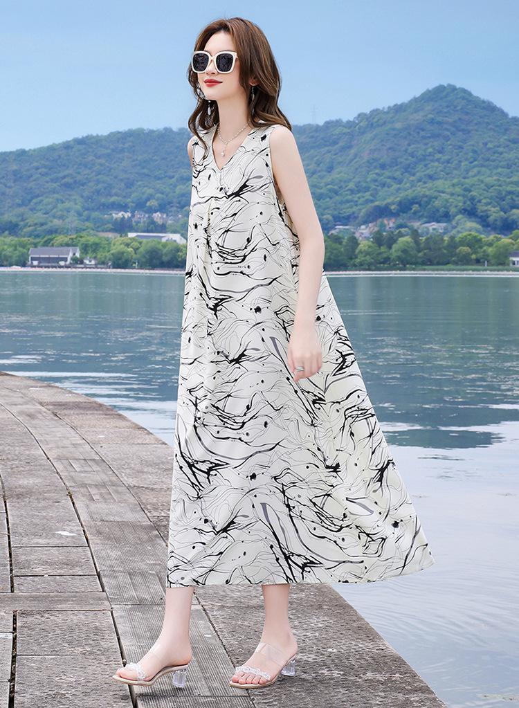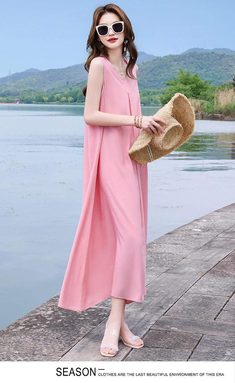 Vestido Chaleco de Algodón Seda de Alta Gama Francés para Mujer Verano Nuevo Temperamento Resort Costero Color Sin Mangas Falda de Playa