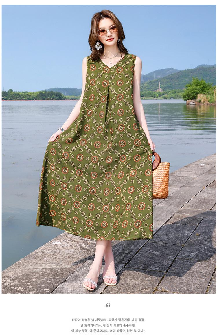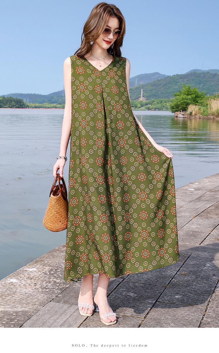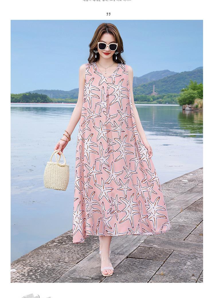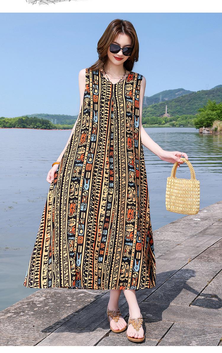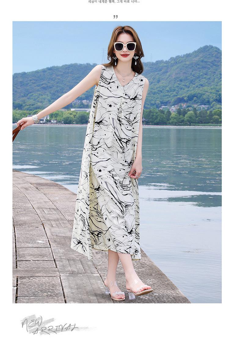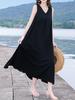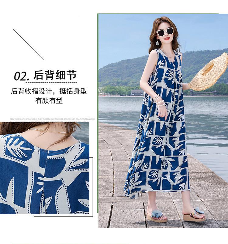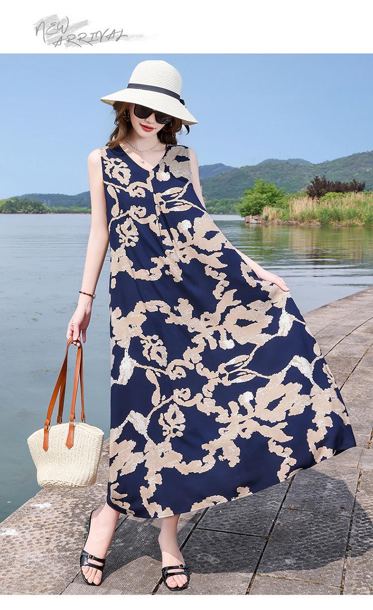 Vestido Chaleco de Algodón Seda de Alta Gama Francés para Mujer Verano Nuevo Temperamento Resort Costero Color Sin Mangas Falda de Playa