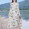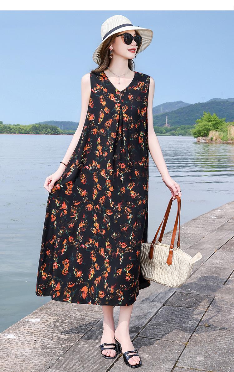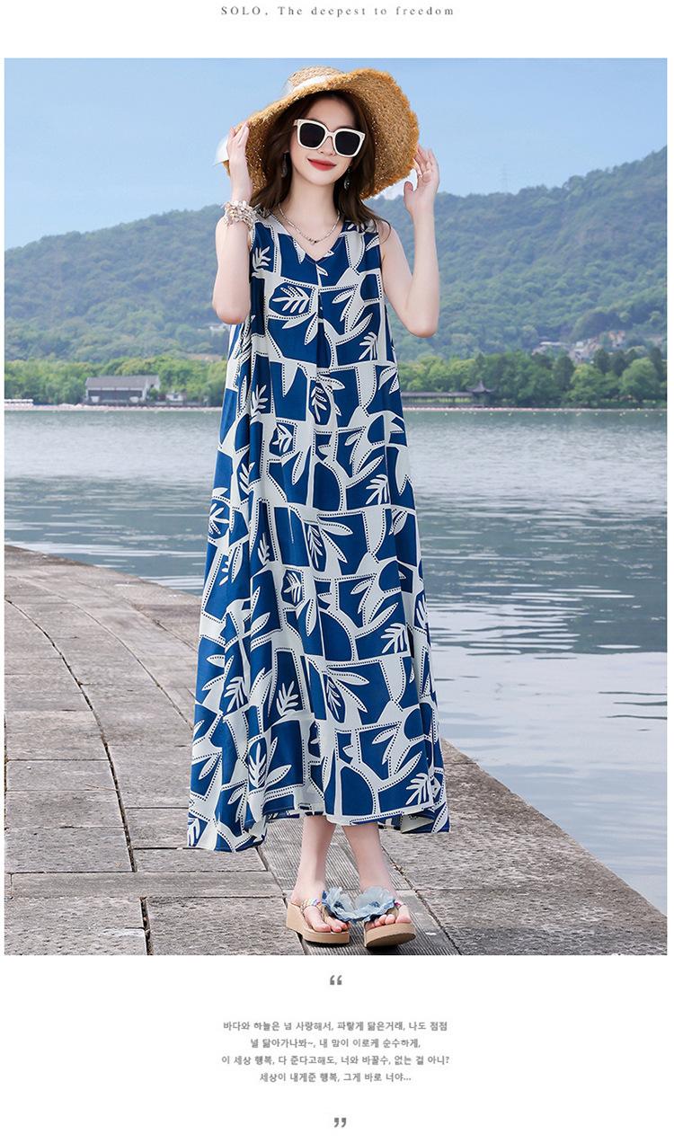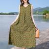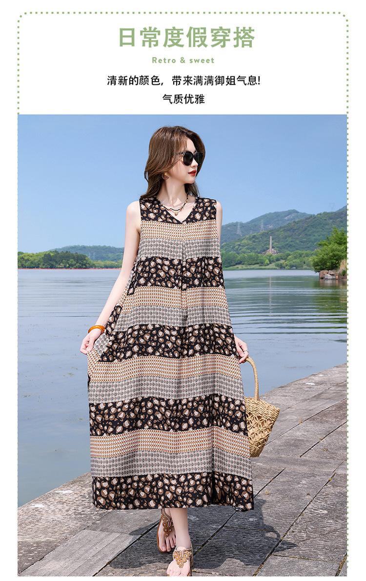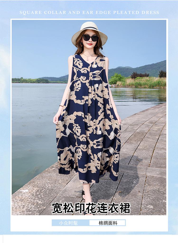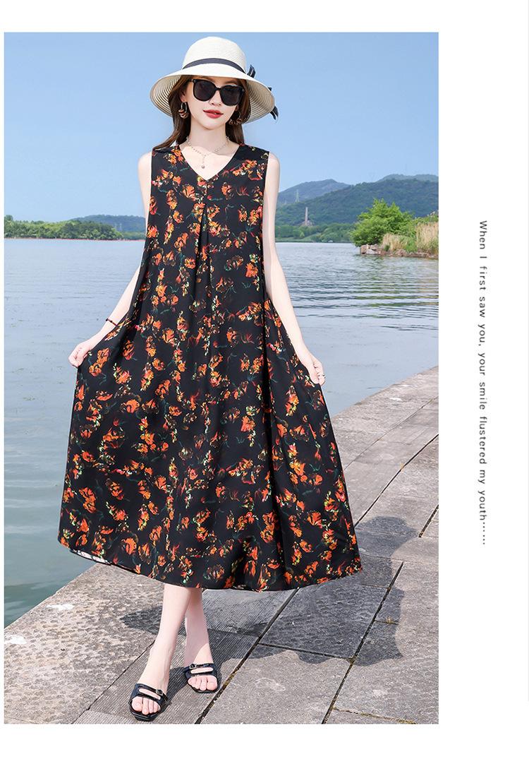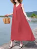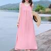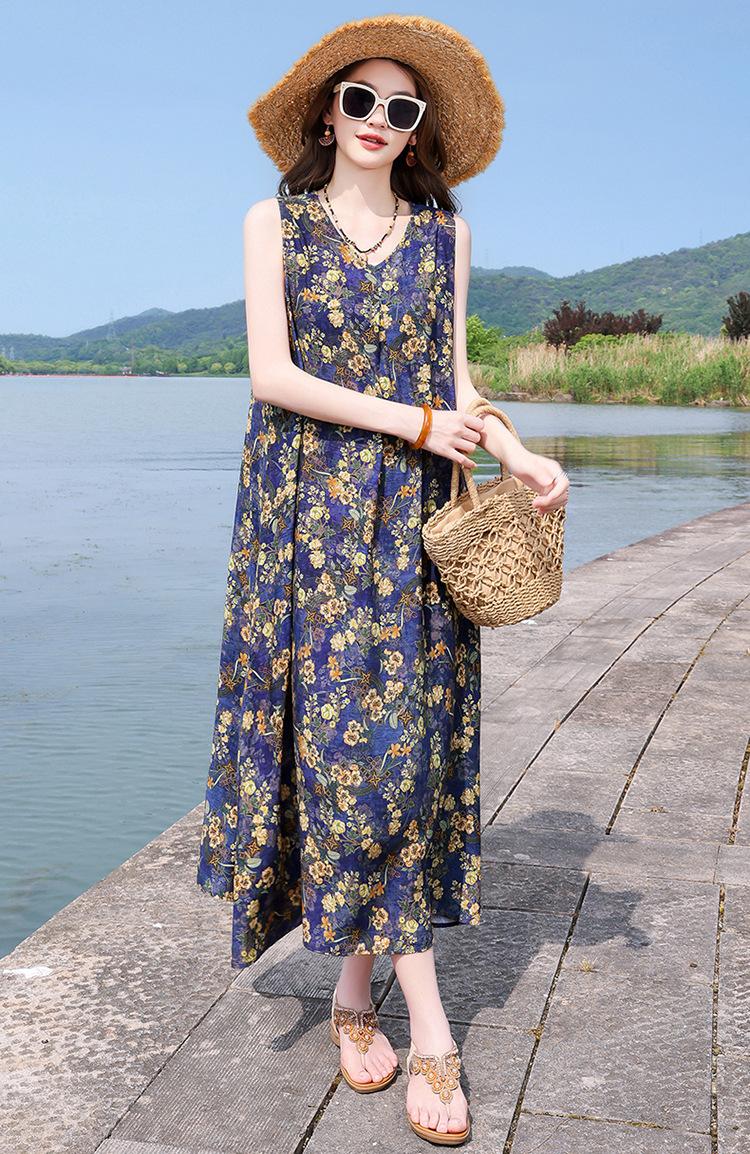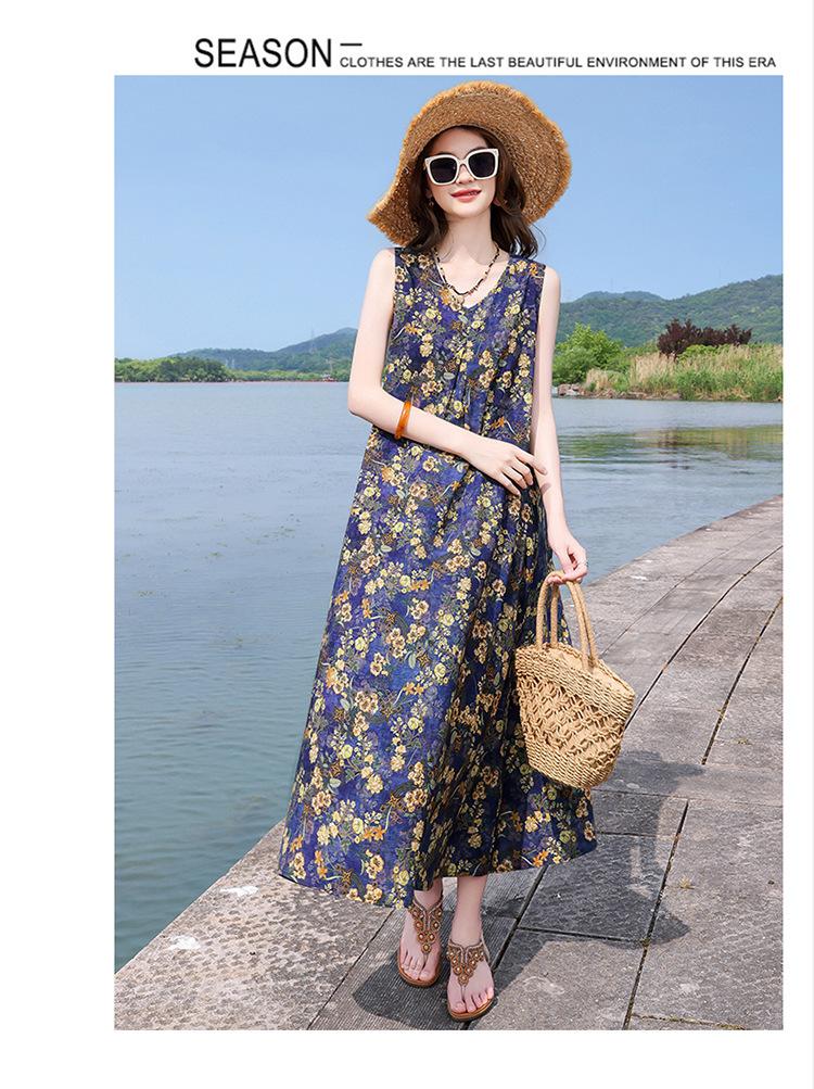 Vestido Chaleco de Algodón Seda de Alta Gama Francés para Mujer Verano Nuevo Temperamento Resort Costero Color Sin Mangas Falda de Playa