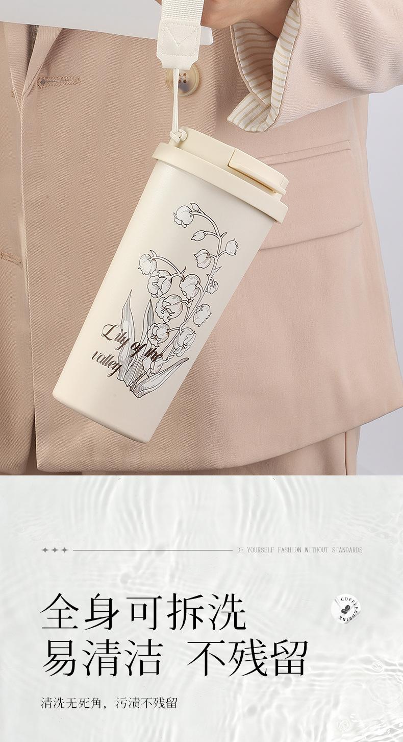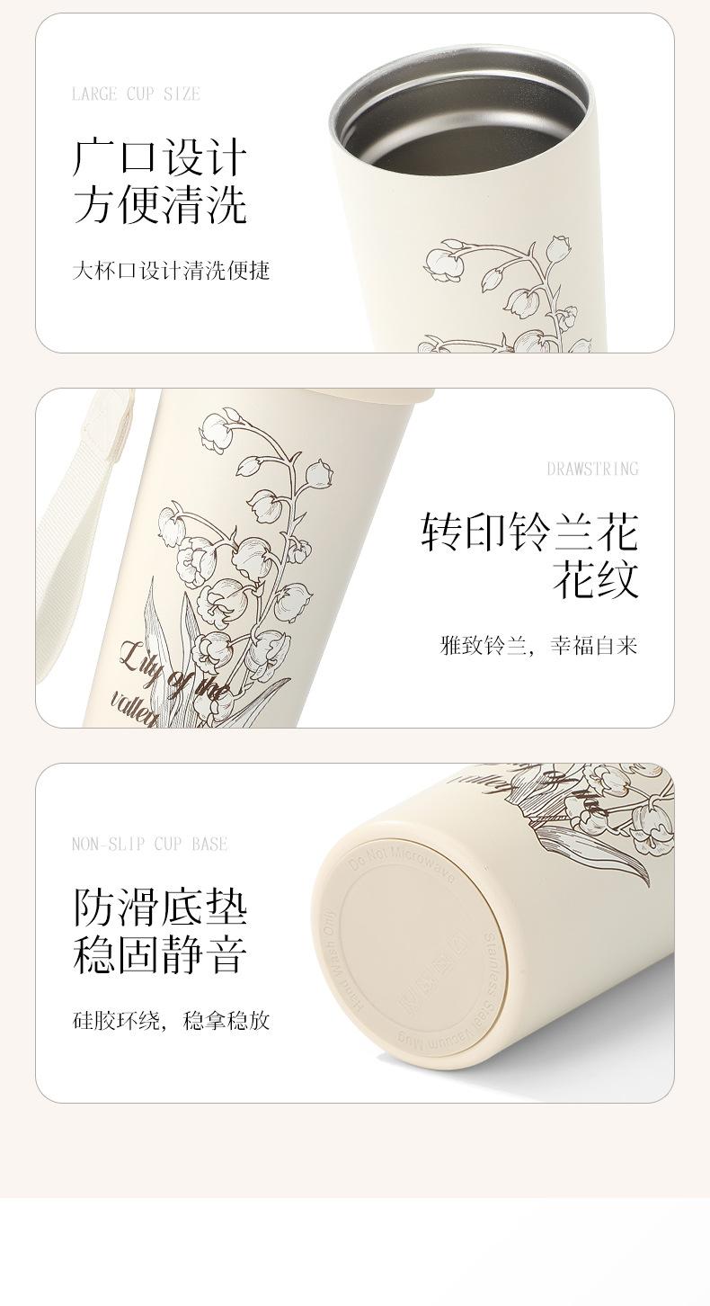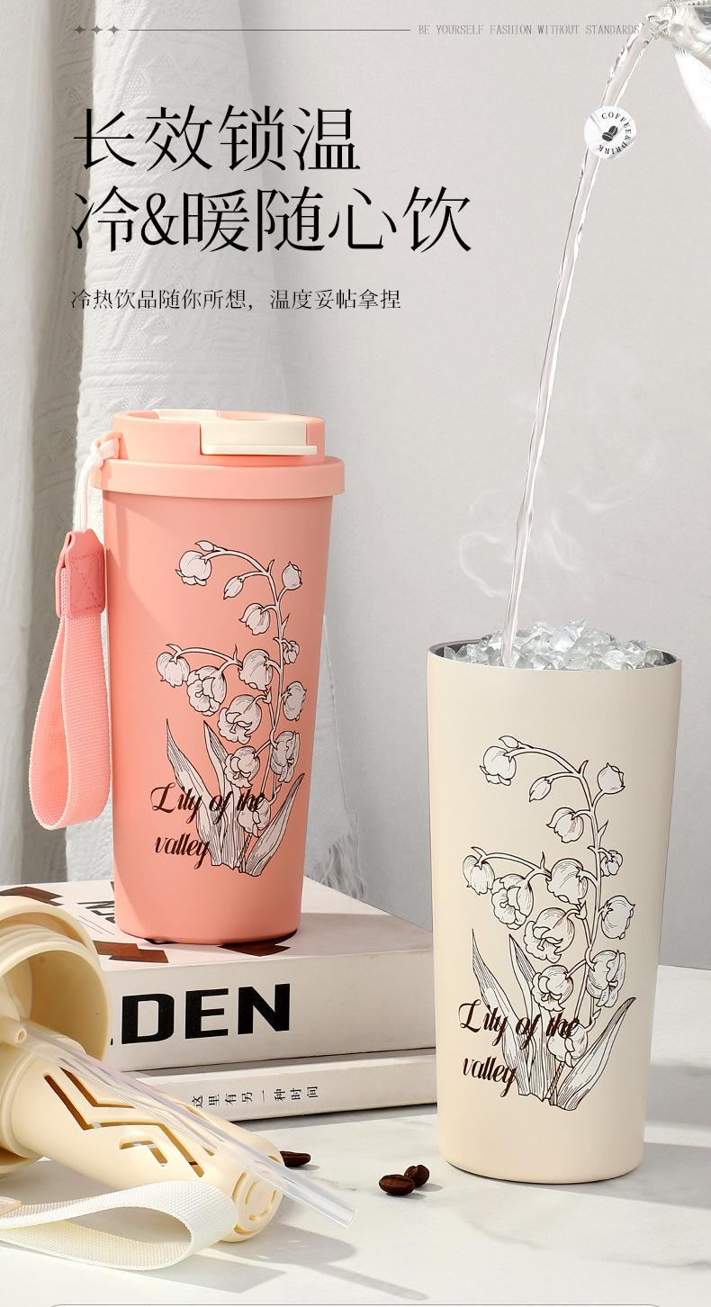 Acero Inoxidable 316 Lirio de los Valles Taza de Café Termo Recubrimiento Cerámico en Spray Correa con Filtro para Té Taza de Regalo Popote