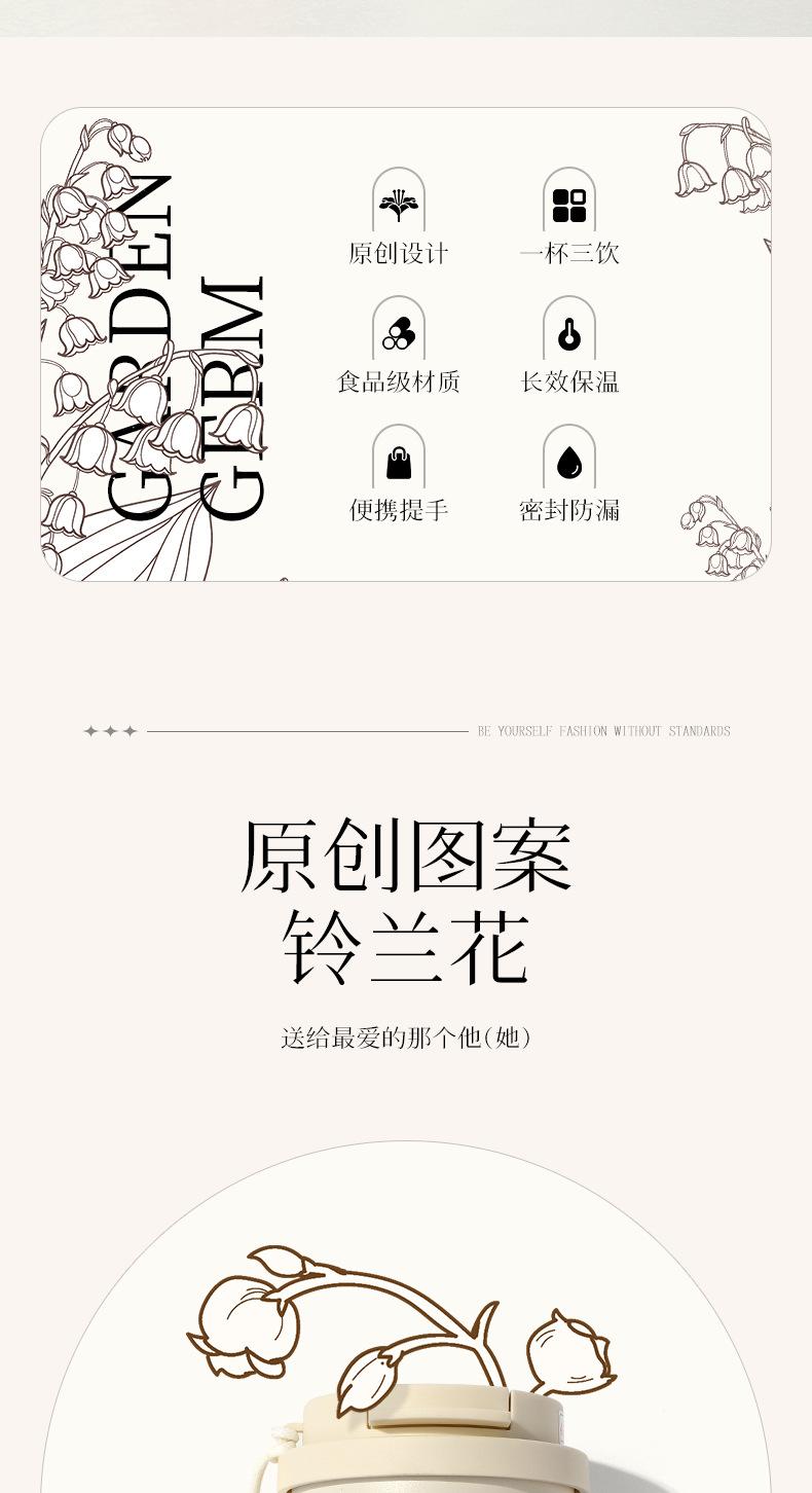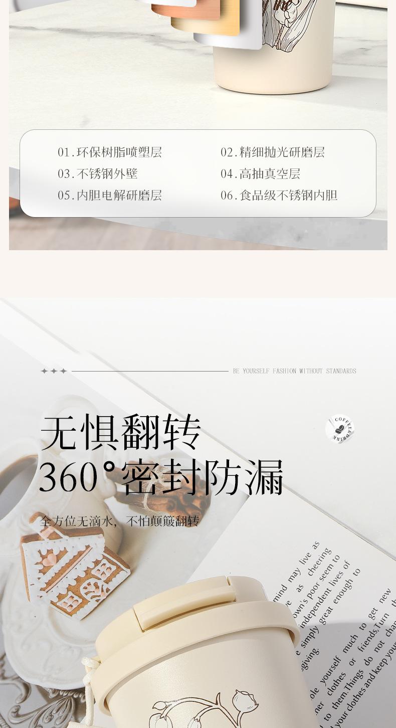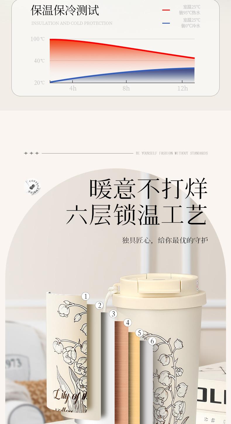 Acero Inoxidable 316 Lirio de los Valles Taza de Café Termo Recubrimiento Cerámico en Spray Correa con Filtro para Té Taza de Regalo Popote