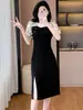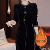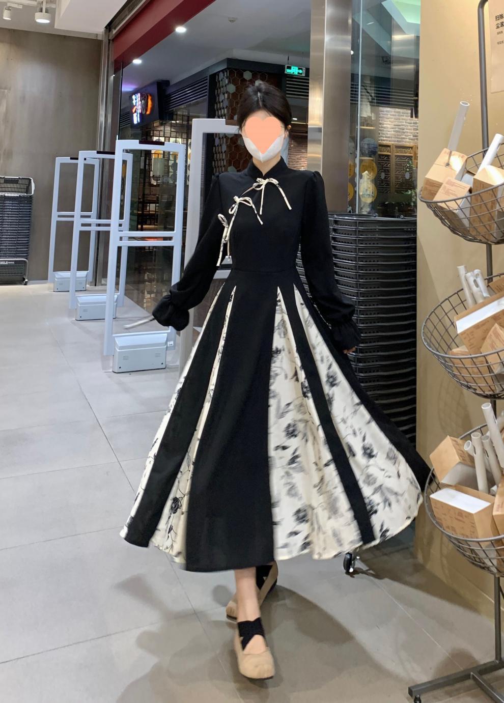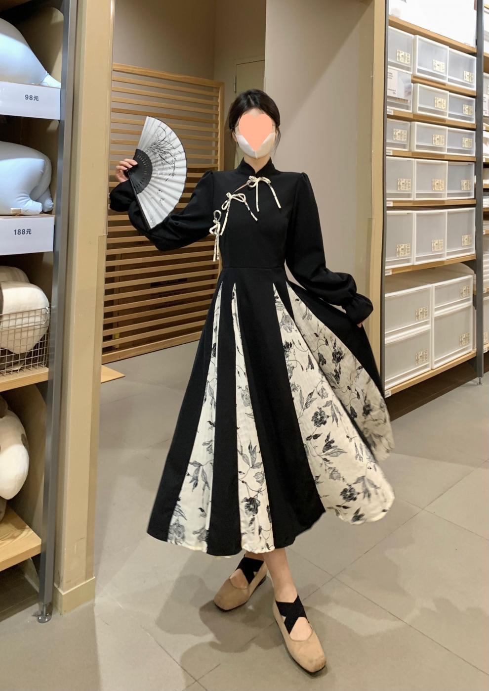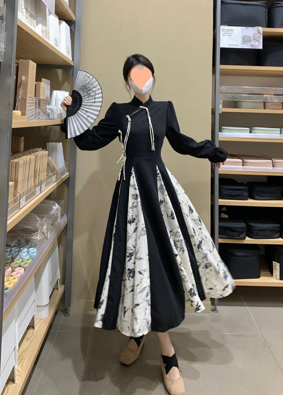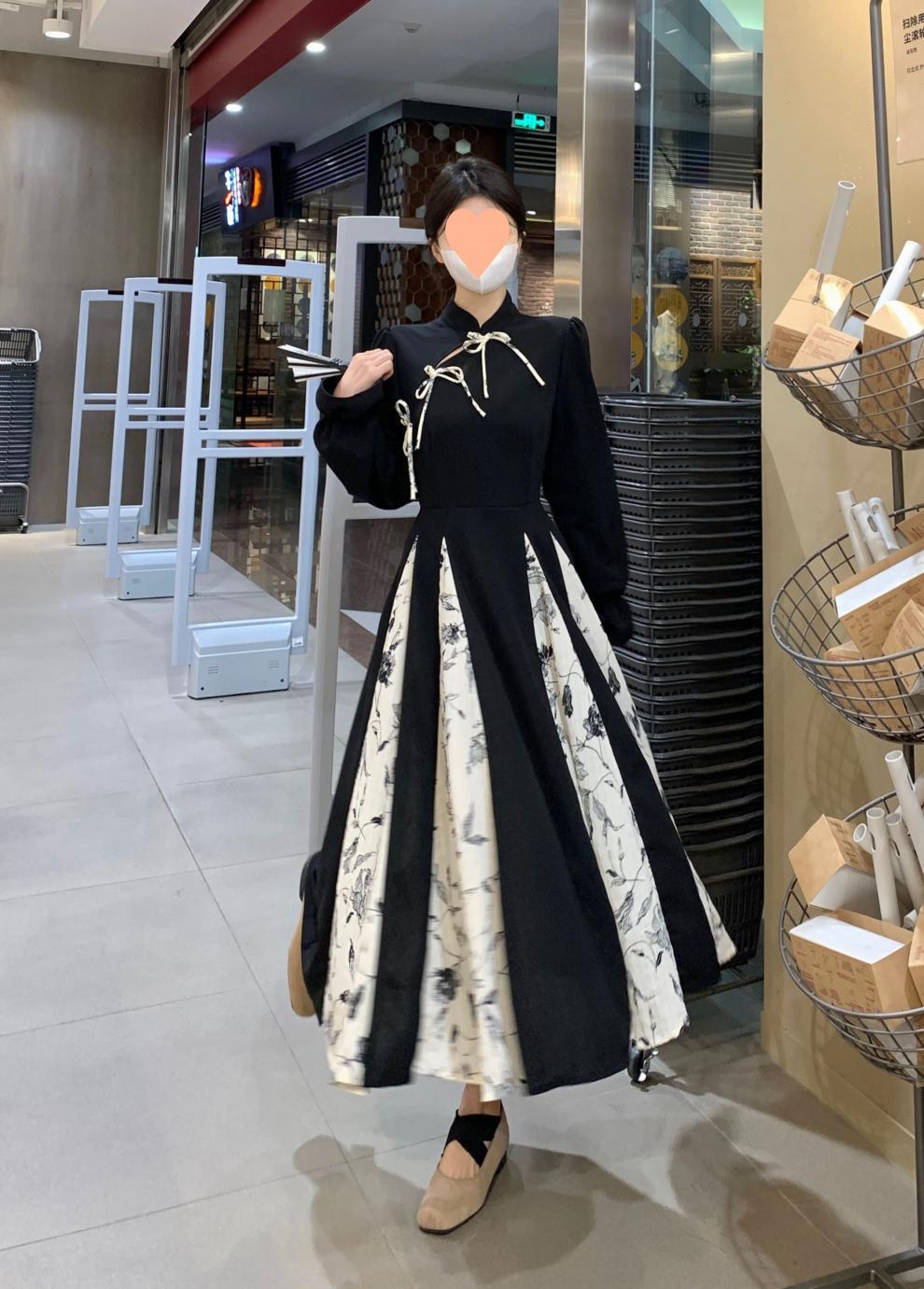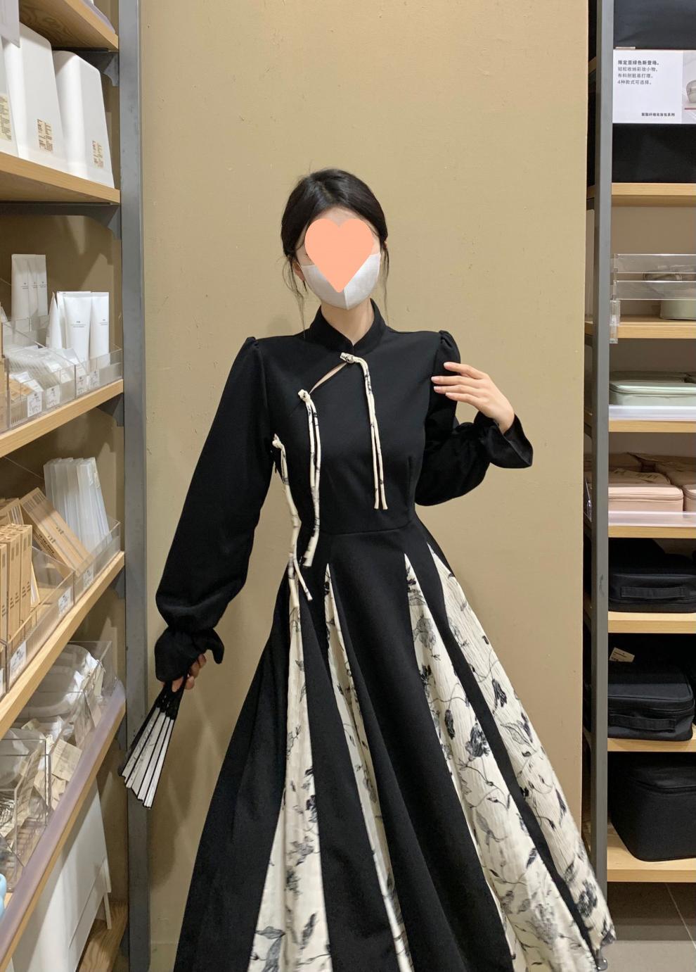 Ropa de Mujer de Nuevo Estilo Chino Vestido Cheongsam Mejorado Primavera Temperamento Adelgazante de Cintura Falda Larga para Personas Pequeñas