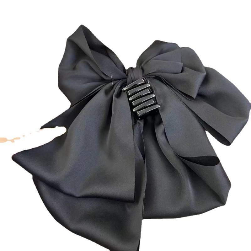 Pinza de Agarre de Lazo Grande Elegante Negro para Mujer, Pinza para Cabello de la Mitad Trasera de la Cabeza, Clip de Satén Avanzado, Accesorios para el Cabello, Principios de Primavera
