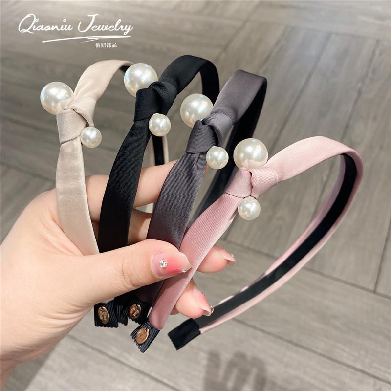 Diadema elegante de estilo coreano con borde fino y perla anudada para mujer, tocado con horquilla de gran sentido, venta al por mayor, novedad de verano de 2023