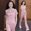 Traje Deportivo para Mujer 2025 Nuevo Verano Delgado Solapa de Manga Corta Pantalón Ocio al Aire Libre Running Conjunto de Dos Piezas
