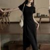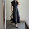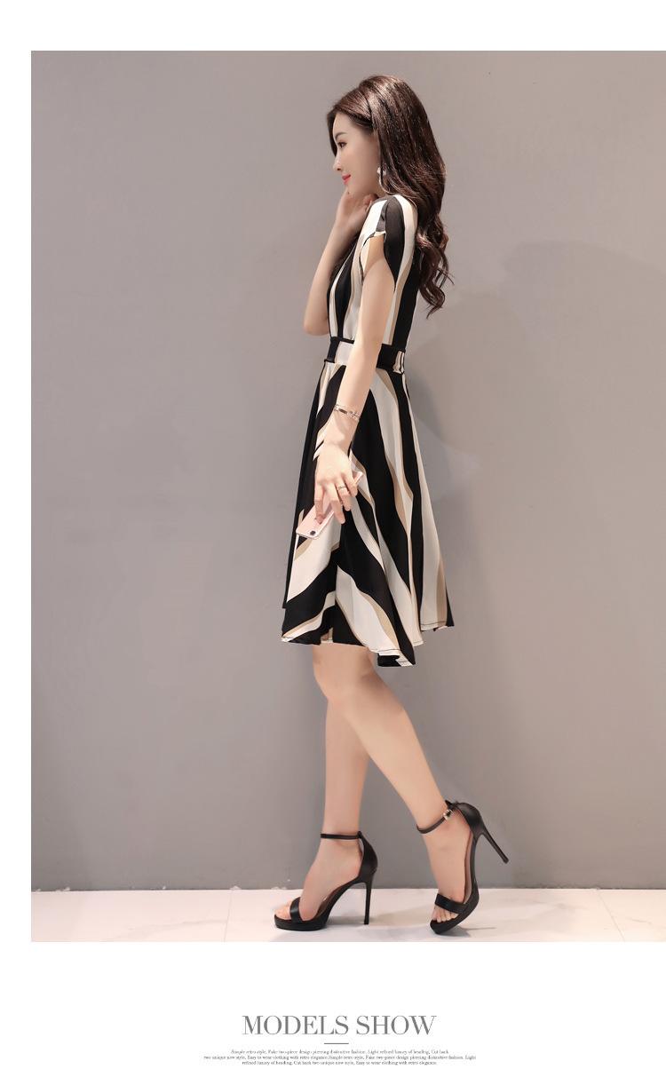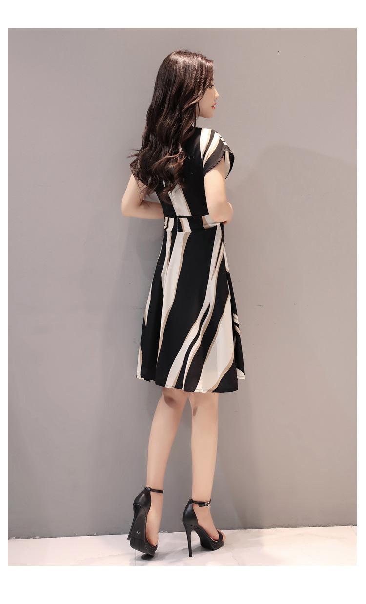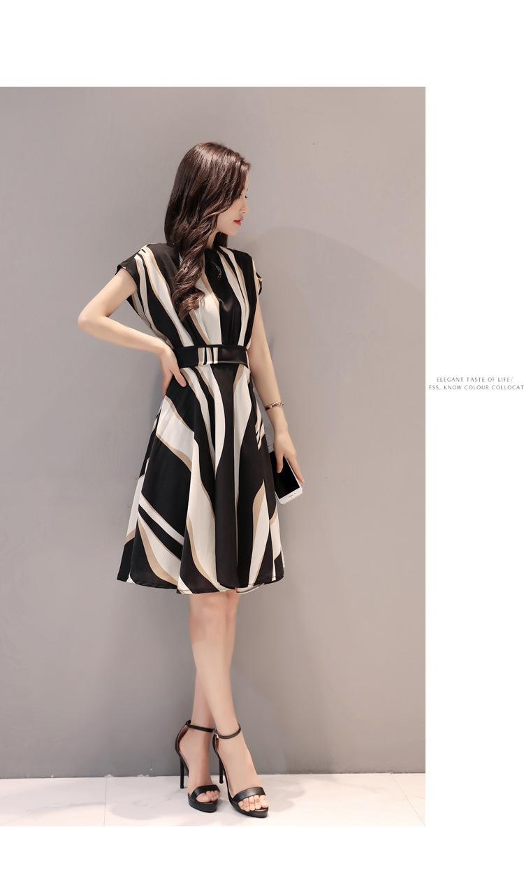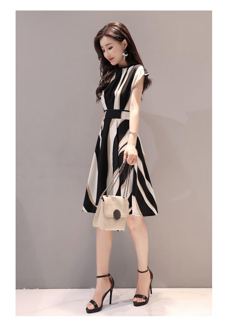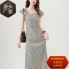 2025 nuevo vestido a rayas para mujer de largo medio para verano, temperamento, estilo coreano, adelgazante, ceñido a la cintura, vestido casual de verano