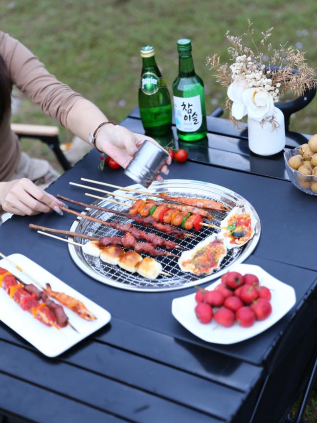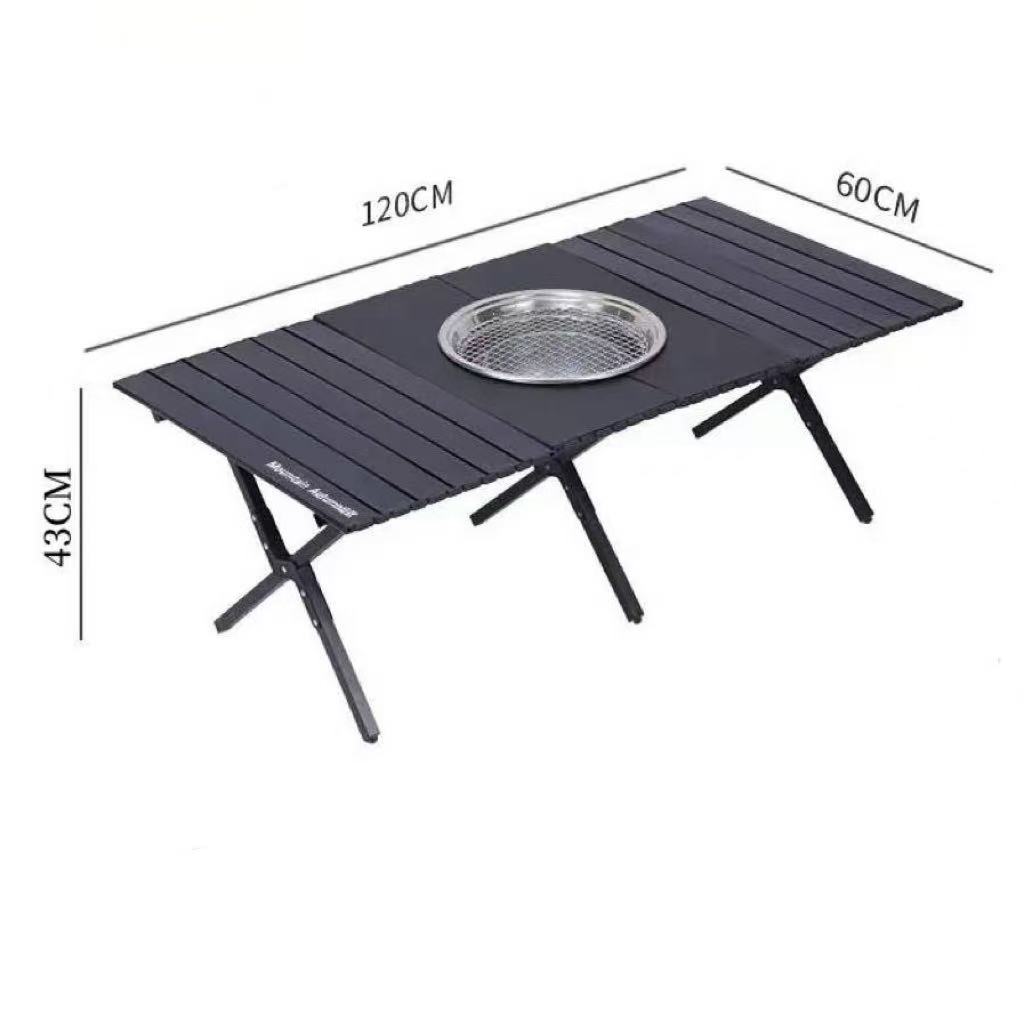 Es una mesa multifunción, con función de cocción y calentamiento. Se puede usar para barbacoa, calentar té, leche hirviendo, etc. Así que con ella, no solo tiene una mesa, sino también una cocina y un calentador. Se puede usar en interiores y exteriores con carbón. Y se puede plegar e instalar fácilmente, es bueno para llevarla a cualquier lugar. Material:Acero aleado Tamaño:120x60x43cm(adecuado para al menos cuatro personas) soporta hasta 120KG