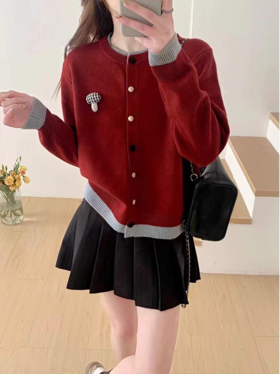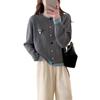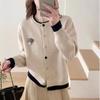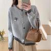 Cárdigan de punto estilo dulce transfronterizo 2025 otoño e invierno nuevo cuello redondo suave ceroso falso de dos piezas suéter de moda abrigo de mujer