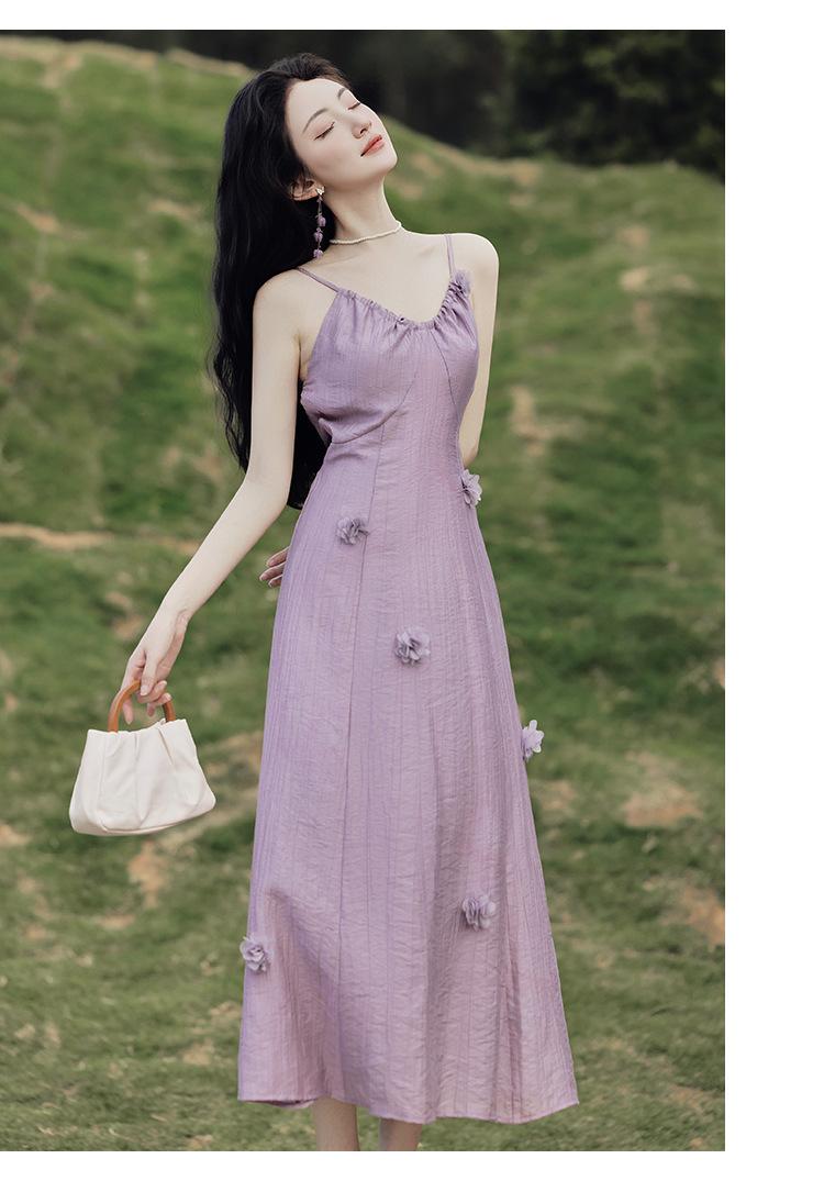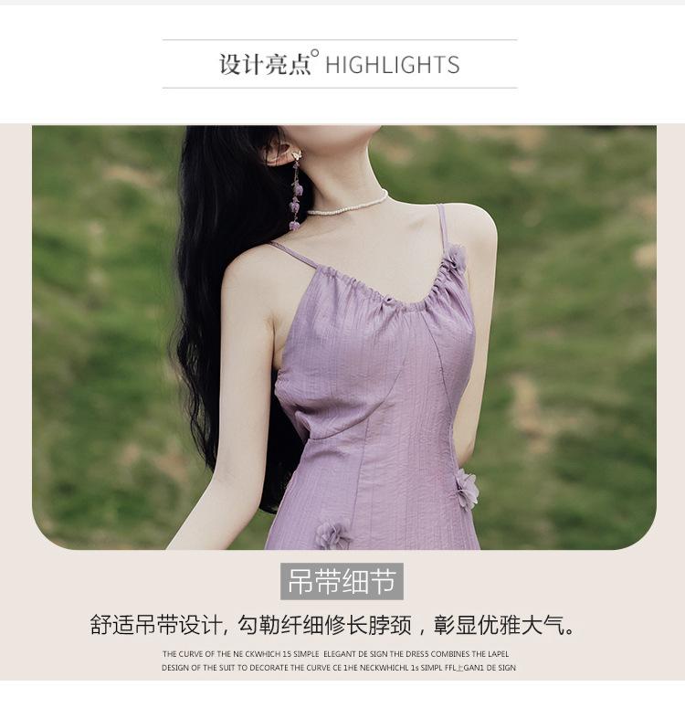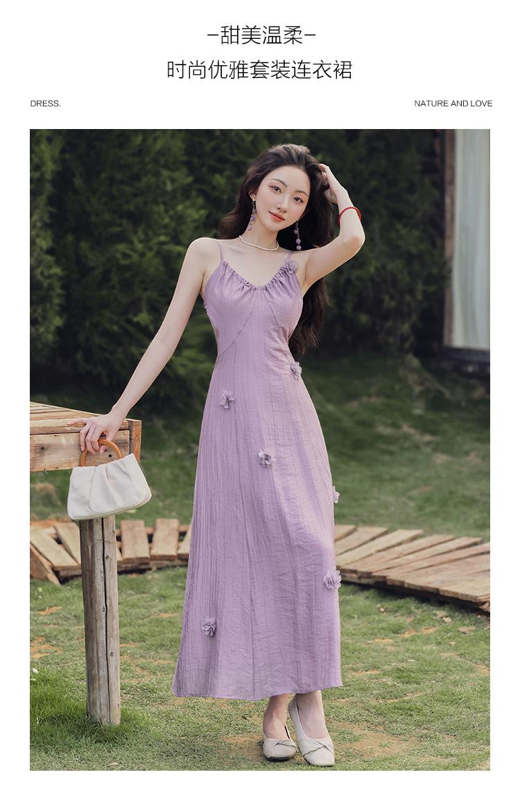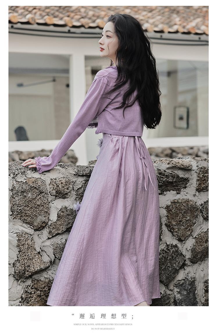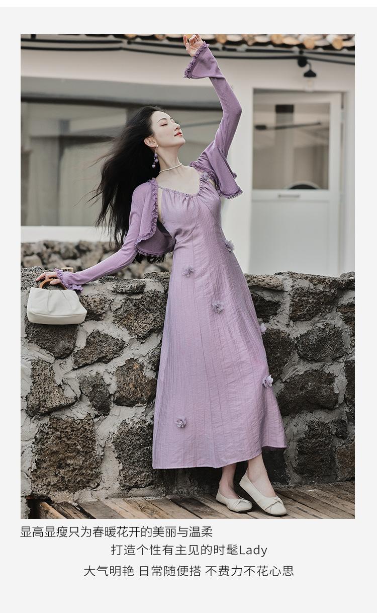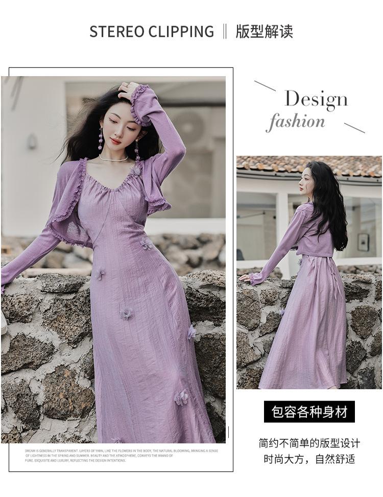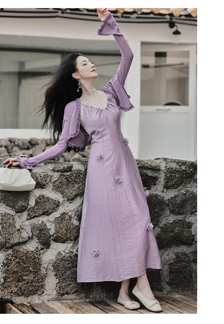 Purple three-dimensional flower suspender skirt, Purple cardigan skirt two-piece set