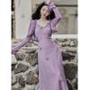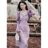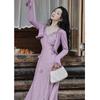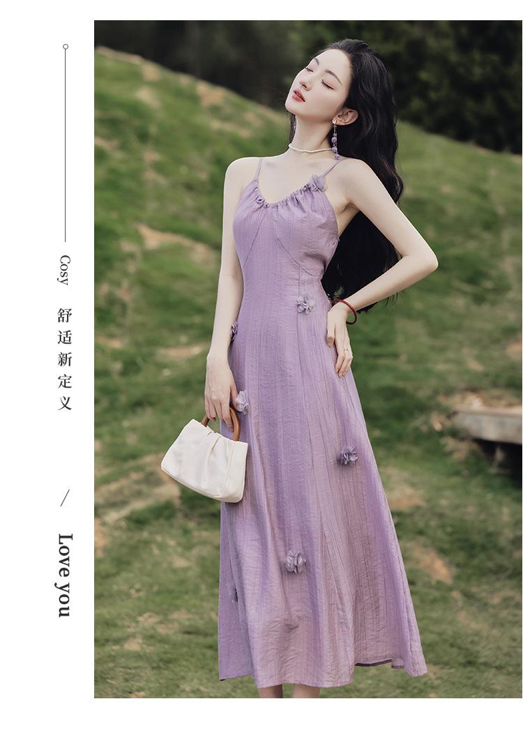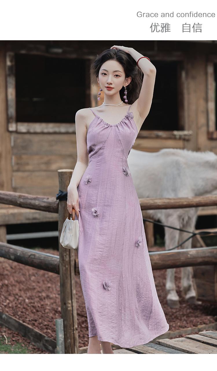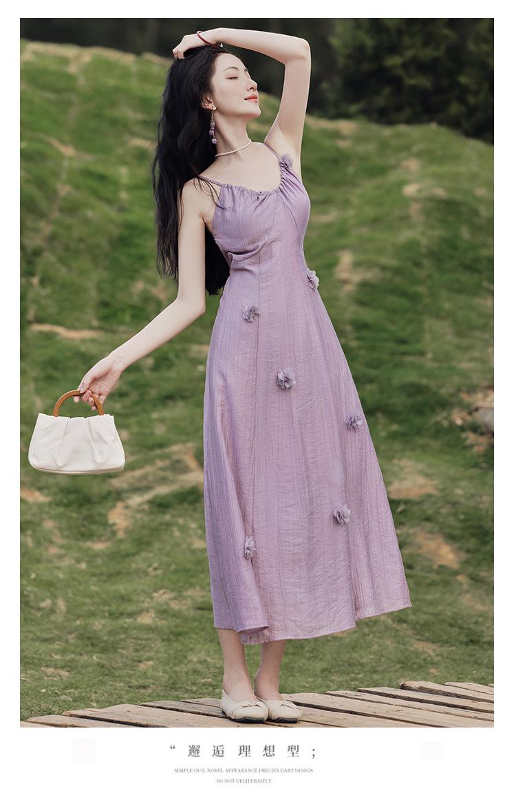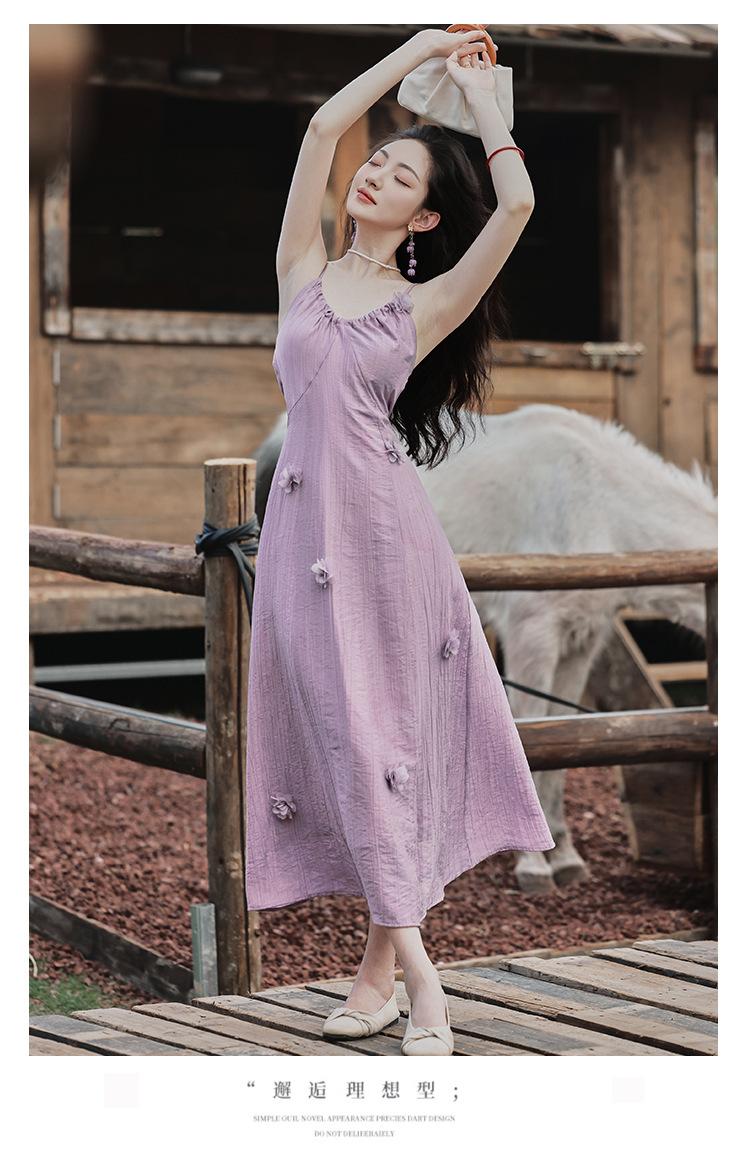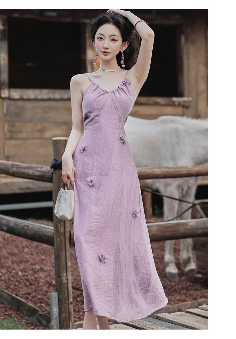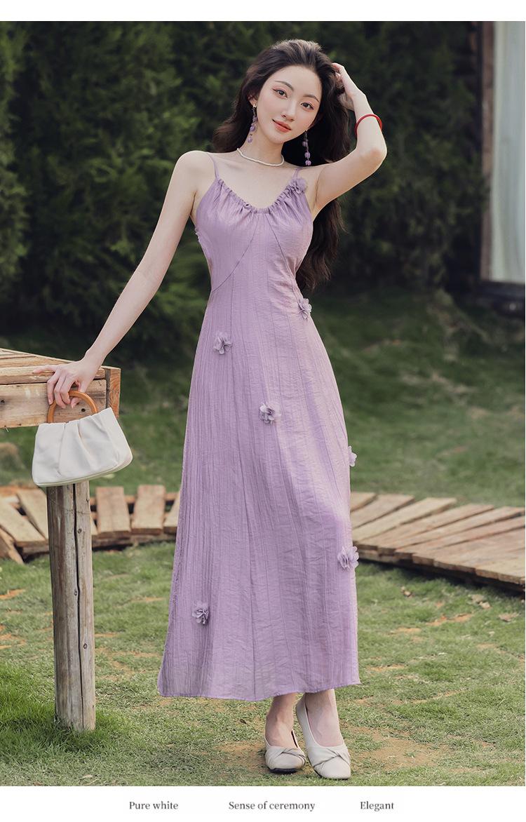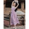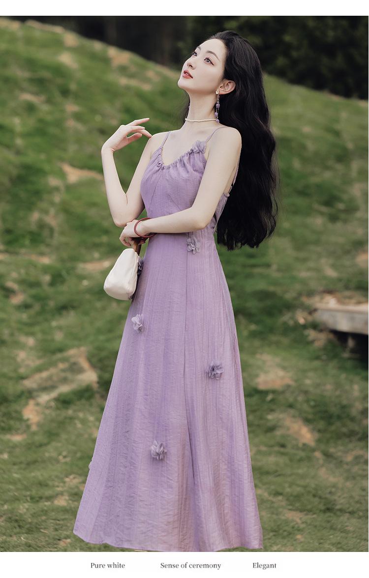 Purple three-dimensional flower suspender skirt, Purple cardigan skirt two-piece set